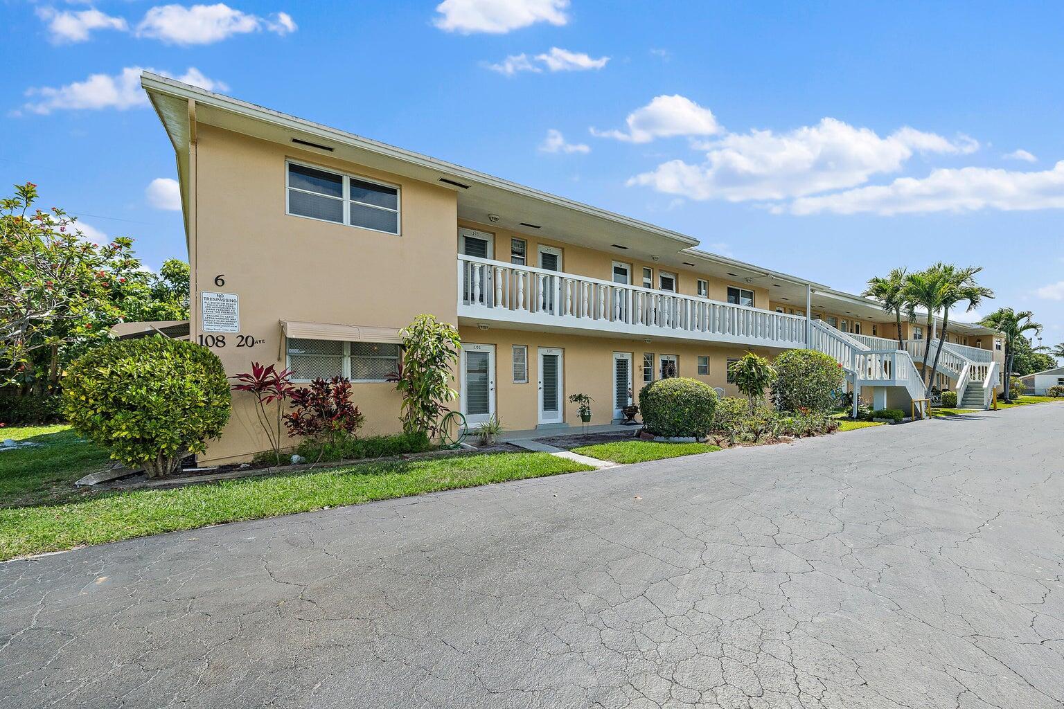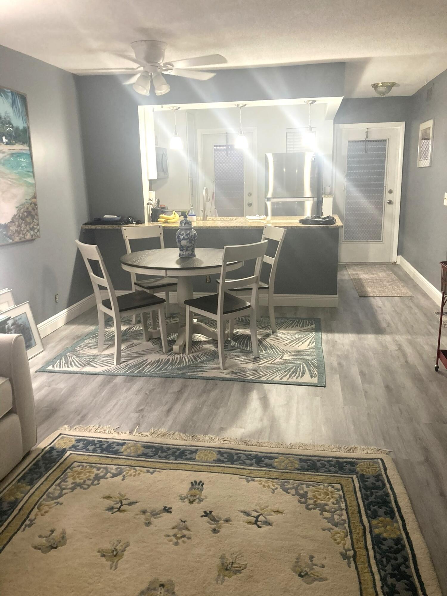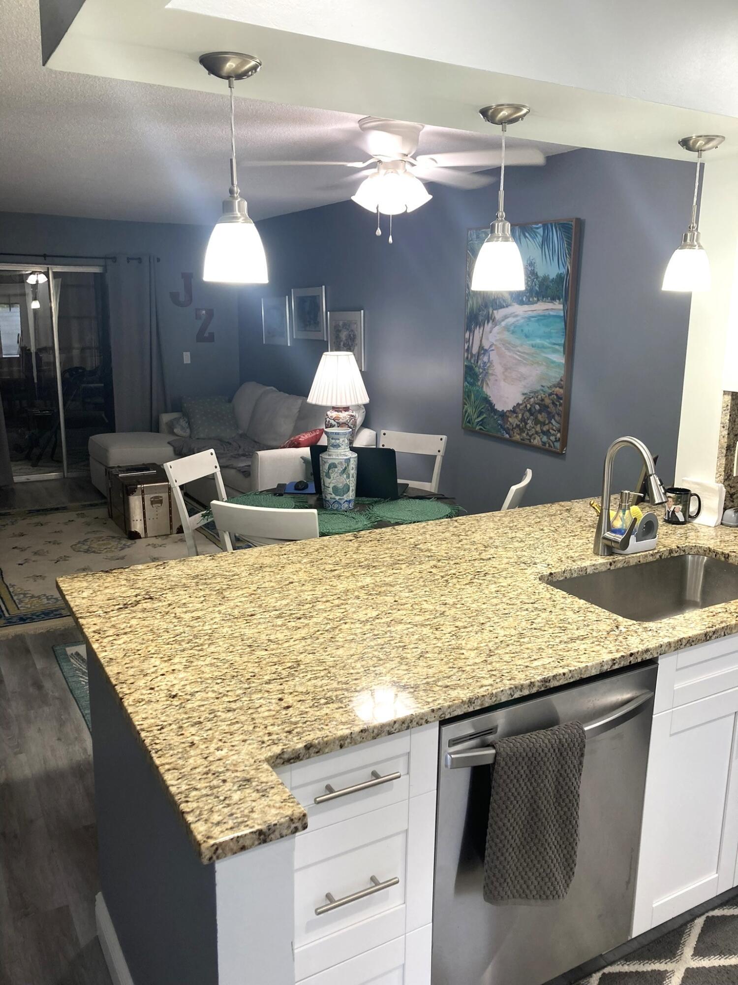 MOTIVATED SELLER! Welcome to this hidden gem at Village Royale! This vibrant 55+ community exudes old Florida charm and offers a variety of amenities for an active lifestyle, including a beautiful outdoor pool, a clubhouse, billiards, library, shuffleboard courts, and a BBQ/picnic area - and it's close to the beach! Once inside, you'll appreciate the modern and updated kitchen with white shaker cabinetry, granite counters and backsplash, stainless appliances and counter-height seating overlooking the living & dining areas. Other features include NEW hurricane impact windows in both bedrooms and kitchen, new flooring throughout, a contemporary color palette, sliding glass doors to the enclosed balcony with storage and full-size washer/dryer. This home is being sold fully furnished/turnkeyso you can start enjoying it right away. Perfect for year-round residents or those looking for a second home. Don't miss out on this wonderful opportunity to make this your own!