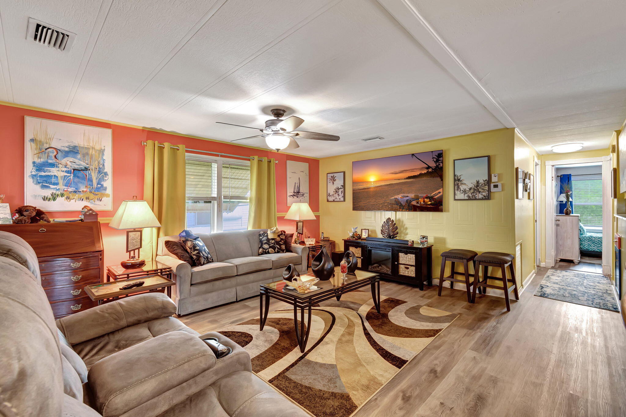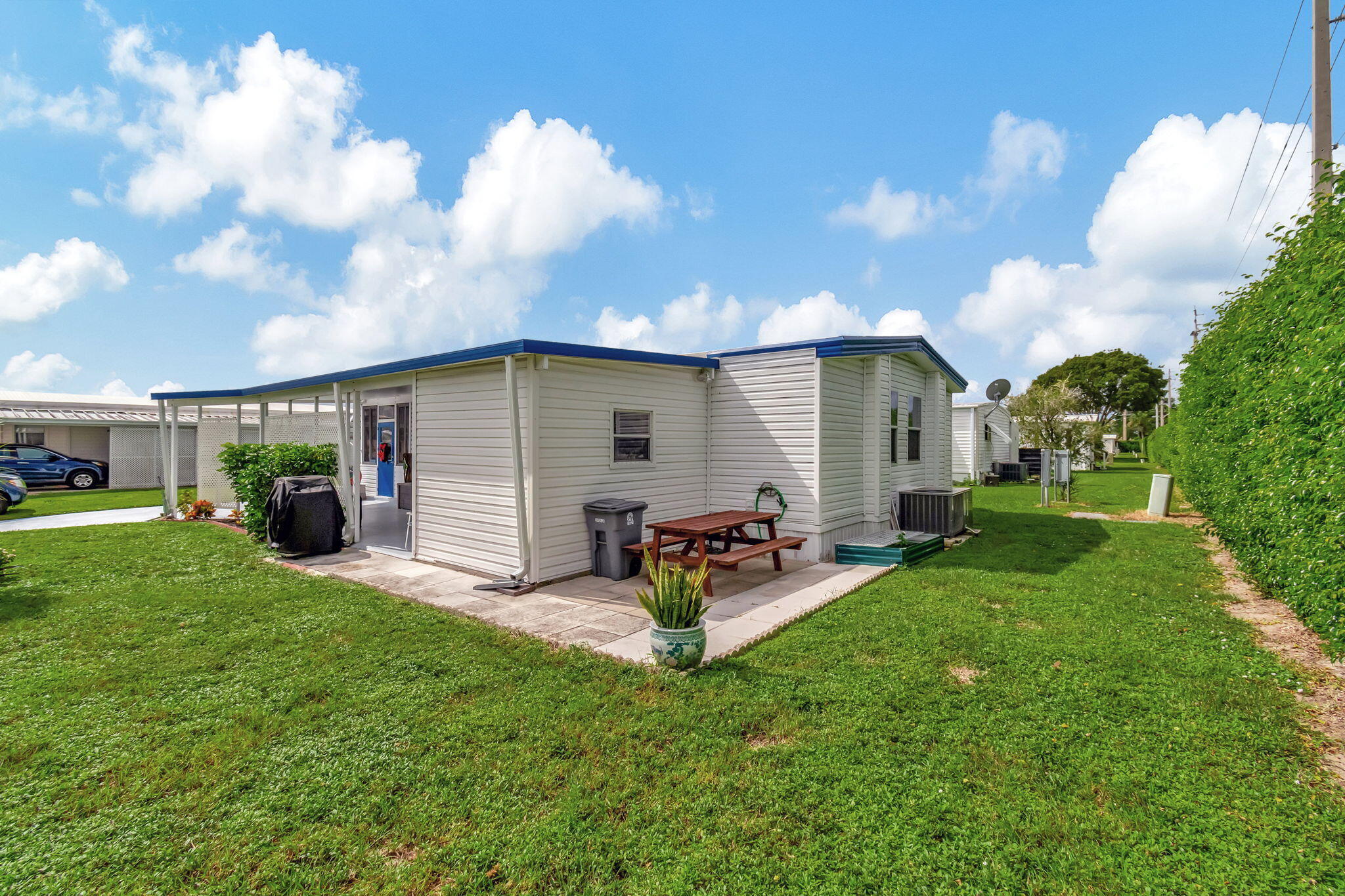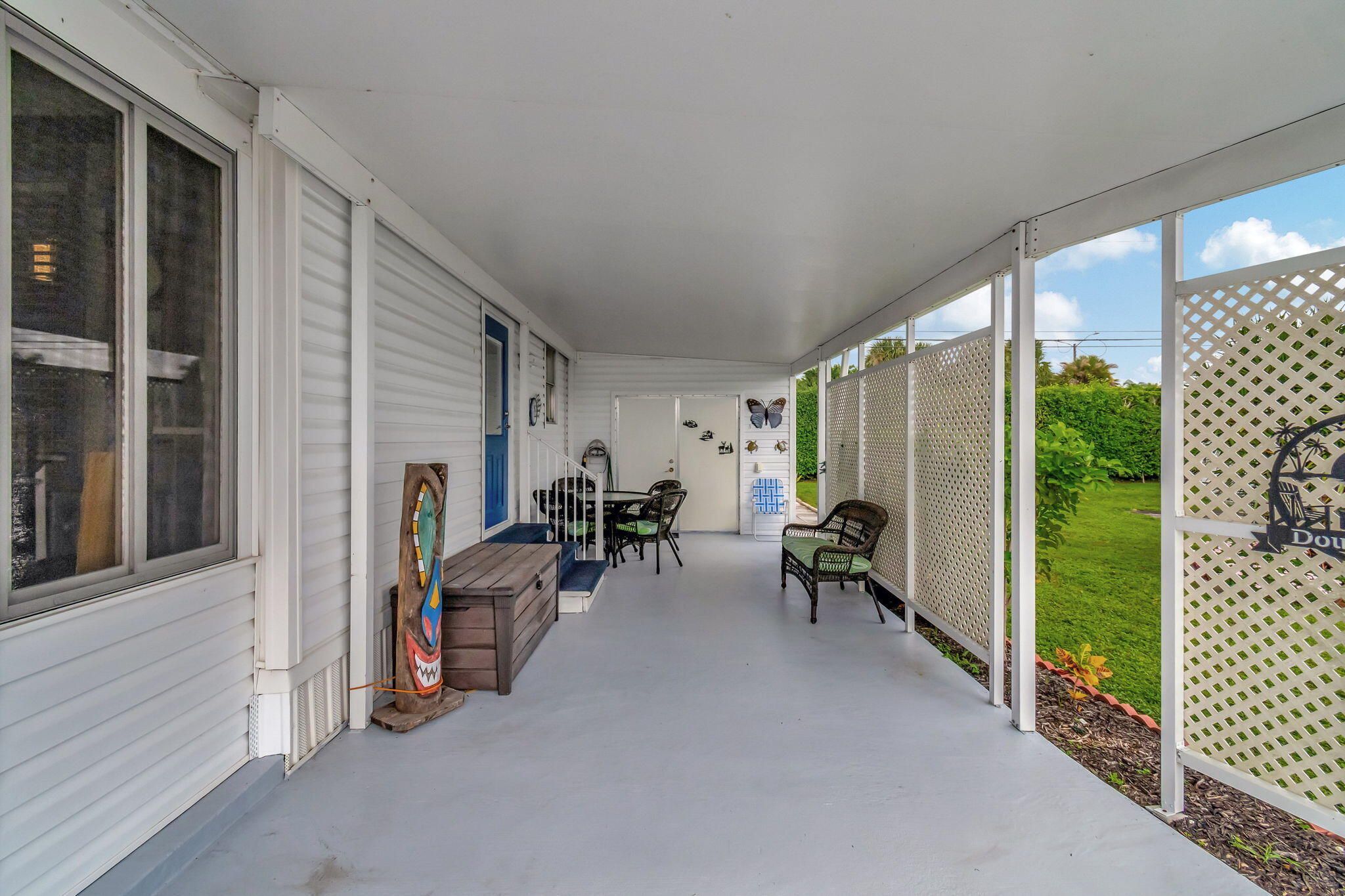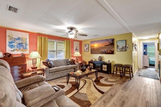 Welcome to Jamaica Bay, a highly desirable 55+ gated mobile home community, offering this well-maintained 2-bedroom, 2-bath residence. NEW AC 8/2025! Featuring an open-concept kitchen, living, and dining area with beautiful laminate flooring throughout, this home is move-in ready. Recent upgrades include a roof sealed in 2024, a new primary bath vanity, updated baseboards, and new kitchen hardware. A new skirt was installed in 2023. Enjoy outdoor living with a separate patio, perfect for grilling and relaxing. The home can be furnished or furniture negotiable. Community amenities include a clubhouse, library, billiards, Bocce ball, dog park, and plenty of social activities. With no rentals allowed, this is your chance to embrace the South Florida lifestyl