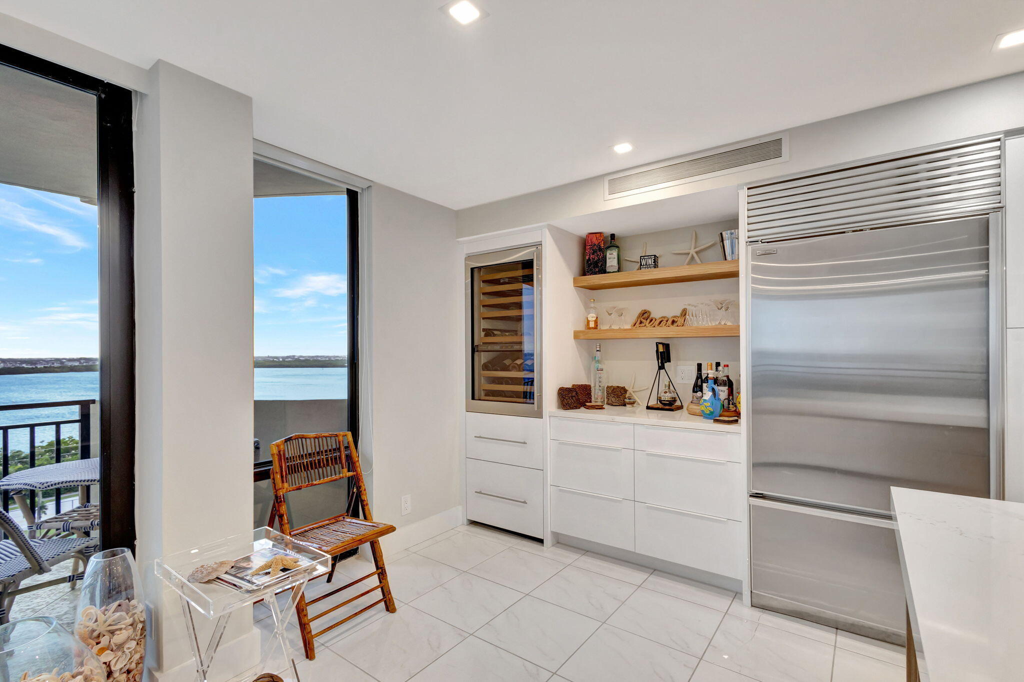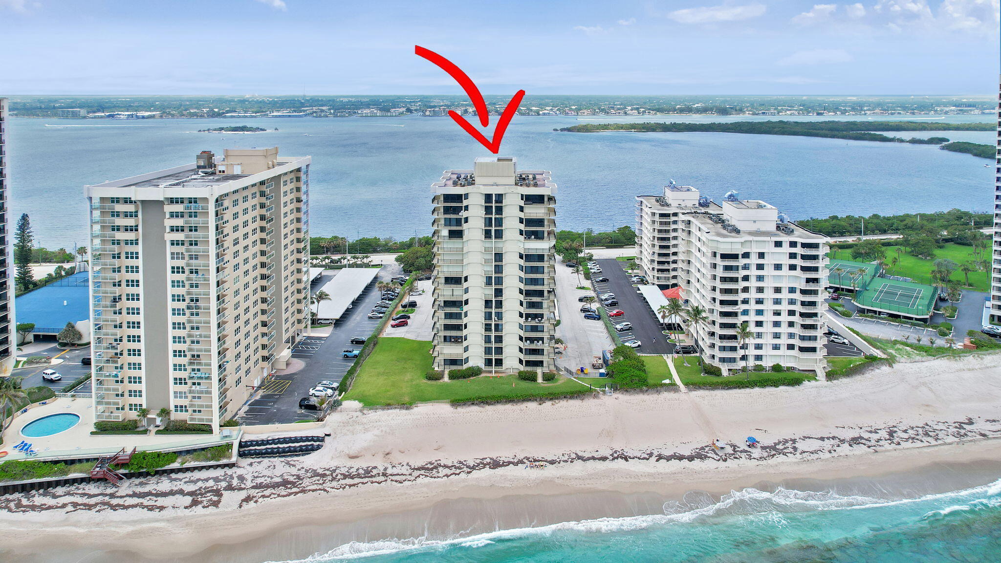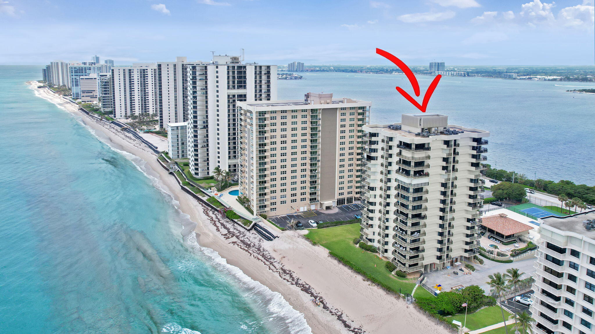 mpressively updated condo on Singer Island with intracoastal and ocean views. Large wrap around balcony and private balconies for both bedrooms with water views. Covered garage parking. Kitchen has high-end modern cabinetry, subZero and Monogram stainless steel appliances, coffee bar, wine fridge, beverage cooler, garbage pullout, and gorgeous quartz counters. Tile floor throughout. Flat ceiling (no popcorn). LED lighting. Electric blinds in the living room and bedrooms. All impact windows. Smart tech features. Enjoy peace & quite, a walk on the beach, a swim in the pool, tennis, and the many nearby restaurants & shops on Singer Island, Palm Beach Gardens, North Palm, & Jupiter. Steamer/dry cleaner in master closet. 4 condos share full sized washer/dryer. Dream condo. Dream life.