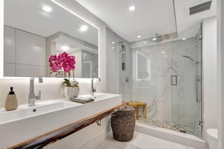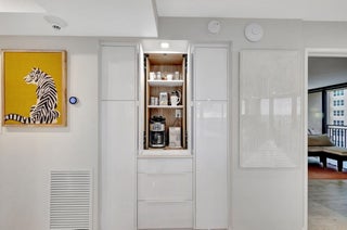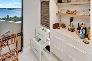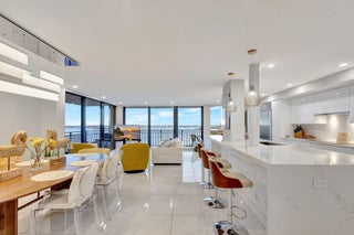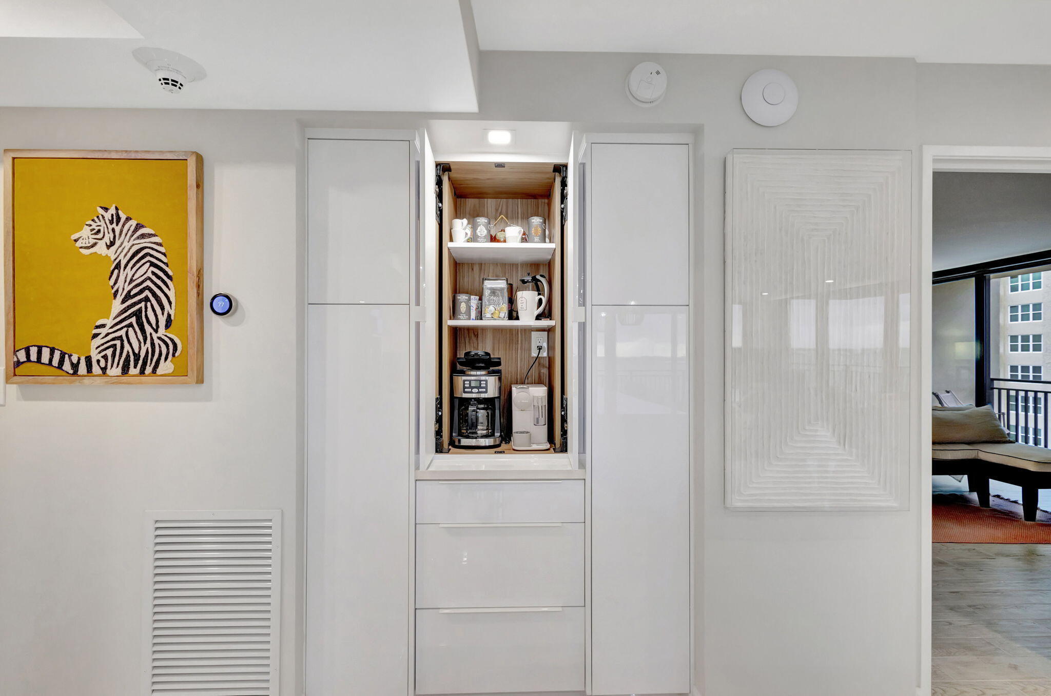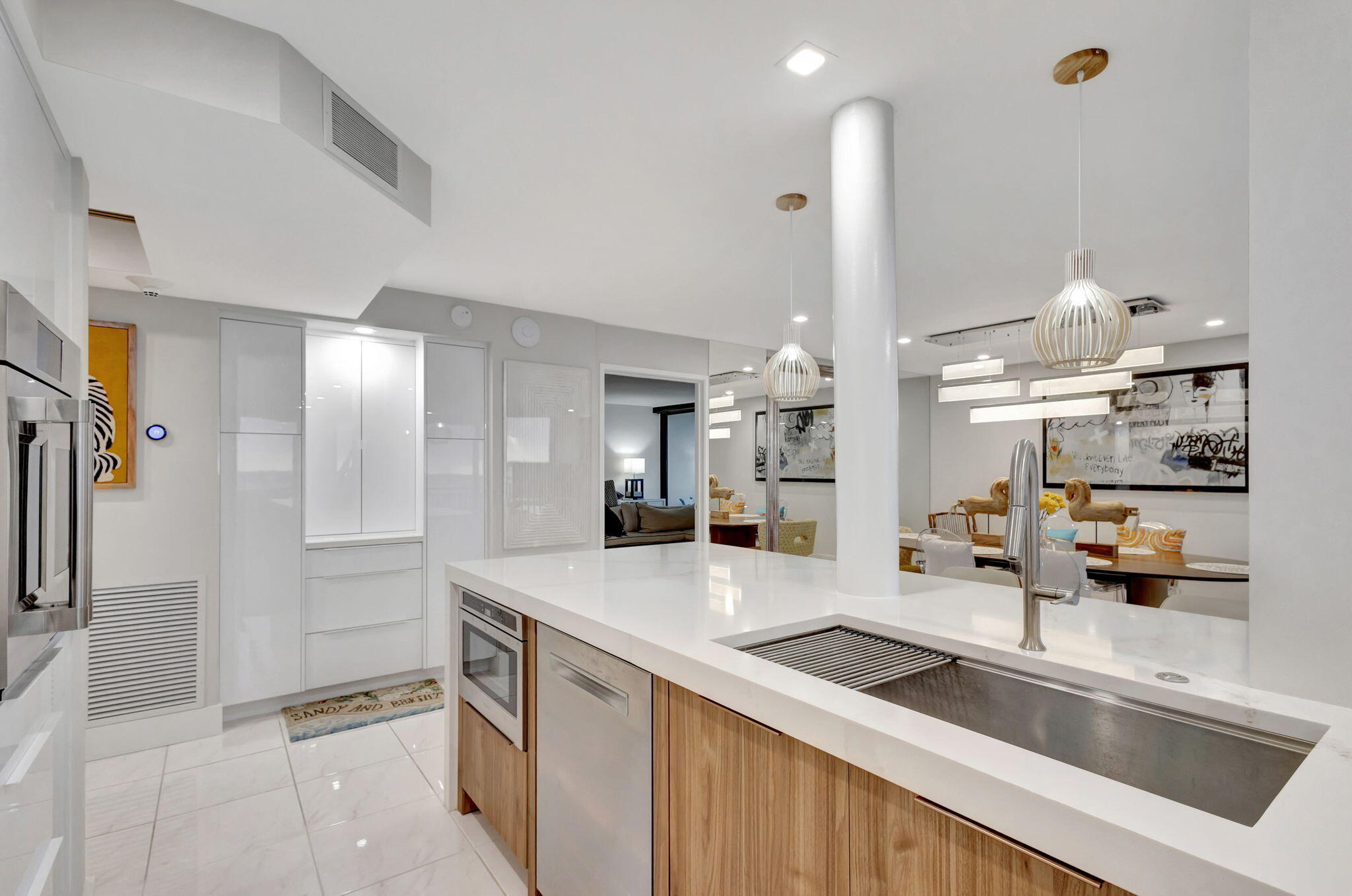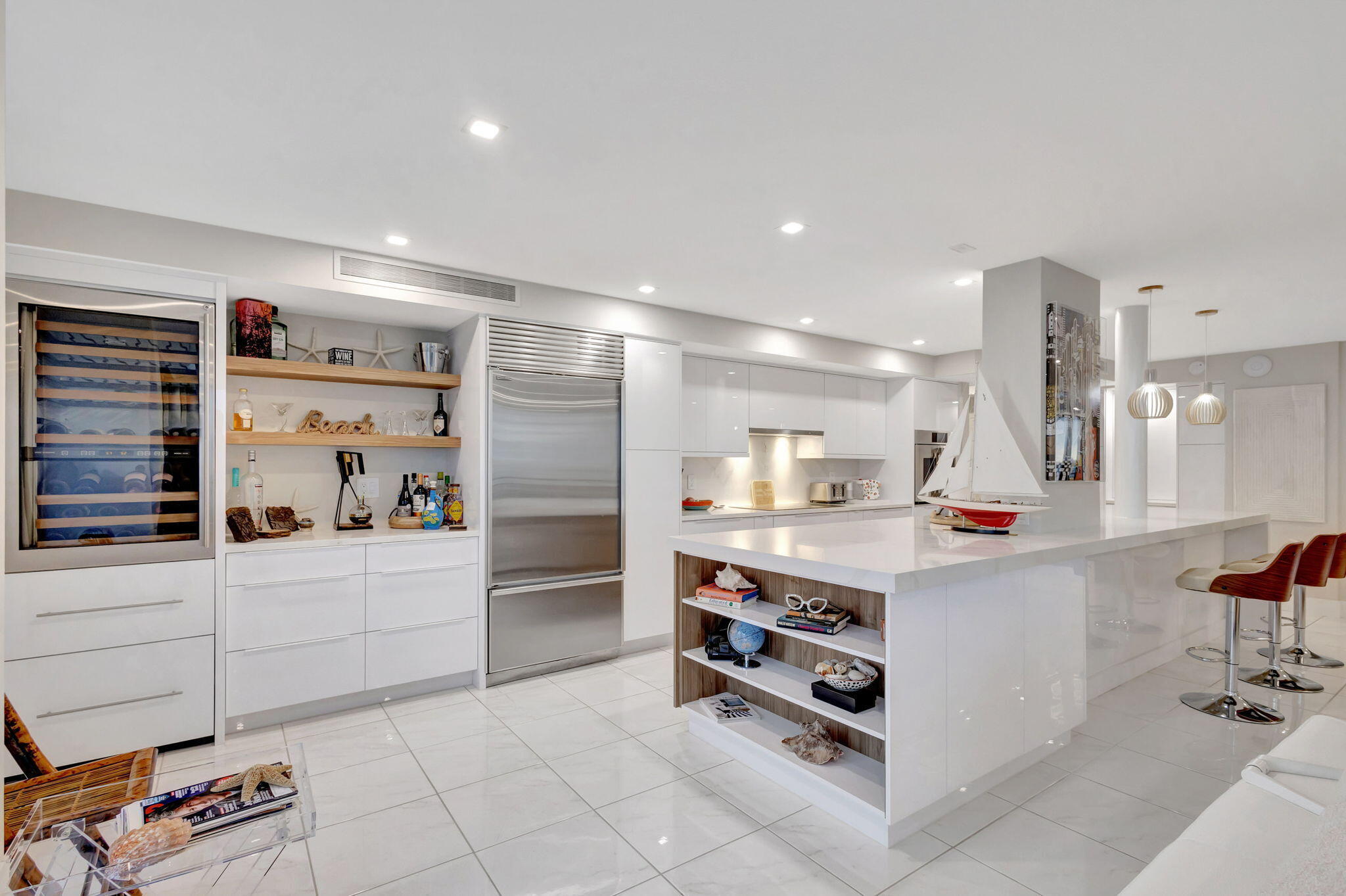 mpressively updated condo on Singer Island with intracoastal and ocean views. Large wrap around balcony and private balconies for both bedrooms with water views. Covered garage parking. Kitchen has high-end modern cabinetry, subZero and Monogram stainless steel appliances, coffee bar, wine fridge, beverage cooler, garbage pullout, and gorgeous quartz counters. Tile floor throughout. Flat ceiling (no popcorn). LED lighting. Electric blinds in the living room and bedrooms. All impact windows. Smart tech features. Enjoy peace & quite, a walk on the beach, a swim in the pool, tennis, and the many nearby restaurants & shops on Singer Island, Palm Beach Gardens, North Palm, & Jupiter. Steamer/dry cleaner in master closet. 4 condos share full sized washer/dryer. Dream condo. Dream life.