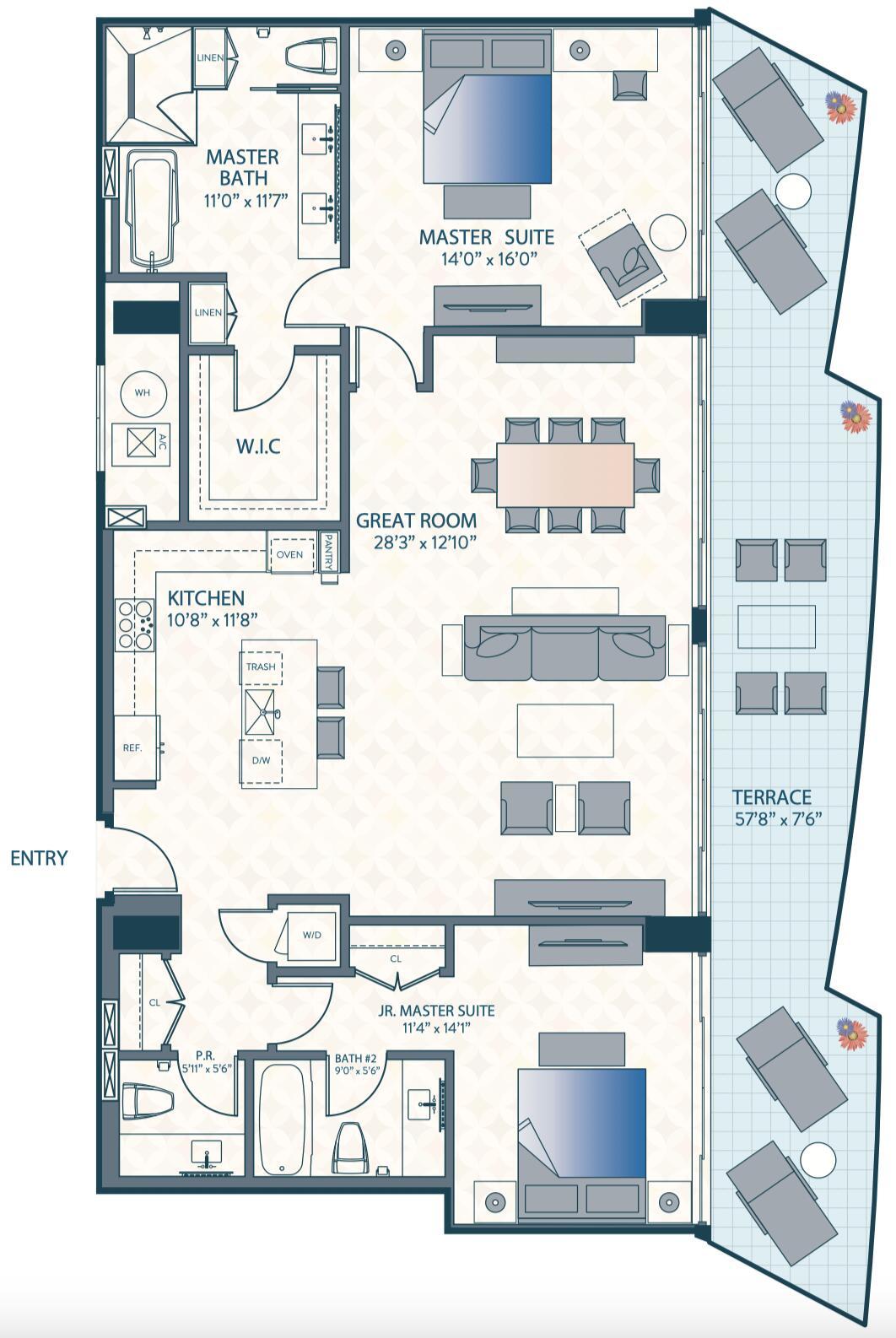 Modern complex built in 2023. Spacious, high-end condo with spectacular ocean views from every room. Large terrace, laundry room, Miele appliances. Valet parking, residents pool, hot tub, community room, 100,000-square-foot spa facility, gym, restaurants, beach with chairs and umbrellas, towel service, all available for your use now.
