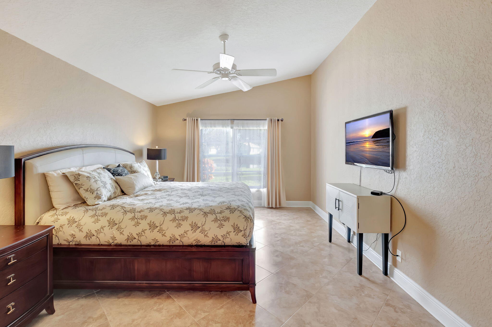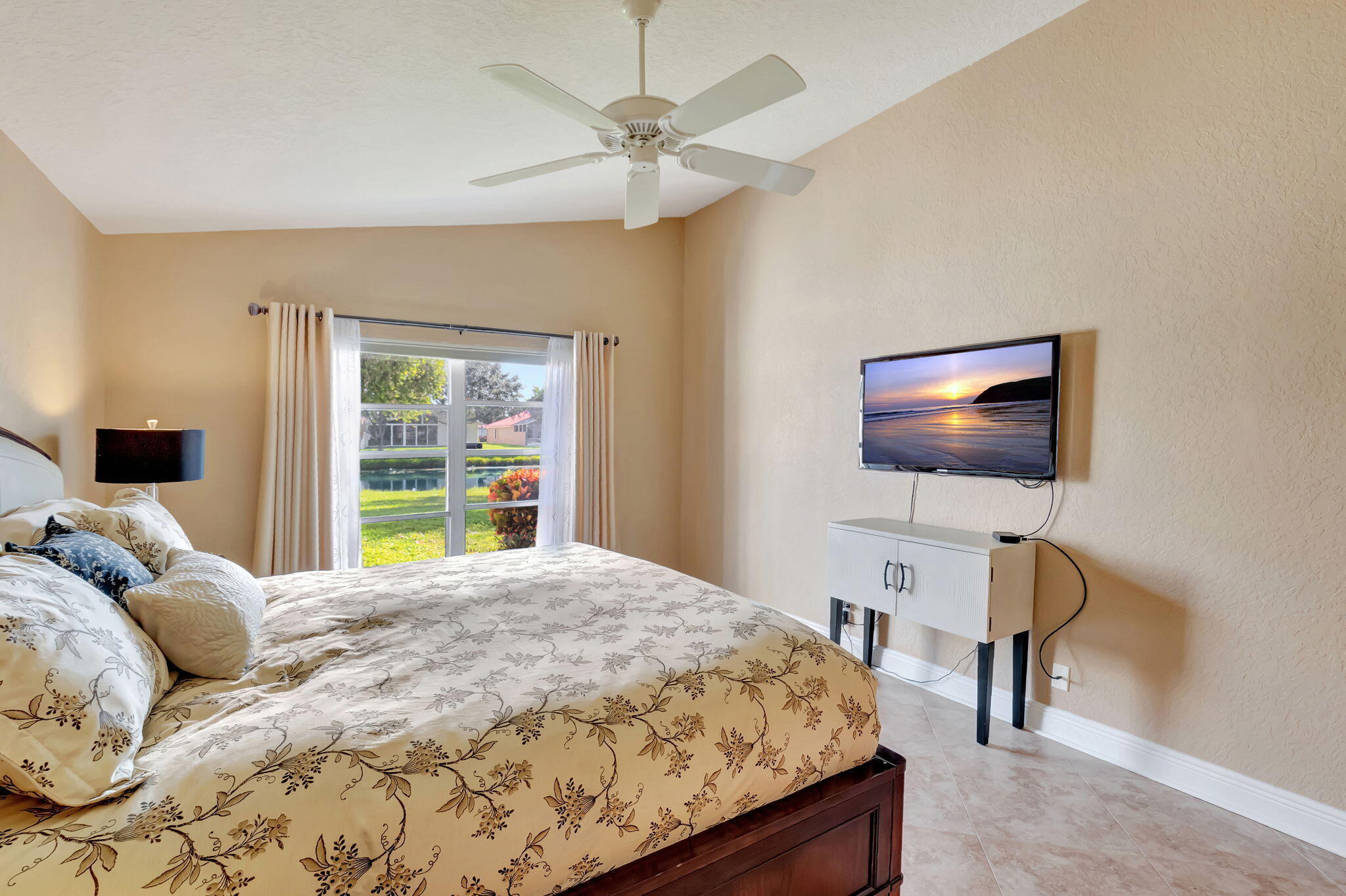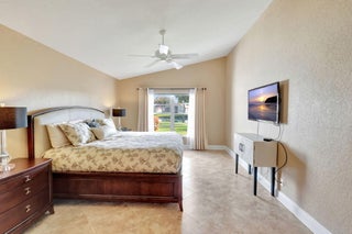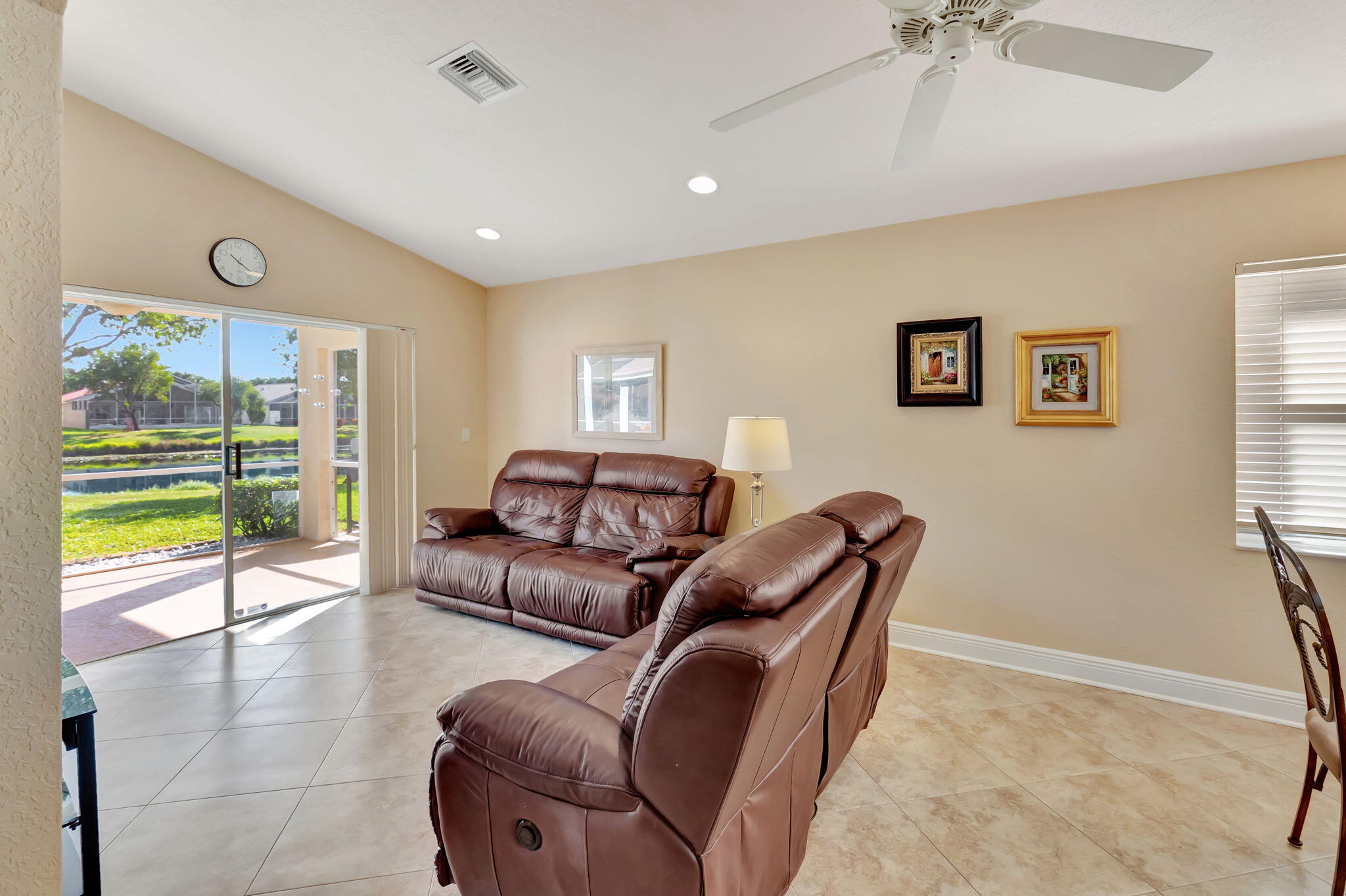 Watch the sunrise & wildlife from this beautifully maintained LAKEFRONT 3/2 home located in active 55+ age restricted gated community of Royal Lakes. All living areas are tiled on diagonal, High-hat lighting & vaulted ceilings add to the open feel. Kitchen has Corian counters, pantry and a spacious adjacent breakfast area. Both living room & family room have sliders giving access to a screened patio overlooking a stunning Lakeview. The large primary suite has 2 lighted Walk-in closets, bathroom w separate shower / roman tub. Accordion Shutters, Nest thermostat. Close to clubhouse & Houses of Worship. restaurants /shopping low HOA fees, Clubhouse, heated pool, spa, tennis, pickleball, gym, HOA Includes Cable, Internet, Alarm Exterior Home Painting, Pressure Cleaning & Landscaping. Walk to Houses of Worship. Pets welcome.