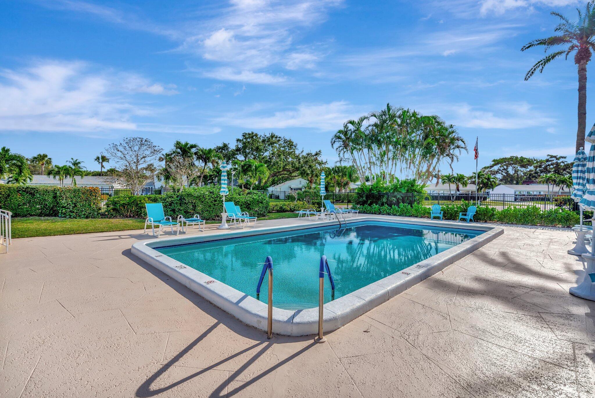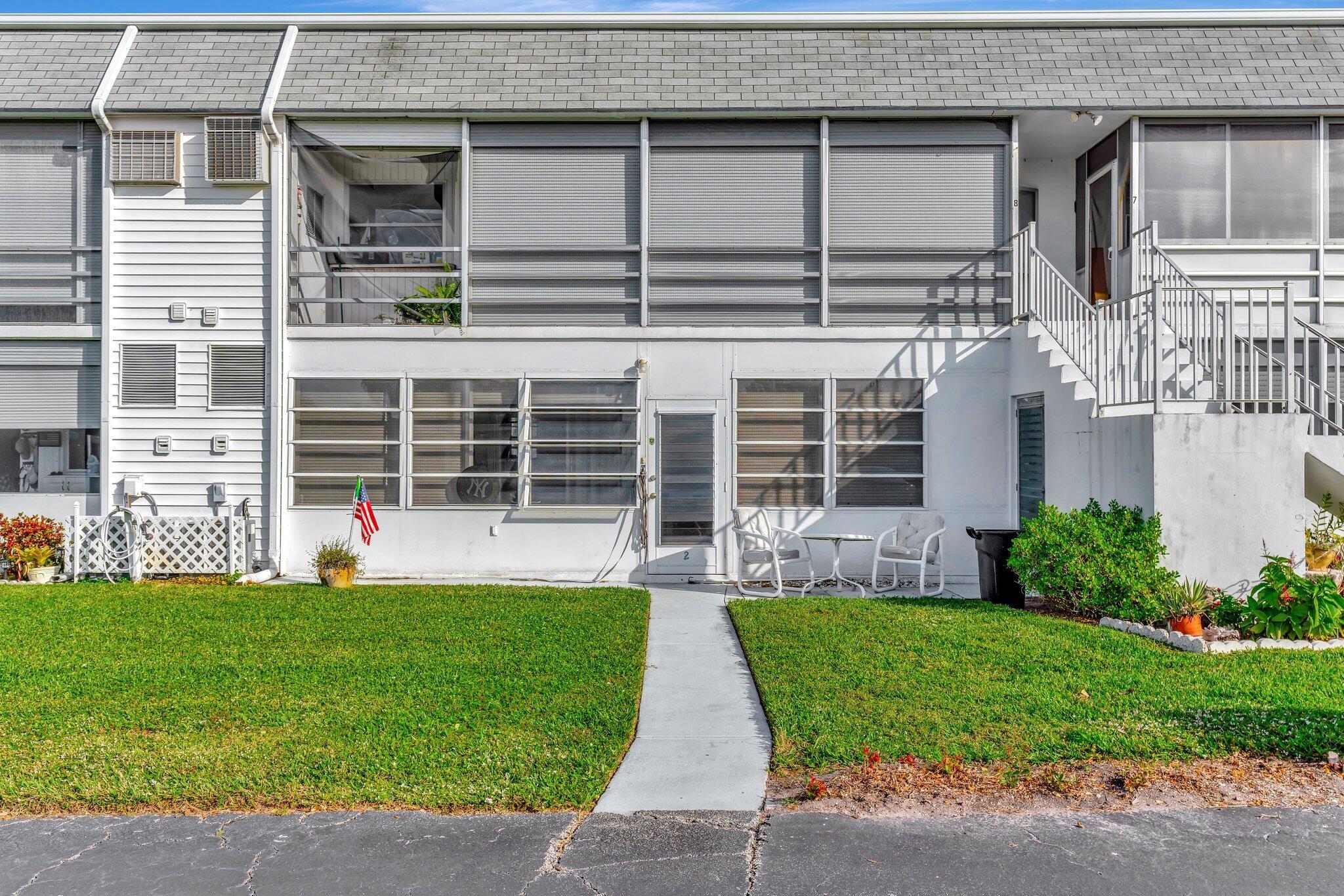 This 2-bedroom, 2-bath first-floor condo is your opportunity to own in a well-maintained 55+ community. Accordion shutters provide peace of mind, and the roof has been freshly coated with cool roof paint, backed by a 15-year warranty.Ready for your personal touch, this unit offers a comfortable layout and a welcoming community lifestyle. Amenities include a pool, clubhouse with a library, social room, and a fully equipped kitchen--perfect for events and gatherings. Residents can take part in a variety of social activities. Cable, internet, water, and sewer are all included in the maintenance fee. Ideally located near shopping, dining, and a fitness center. Just 20 minutes to PBI. Association requires a 650 credit score.