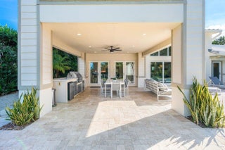 Covered Balcony, Built-in Grill, Fence, Outdoor Shower, Covered Patio, Open Patio, Custom Lighting, Summer Kitchen