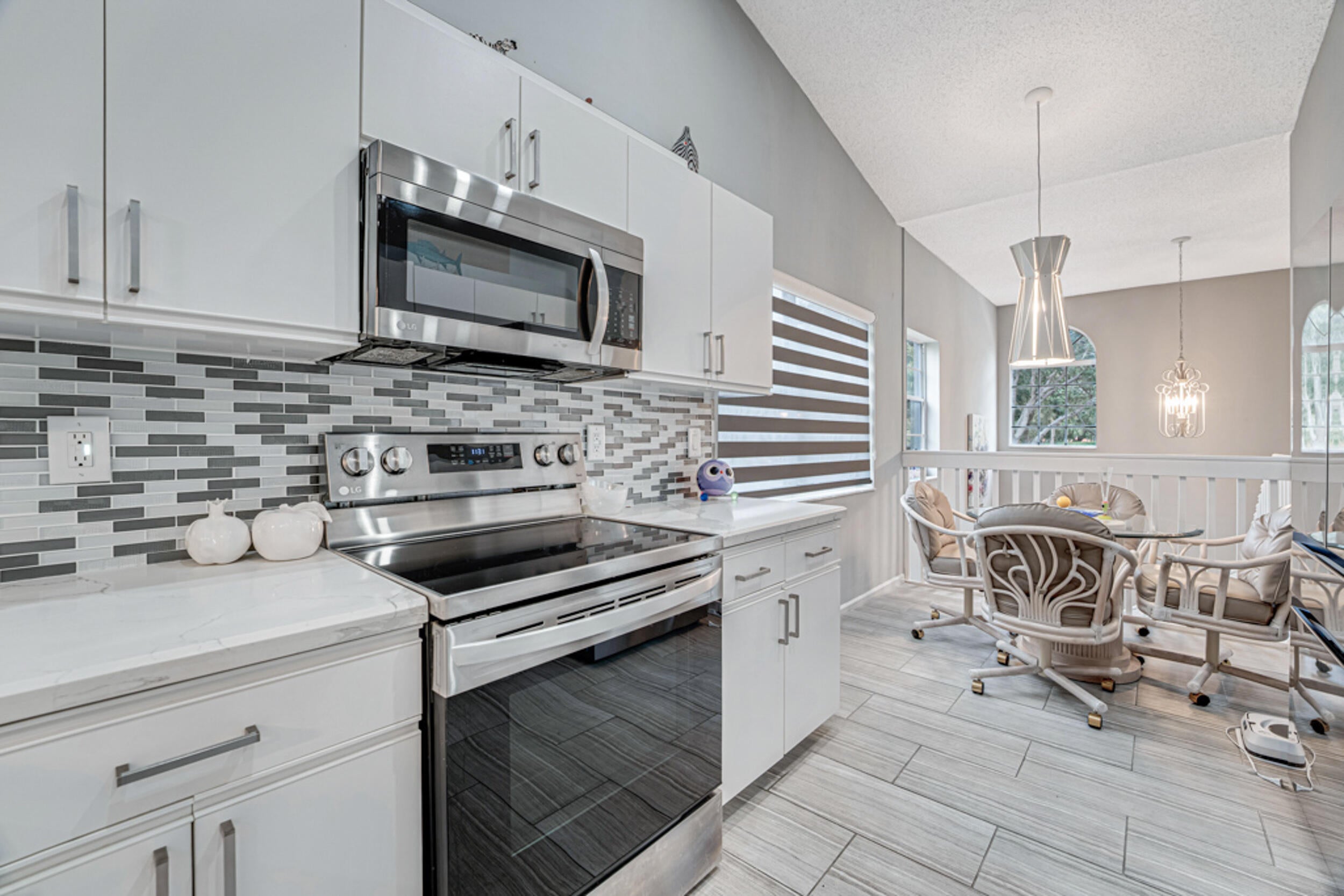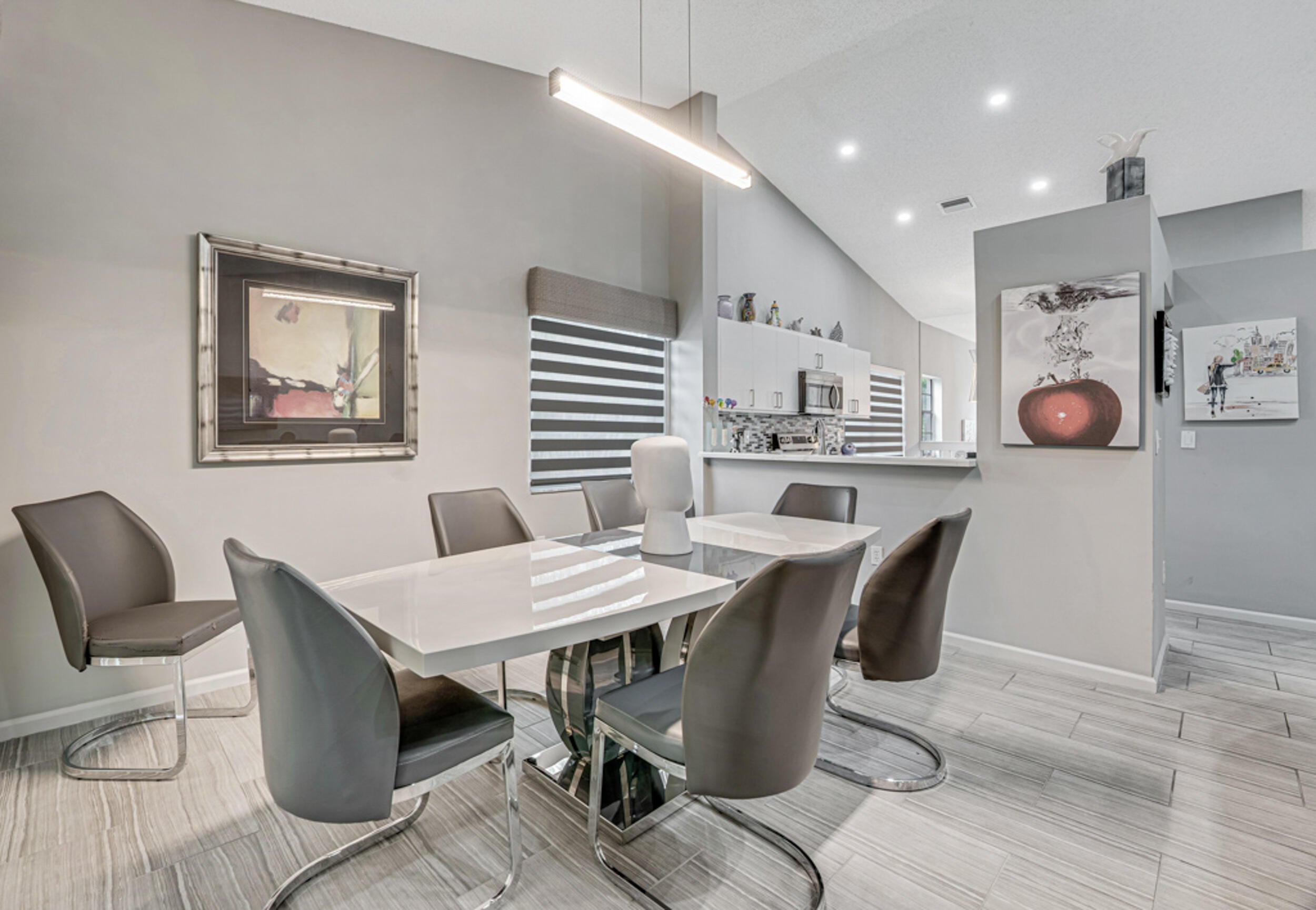 This modern & very well maintained condo offers comfortable living & a beautiful lake view. The home is filled with natural light, creating a warm & inviting atmosphere throughout. The updated kitchen features sleek stainless steel appliances, and ceramic tile & high hat LED lights throughout the living areas. An enclosed patio provides a space to relax and enjoy nature. Additional conveniences include an inside laundry room and covered carport parking. Located in the active 55+ community of Palm Isles, this home is minutes away from new shopping centers, offering dining, retail, & entertainment options for your convenience and enjoyment. Be sure to check out the 3D walkthrough tour for an ''in-person'' view of the entire condo. Multi-million Dollar Renovated Clubhouse reopens in December