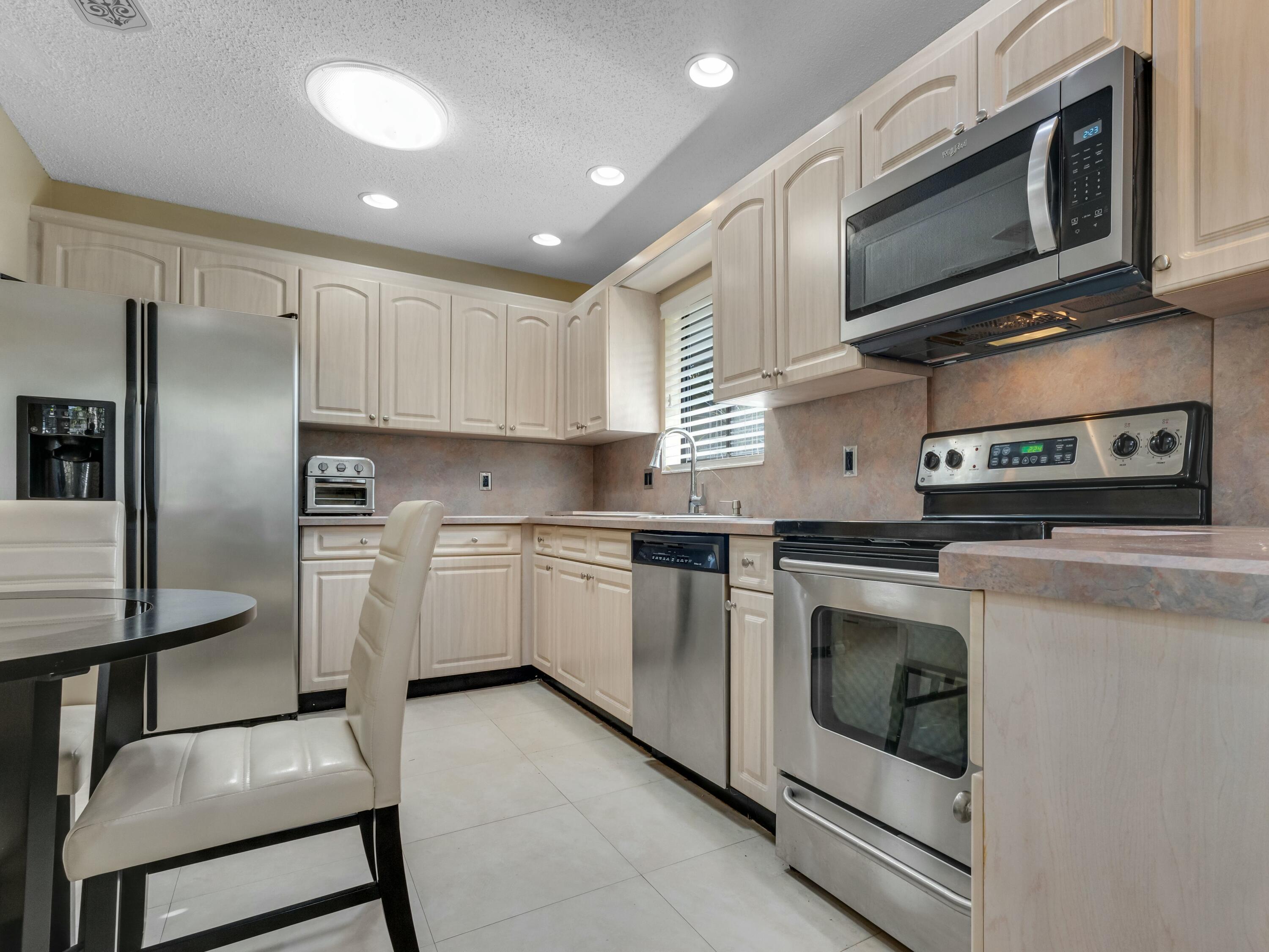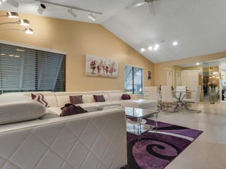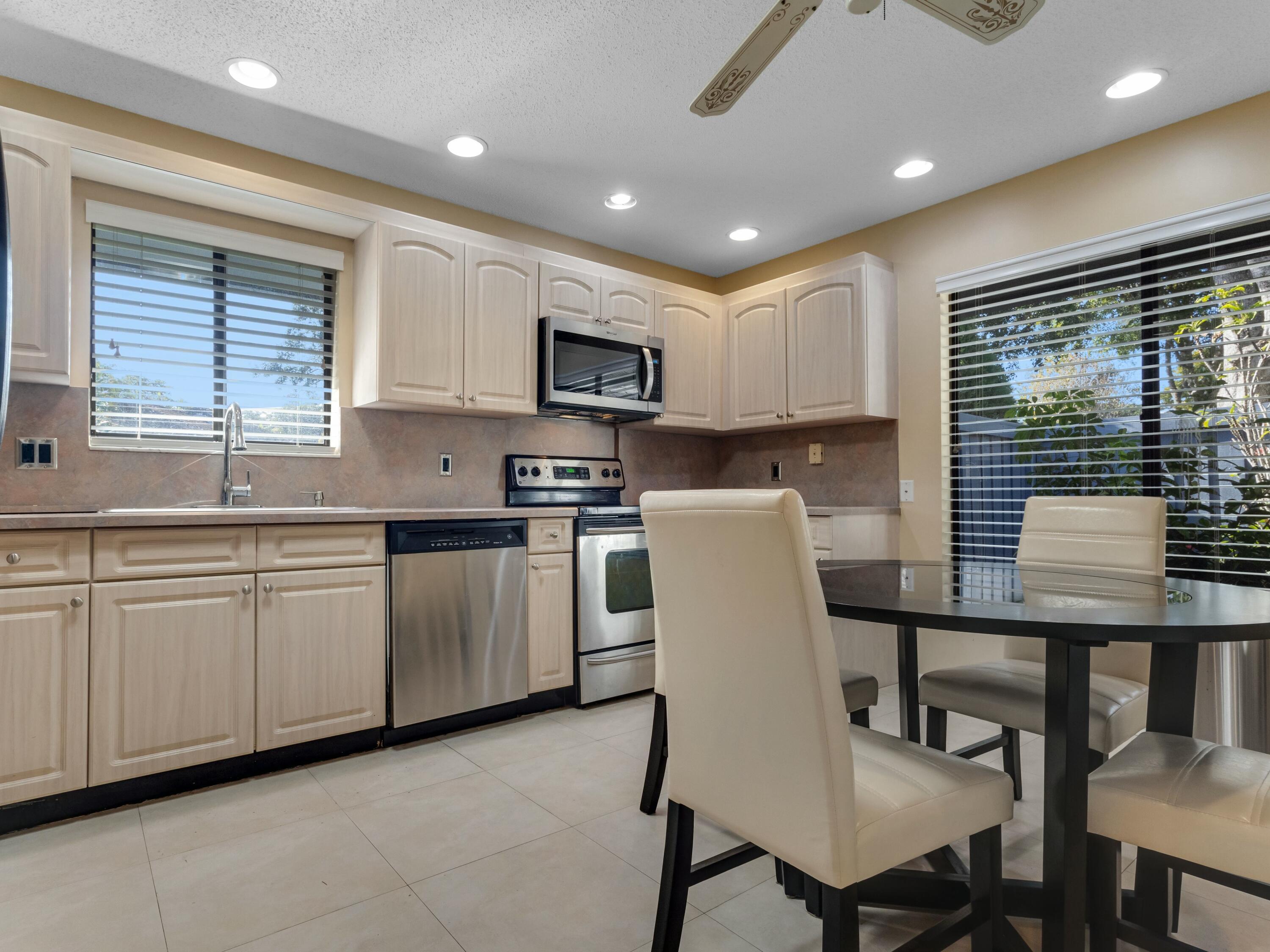 Motivated Seller - Bring all OFFERS! Villa has a NEW ROOF & UPGRADES in Banyan Springs! Over 1400 SQFT. Welcome to this beautifully updated 2-bedroom, 2-bathroom corner villa located in the vibrant 55+ gated community of Banyan Springs. Featuring a brand-new roof completed in August 2024, this home boasts stainless steel appliances, vaulted ceilings, and neutral tile throughout, offering a bright, open floor plan perfect for comfort and style. The custom kitchen, complete with modern finishes, and spacious living areas flow seamlessly, while the enclosed lanai--featuring a new screen--provides serene tropical views, creating your private retreat. Upgrades include a new washer, dryer, and microwave, ensuring convenience and modern functionality. The master bed set is included in the sale.Banyan Springs offers resort-style living with amenities like pools, a spa, tennis and pickleball courts, shuffleboard, a fitness center, café, salon, clubhouse, and numerous social activities. Enjoy a secure, maintenance-free lifestyle in a prime location near I-95 and the Turnpike. Move right in and start living the dreamschedule your showing today!