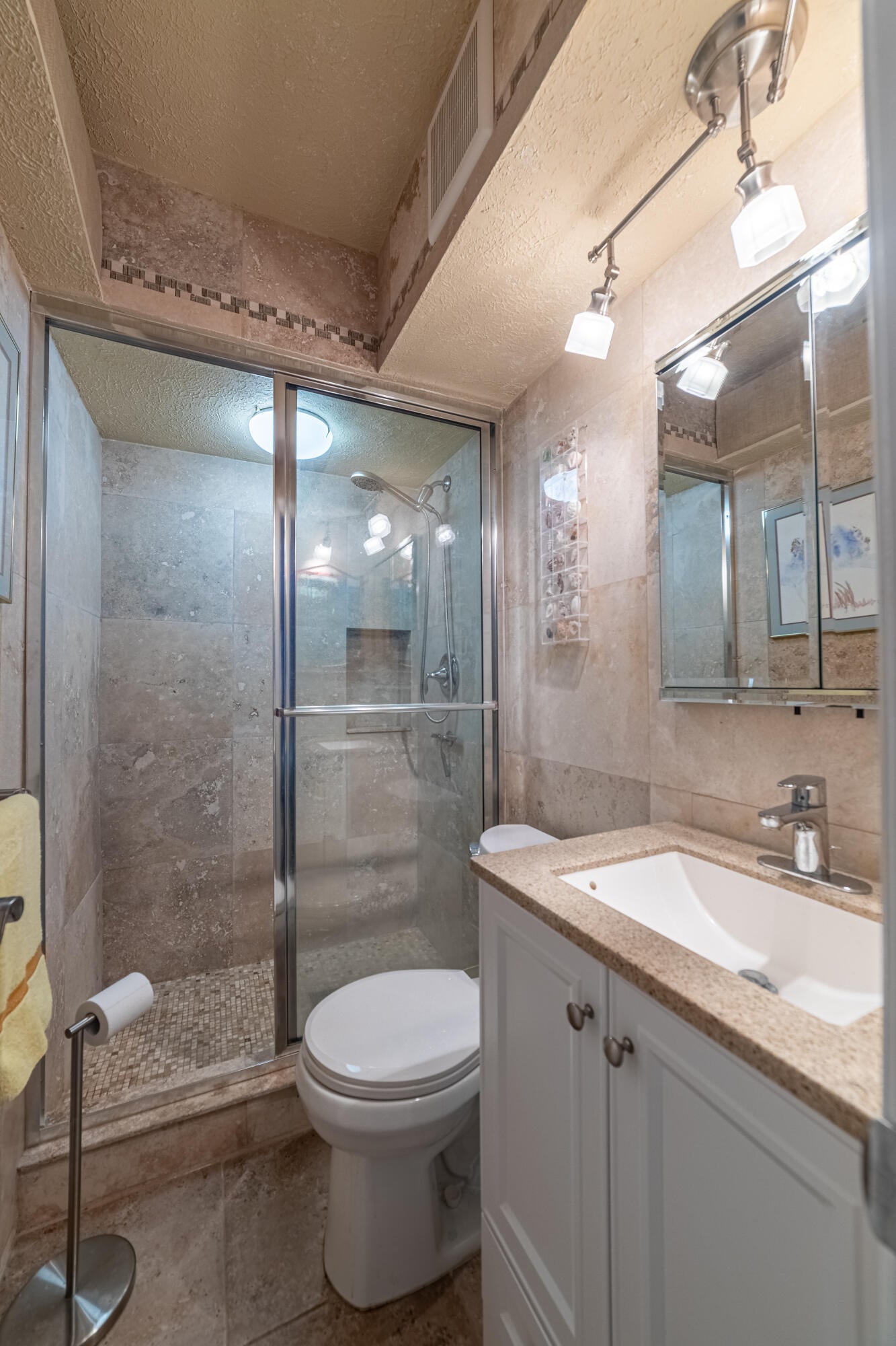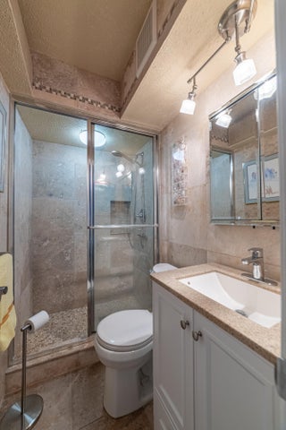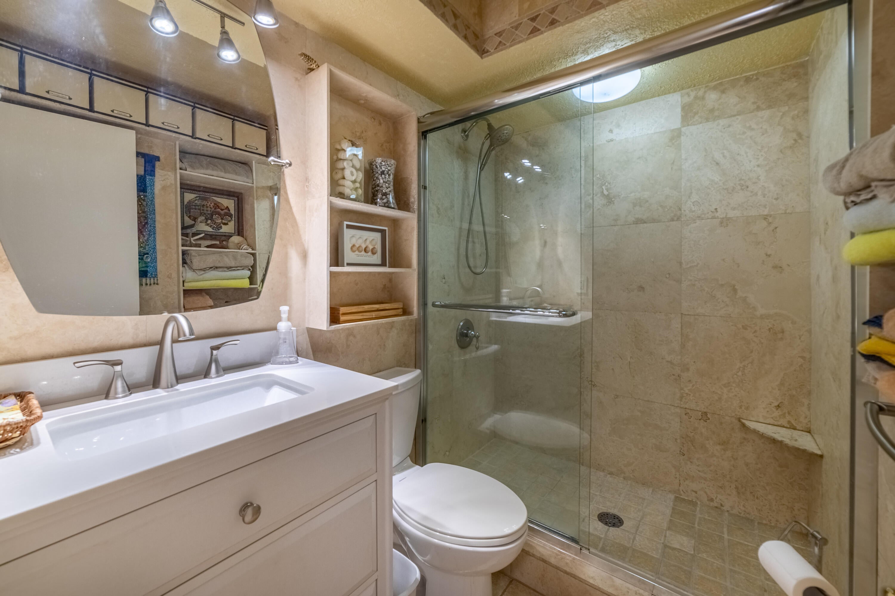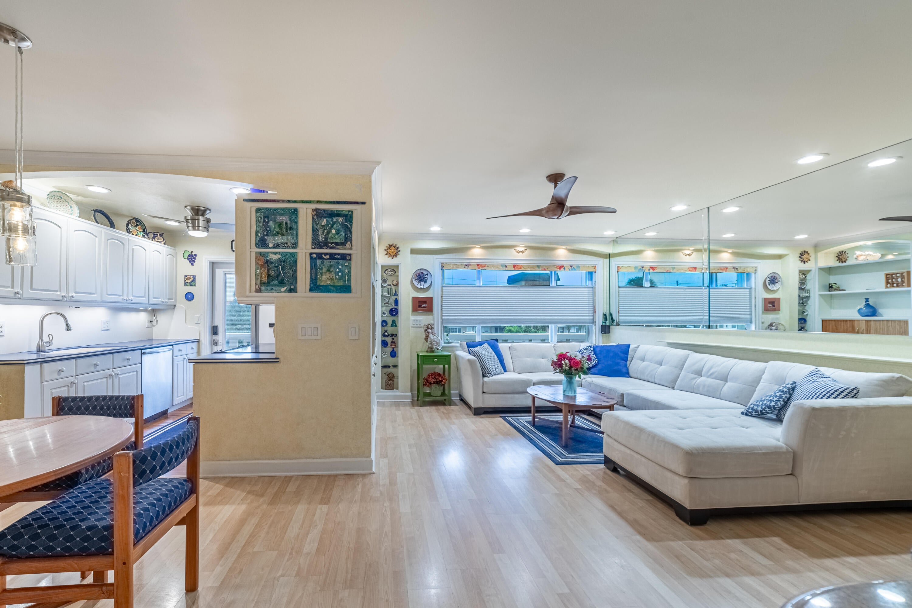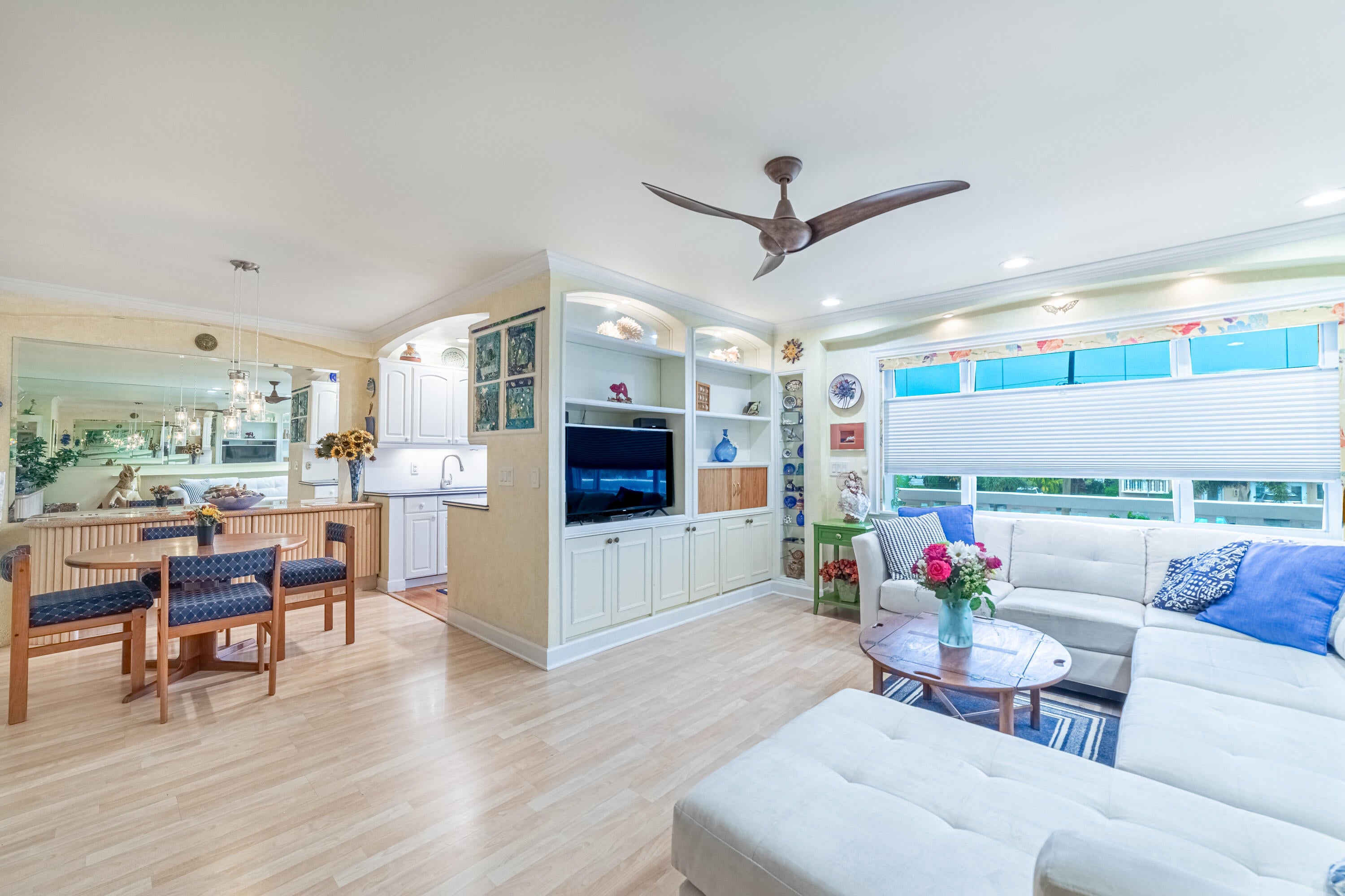 INTRACOASTAL BOATER'S PARADISE!! This SUPER CUTE 2 bedroom, 2 bath, 2nd floor Co-Op is your coastal bungalow in this active 55+ waterfront community in the heart of North Palm Beach. Relax on your screened in balcony while watching the boats go by on the intracoastal waterway. The breathtaking morning sunrises and evening skyline of Singer Island will bring serenity and peace to your senses. If you are a boater, fish off the dock or bring your boat at $2/foot you may lease a slip upon availability! Features include; hurricane impact windows, sliders and doors, 2024 mansard and roof, pull-down window shades throughout, crown molding, updated kitchen with Corian countertops, large custom built-in desk with granite, full-size Murphy bed in closet for guests,additional built-in storage, additional custom shelving throughout, bamboo flooring in the kitchen and laminate flooring with 4 inch baseboards throughout, remodeled bathroom with quartz counters and ceiling-to-floor Italian Travertine, marble credenza in living room, remote ceiling fans and recess lighting with dimmer feature. In addition, the community clubhouse has a full kitchen, outdoor grilling area, heated pool and shuffle board for your entertaining convenience. You will LOVE the breezes off your bedroom balcony while enjoying a good book or glass of wine! You are less than 2 miles from the beautiful Palm beaches, minutes away to 5 star restaurants, shopping, North Palm Country Club and Golf, the new Brightline train, 11 miles to the popular Jupiter Lighthouse & Museum and less than 20 min to Palm Beach International Airport. Your waterfront paradise awaits!