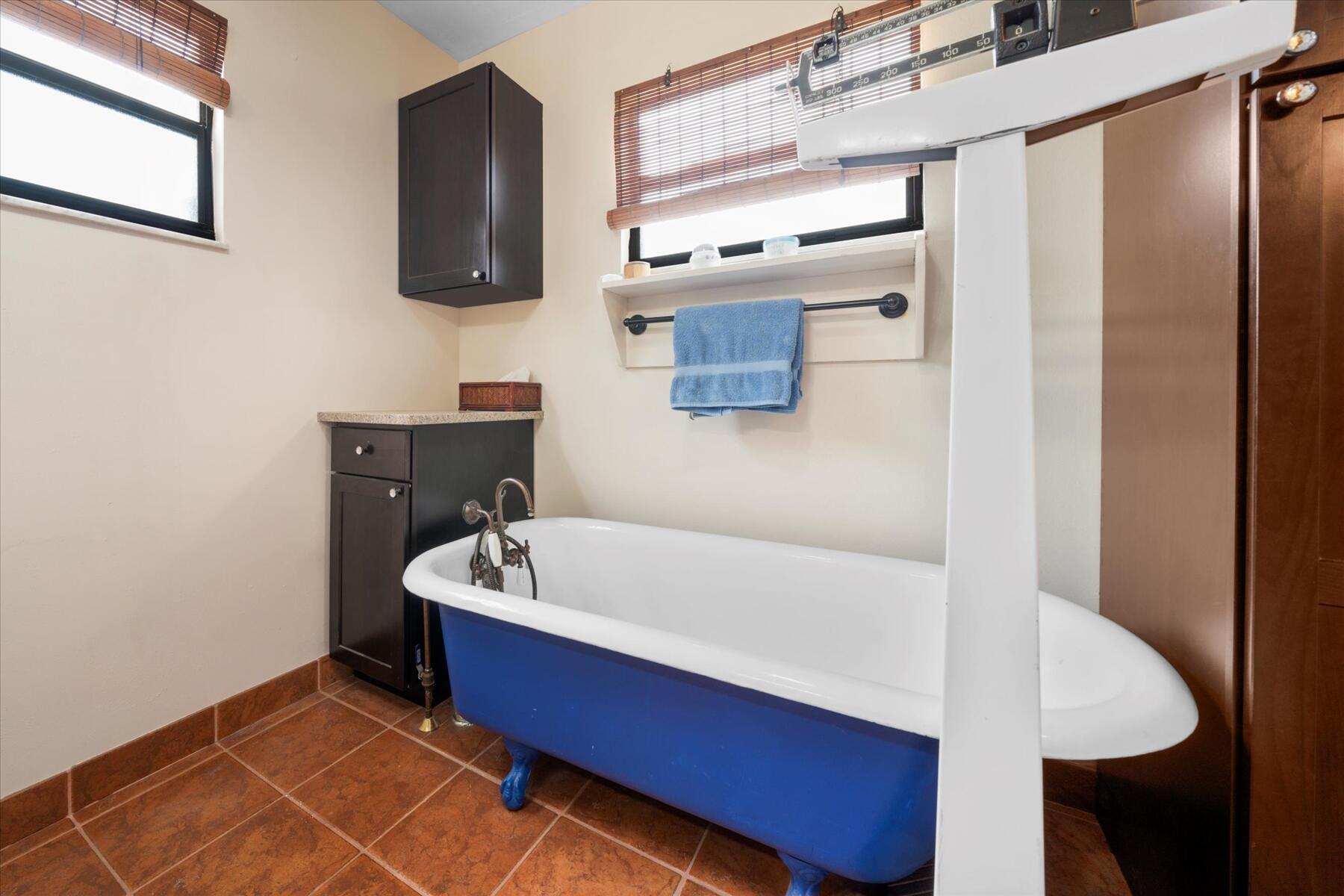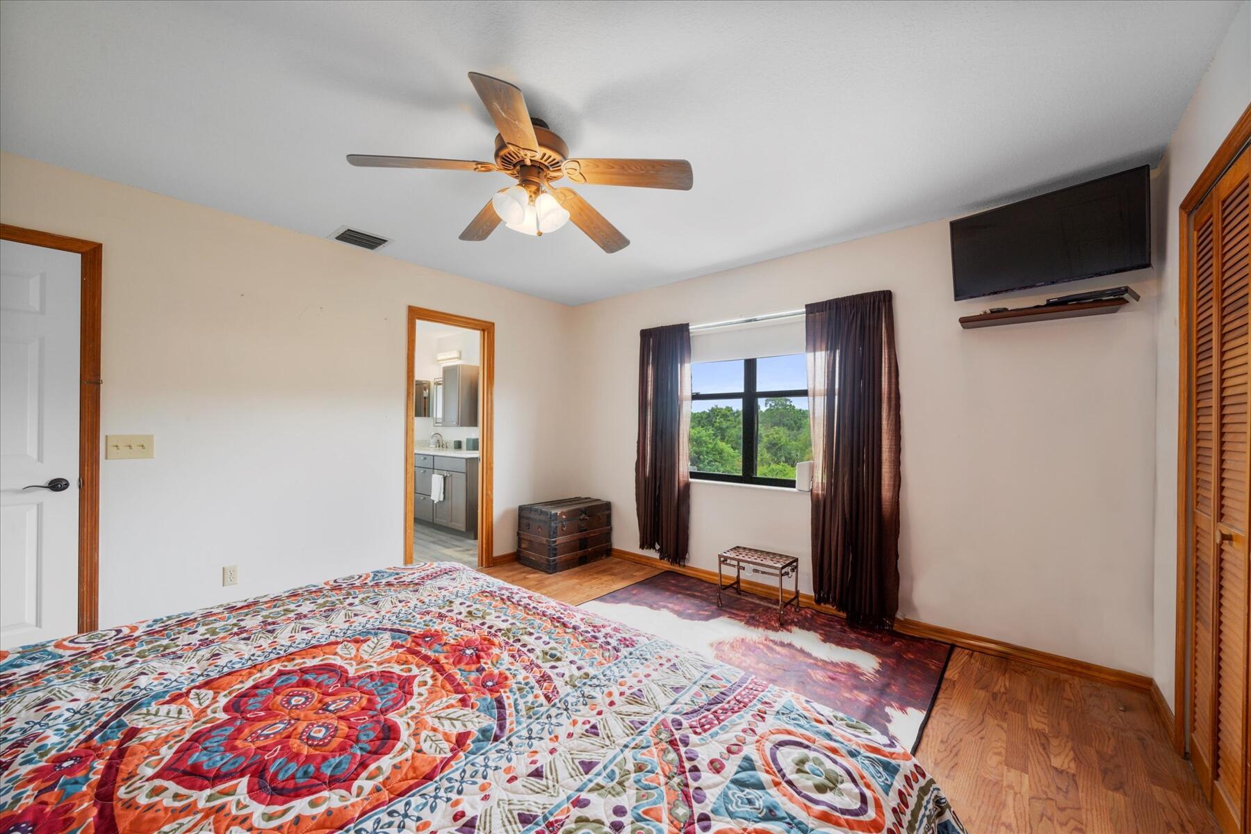Bring your toys! This charming 2 story custom built pool home is nesteled on over an acres (1.01 ac). Features include soaring wood planked ceilings, sunken living room with stone fireplace. Updated kitchen with stainless steel appliances, updated bathrooms, covered patio and large fenced yard. New air handler blower motor, 2024 pool pump motor, 2024 well pump, 2018 hot water heater, and fresh paint. Ample room for parking and hook up for RV. Plenty of room to build a detached shop/garage or toy storage. County Water connection available.