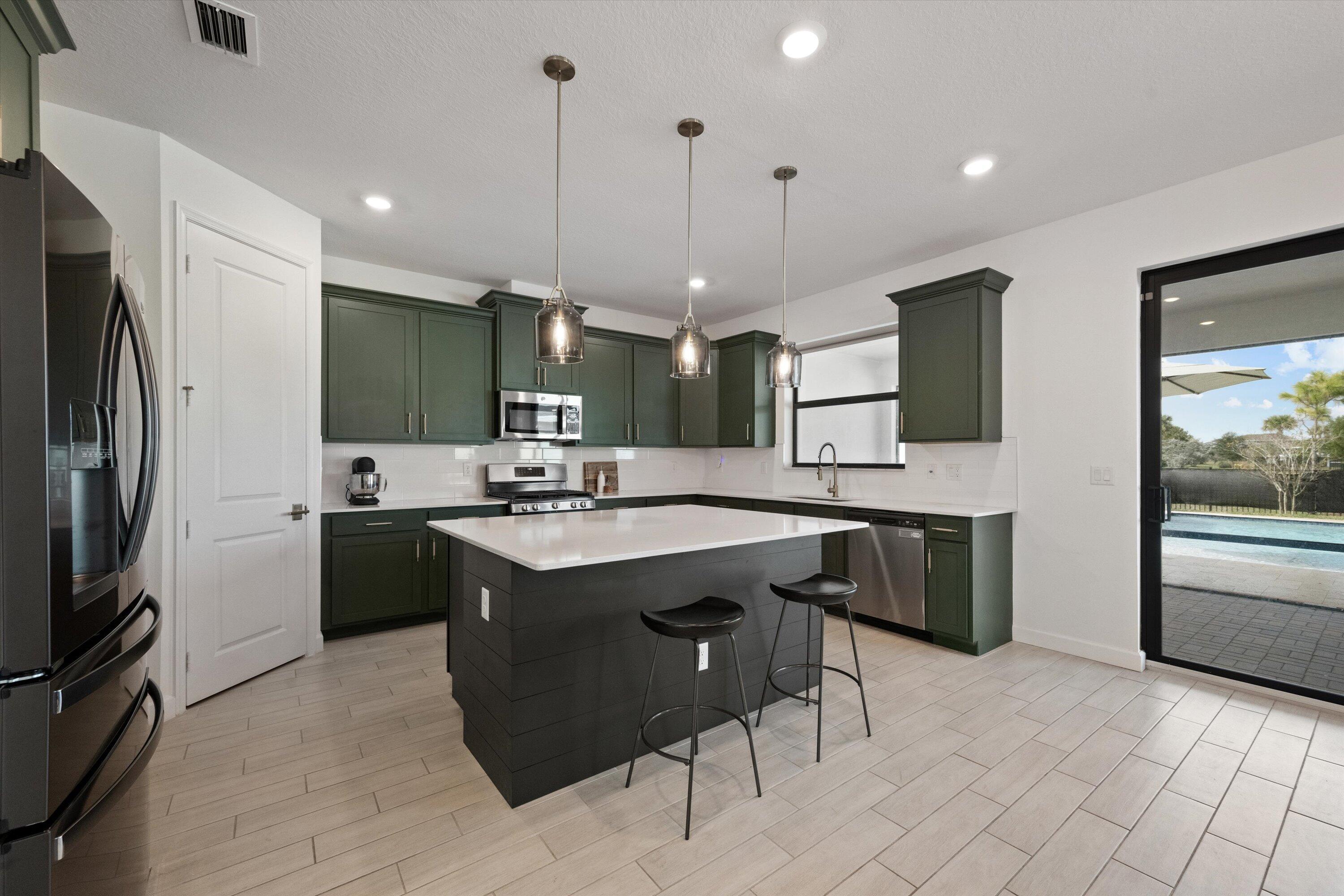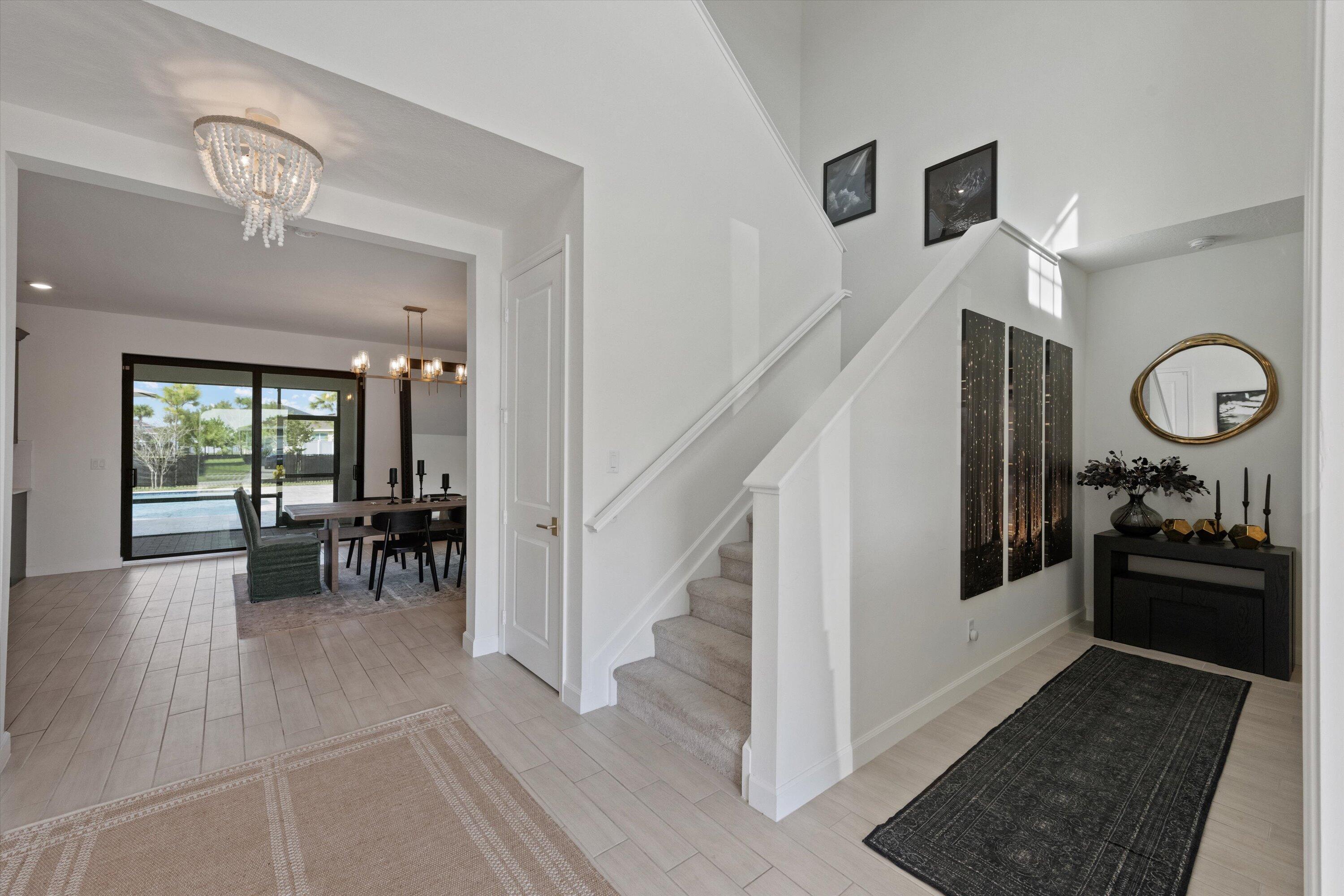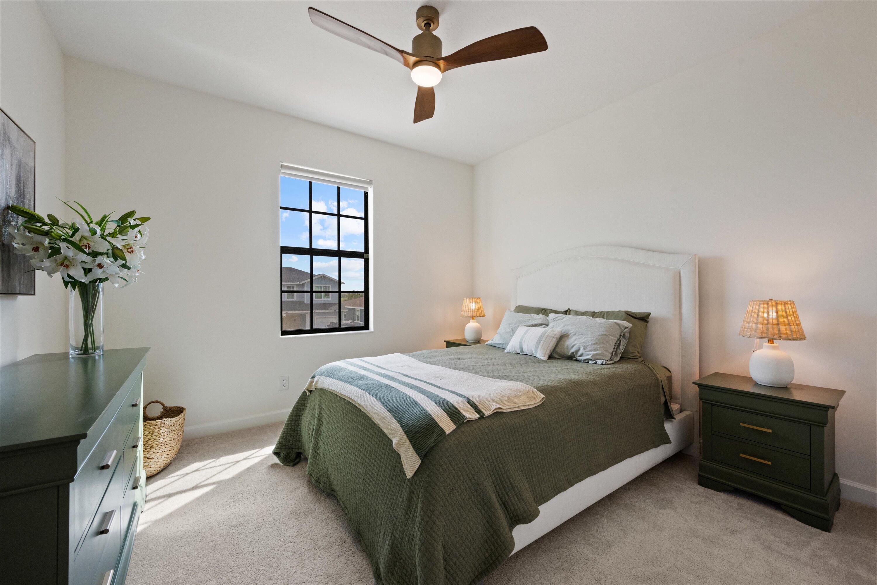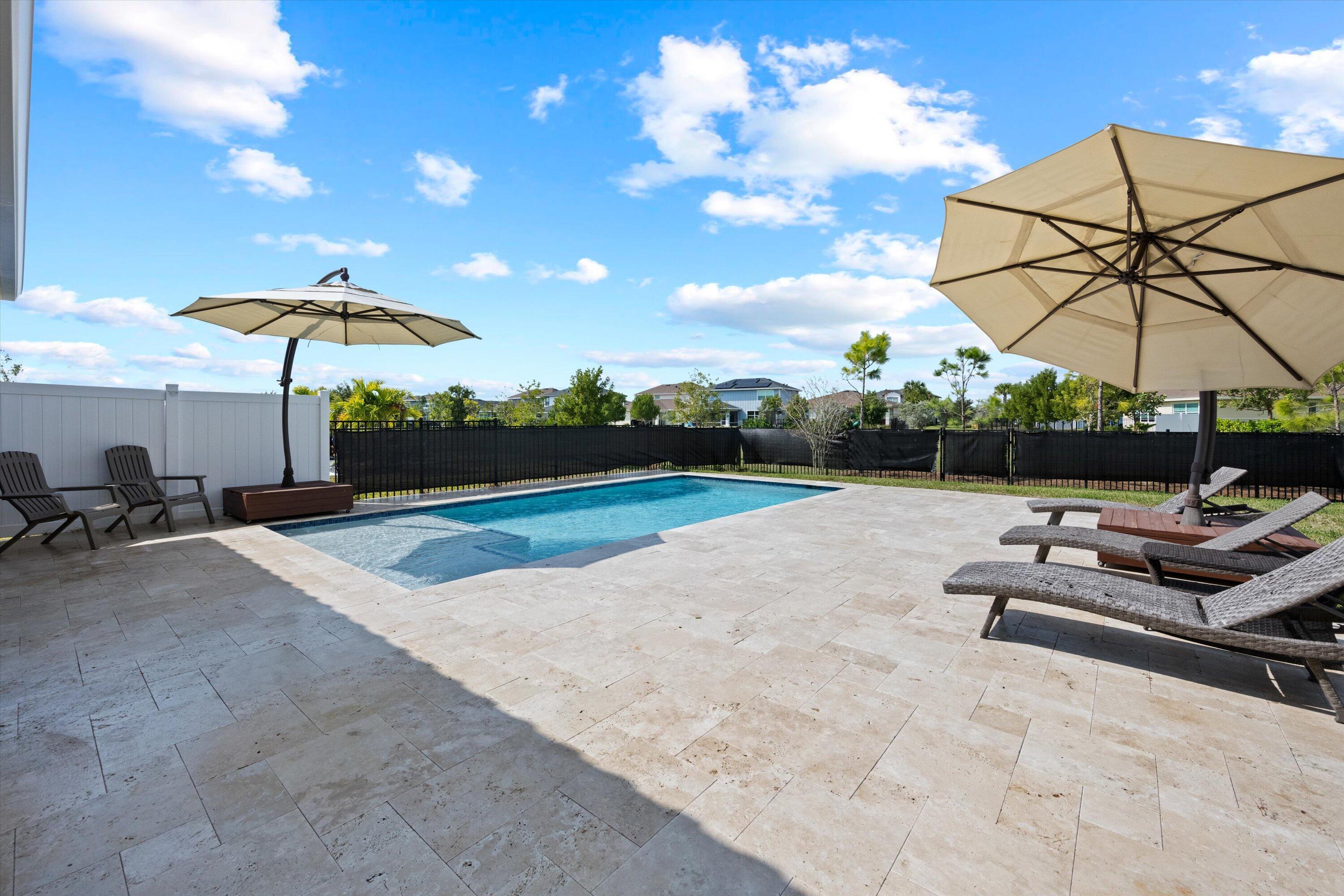 Welcome to this stunning 4-bed, 3-bath Spanish-style home, featuring a highly sought-after floor plan, set on an expansive lot. On the ground floor, you'll find an inviting open-concept living, dining, and kitchen area--perfect for entertaining. A 4th bedroom and full bath, along with stylish wood-tile flooring, complete the main level. The 2nd level offers a spacious primary suite, along with 2 additional bedrooms, bath and laundry room. This home boasts an array of upgrades, including a heated pool with a generous deck for outdoor relaxation, screened in lanai, fenced yard, and a total of 3 garage bays. Additional highlights include impact windows and doors, custom built-in shelving in the living area, new vanity mirrors, light fixtures, ceiling fans a new refrigerator and microwave, kitchen hardware, and upgraded filtered shower heads in all bathrooms. Arden is the premier place to live and experience a resort style community that Palm Beach county is known for. From 20 miles of trails winding through green spaces and around lakes, a resort style pool, fishing, kayaking, fitness center, soccer field, pickleball, tennis, playgrounds, and a 5 acre organic "you pick it" farm, Arden is inspired by nature everywhere you look. Arden is also in the process of adding an orchard, dog park, skate zone, and other new amenities. New in August 2025 - Saddle View Elementary school will be opening and is located near the SW corner of the community, serving over 950 students.