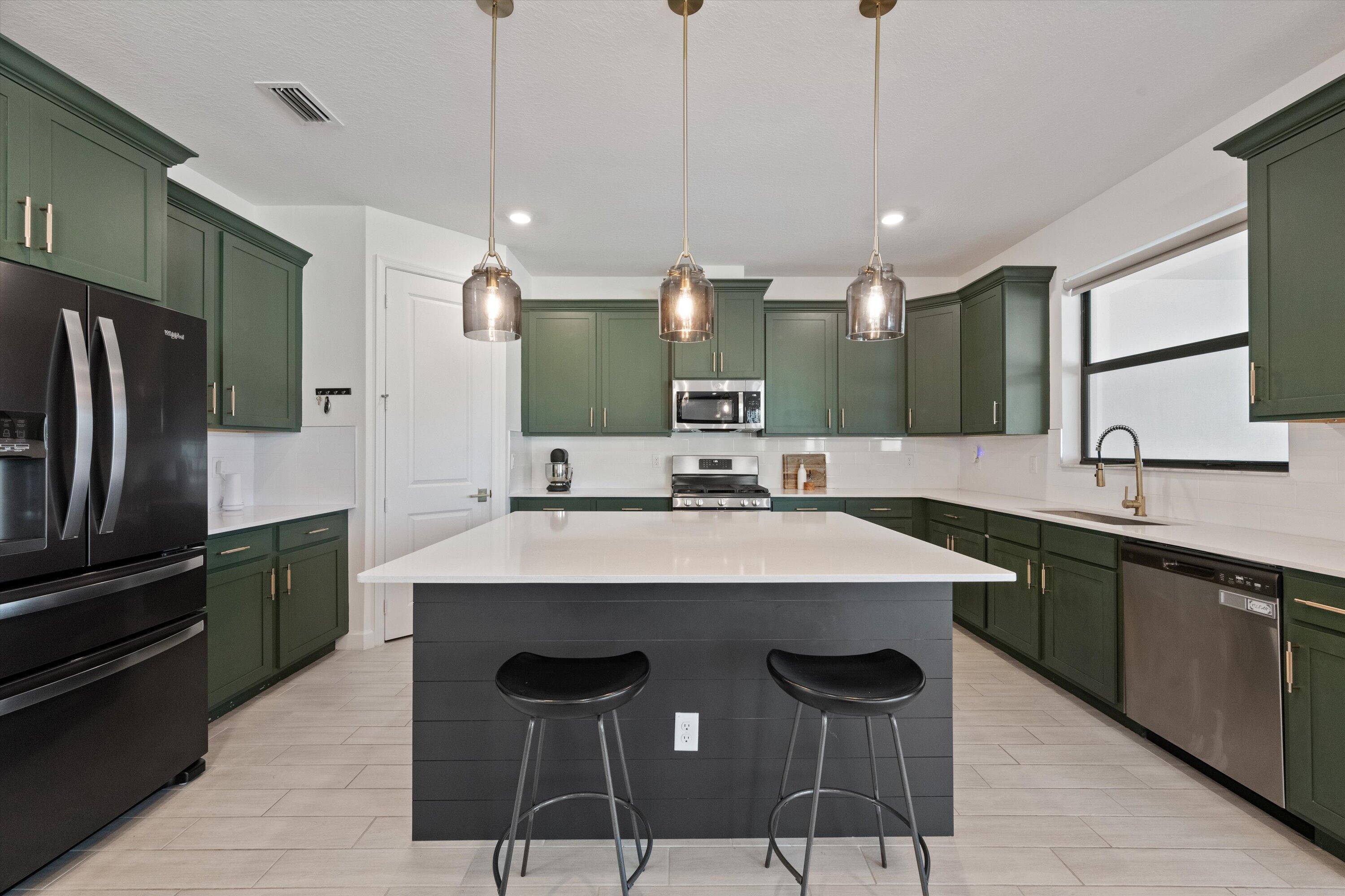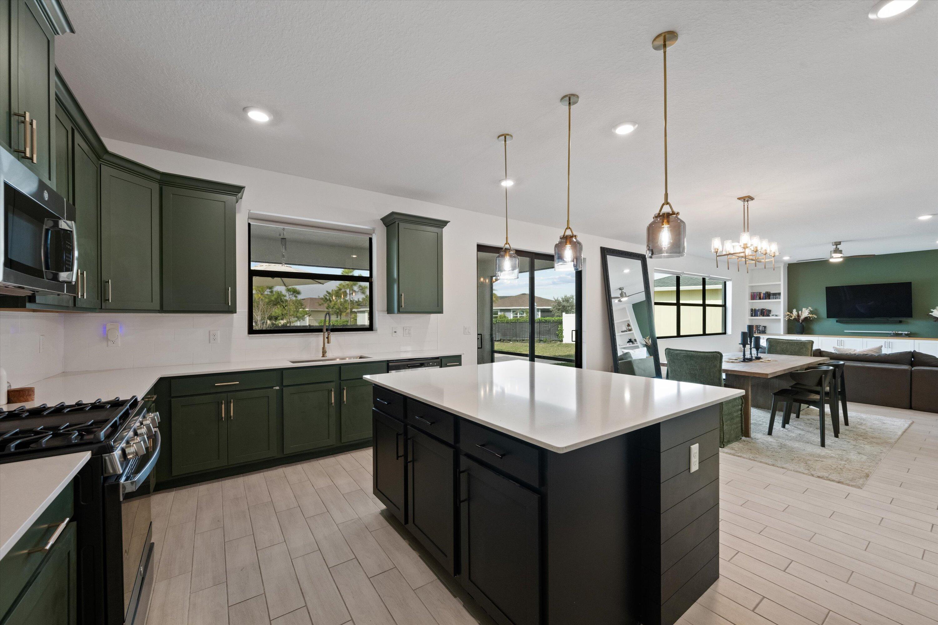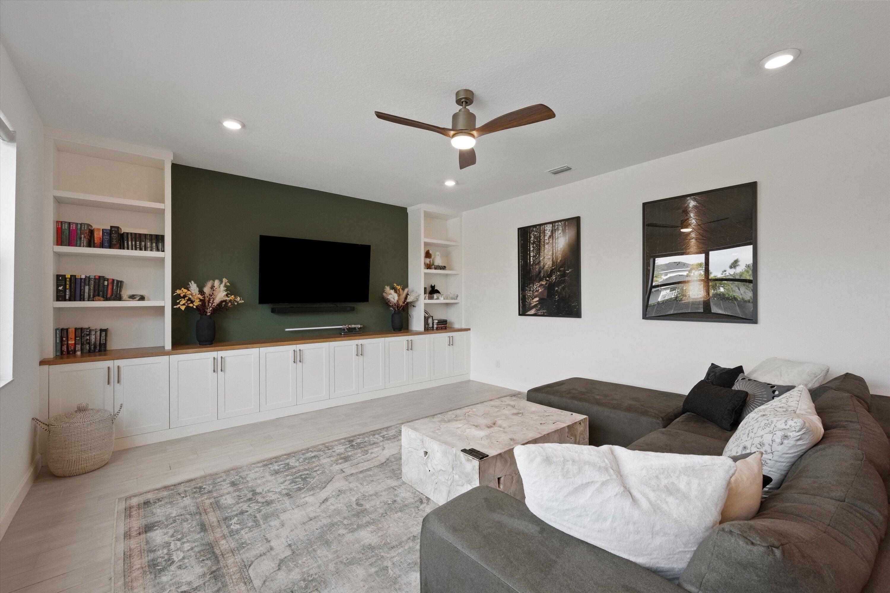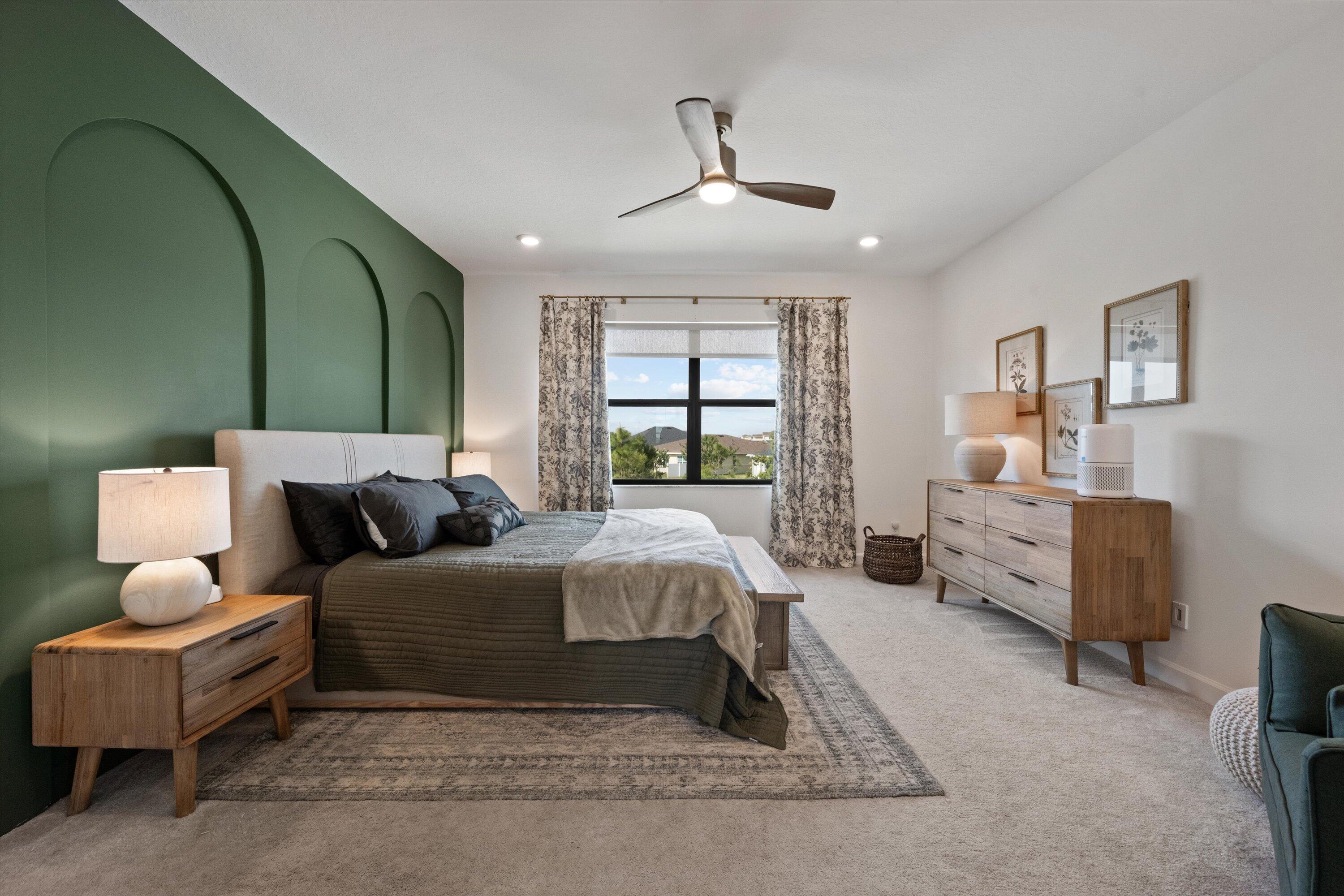 Welcome to this stunning 4-bed, 3-bath Spanish-style home, featuring a highly sought-after floor plan, set on an expansive lot. On the ground floor, you'll find an inviting open-concept living, dining, and kitchen area--perfect for entertaining. A 4th bedroom and full bath, along with stylish wood-tile flooring, complete the main level. The 2nd level offers a spacious primary suite, along with 2 additional bedrooms, bath and laundry room. This home boasts an array of upgrades, including a heated pool with a generous deck for outdoor relaxation, screened in lanai, fenced yard, and a total of 3 garage bays. Additional highlights include impact windows and doors, custom built-in shelving in the living area, new vanity mirrors, light fixtures, ceiling fans a new refrigerator and microwave, kitchen hardware, and upgraded filtered shower heads in all bathrooms. Arden is the premier place to live and experience a resort style community that Palm Beach county is known for. From 20 miles of trails winding through green spaces and around lakes, a resort style pool, fishing, kayaking, fitness center, soccer field, pickleball, tennis, playgrounds, and a 5 acre organic "you pick it" farm, Arden is inspired by nature everywhere you look. Arden is also in the process of adding an orchard, dog park, skate zone, and other new amenities. New in August 2025 - Saddle View Elementary school will be opening and is located near the SW corner of the community, serving over 950 students.