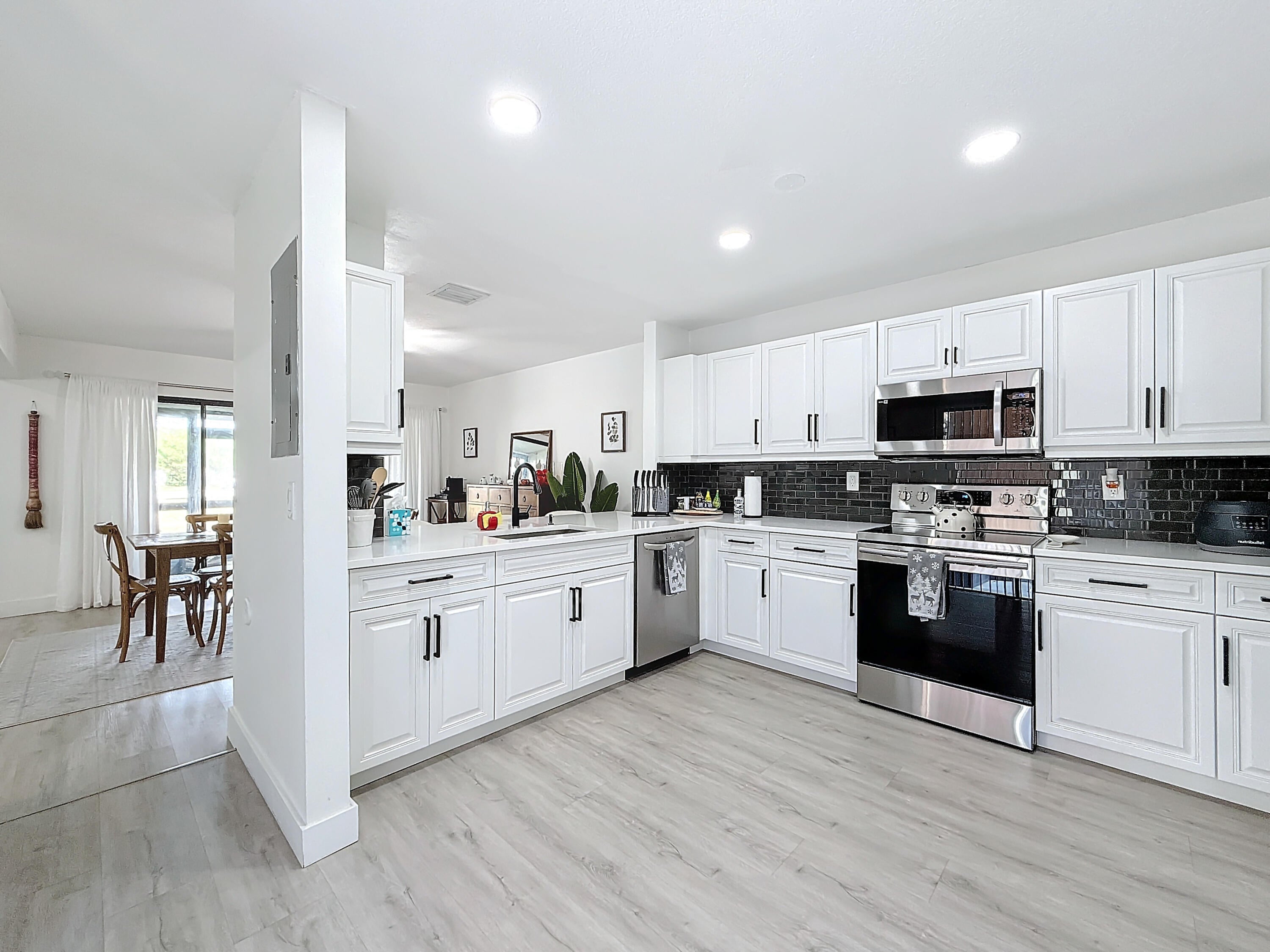This beautifully renovated 2-bedroom, 2.5-bathroom townhouse offers modern elegance and lake views. Spacious and bright, the open-concept living area features vinyl flooring, spacious kitchen with open concept.Both large bedrooms boast ample closet space and en-suite bathrooms with contemporary finishes. Step outside to your private patio to relax and take in the tranquil lakefront setting. Additional highlights include convenient in-unit laundry, modern fixtures throughout, and a prime location near shops, dining, and parks. This stunning townhouse is a must-see!