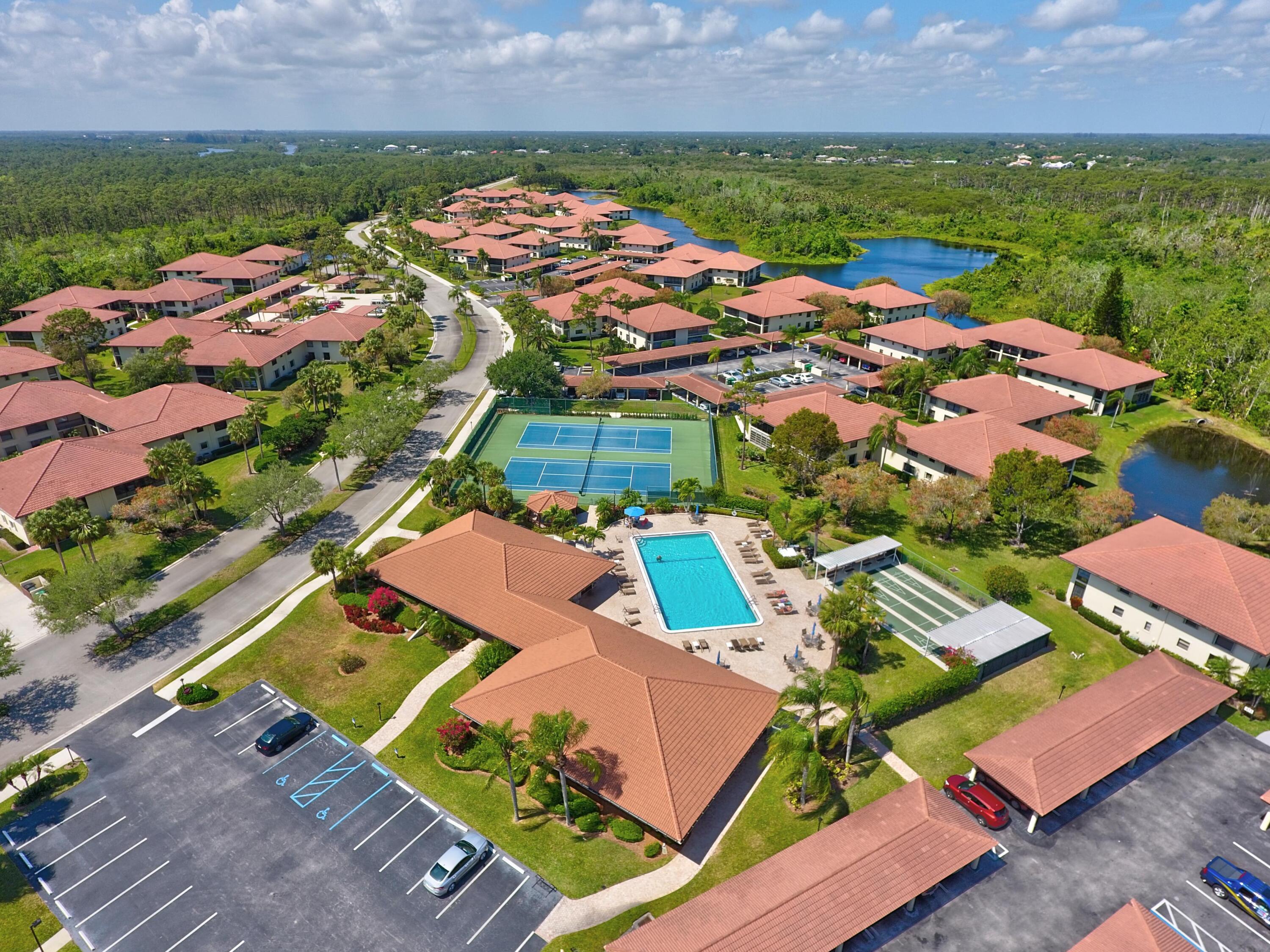 SOUTH RIVER - Nicely renovated, first floor, corner unit with preserve views. New stainless steel appliances, new flooring, and fresh paint. Move-in ready! This is your personal oasis for relaxation and enjoying the view. The pool, clubhouse, and a vibrant array of community social activities are just a short walk away. Nestled in a gated community with an on-site management office, South River is a 55+ age-restricted gem. Immaculately maintained common areas, a community pool, inviting grill areas, lakeside benches, meandering sidewalks, and diverse activities like shuffleboard, pickleball, tennis, bocce ball, and horseshoes make this community a true paradise. Additional amenities include boat and RV storage, as well as a tranquil boardwalk along the St. Lucie River.
