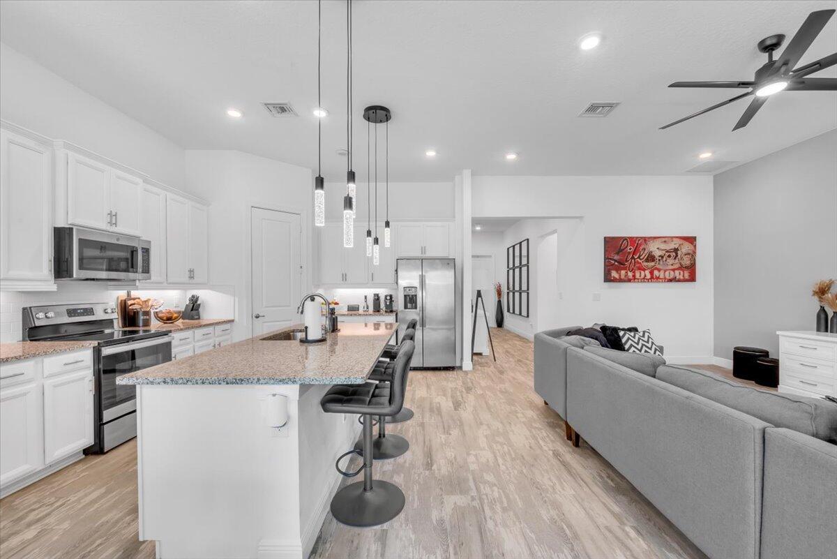 Nestled in the heart of Stuart, this stunning home offers the perfect blend of modern design and serene natural surroundings on a private cul-de-sac. Featuring 3 bedrooms, 2 bathrooms, and an open-concept floor plan, this home is designed for entertaining. The sleek modern kitchen boasts high-end finishes, stainless steel appliances, and a spacious island that connects to the bright and airy living area. Hurricane impact windows and sliding glass doors throughout bring in abundant natural light, offering picturesque views of the preserve just beyond your backyard. Located near the scenic St. Lucie River, this home provides easy access to boating, fishing, and kayaking. With its prime location, contemporary design, and tranquil setting, this home is a rare find in Stuart