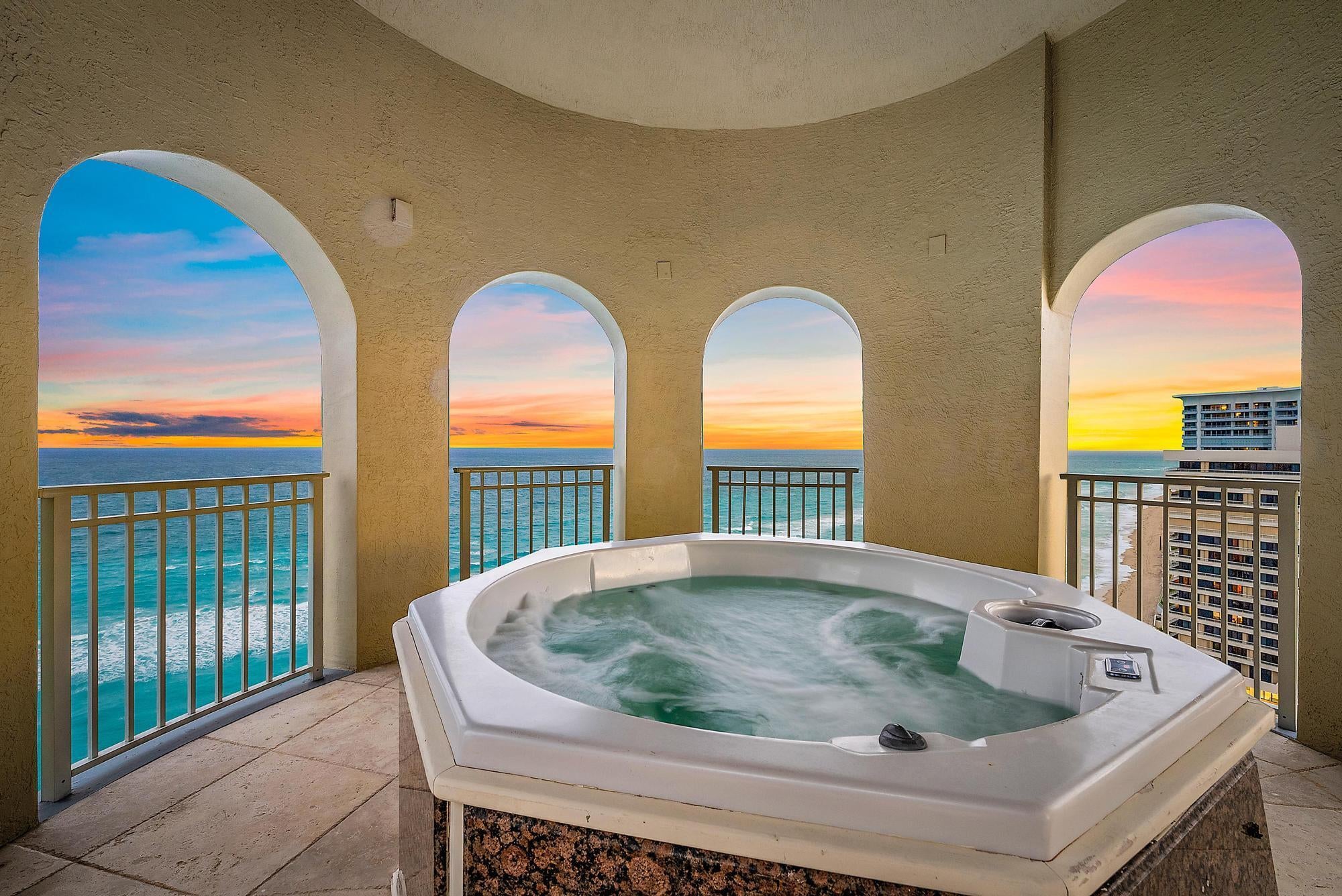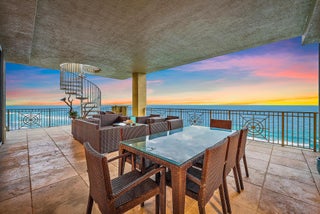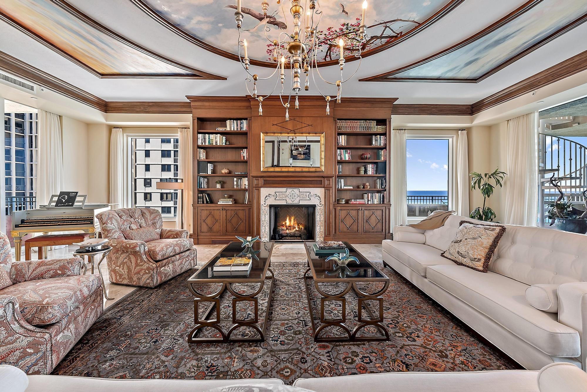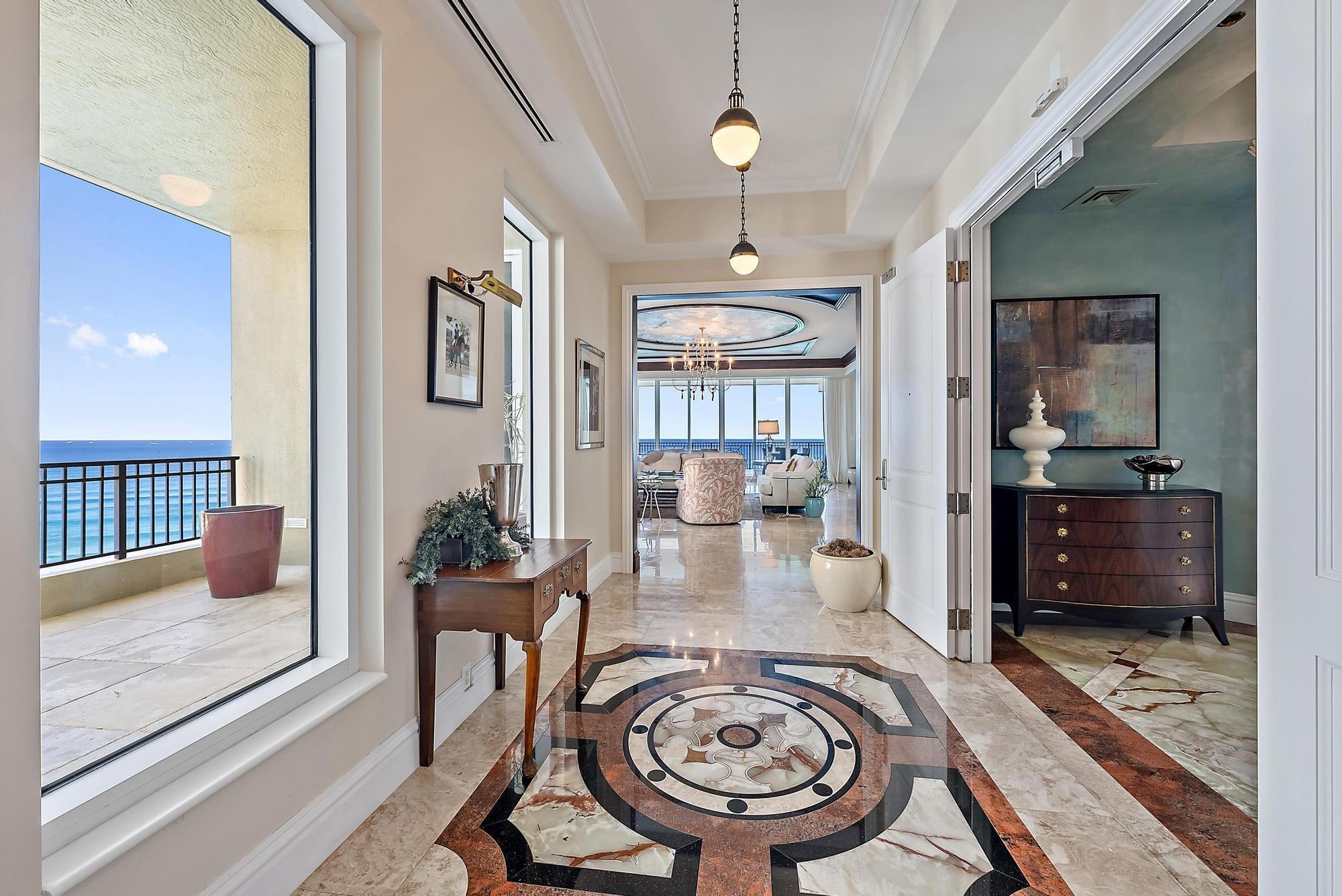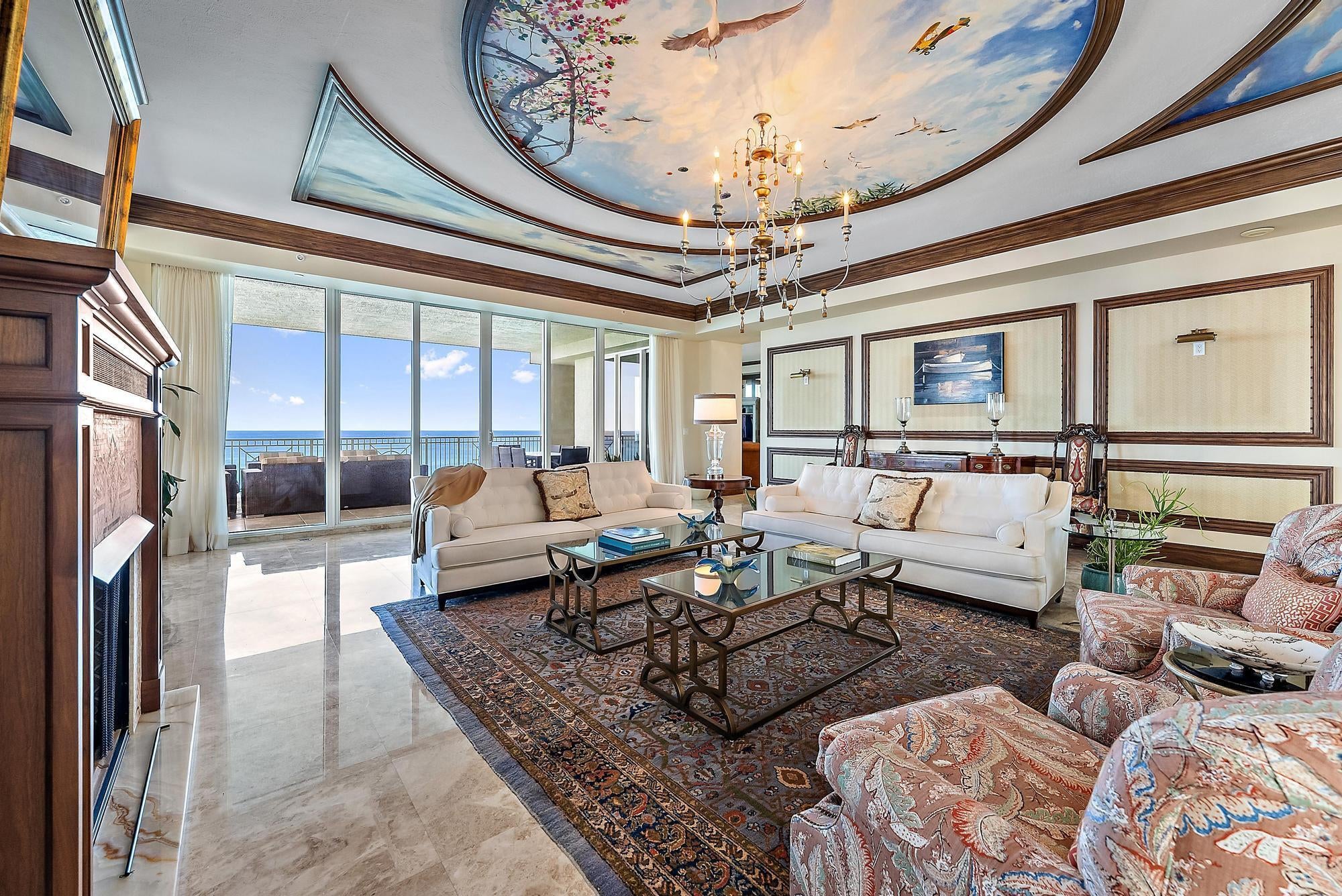 This spectacular, ONE-OF-A-KIND, luxury penthouse is unique to all other condominium units and buildings that surround it. One Singer Island, complete with full amenities and dedicated staff, serves only fifteen condominium unit owners who like to ''have it all.'' This exclusive sanctuary is designed to offer unparalleled luxury, privacy, and comfort. One of the most exceptional features of the building's amenity package is the dedicated Wine Room. Complete with two tasting tables, this room is designed for connoisseurs and casual wine lovers alike. Each unit includes a 36-bottle, temperature-controlled wine locker, ensuring that your collection is always perfectly preserved. The Owner's Club Room is an elegant space for hosting gatherings or enjoying quiet moments. It boasts importedsilk draperies, custom chandeliers, indoor and outdoor seating areas and fireplaces, creating an ambiance of sophistication and warmth. This room is the perfect setting for entertaining guests from anywhere in the world. A lap pool and jacuzzi sit on the south side of the building just off the state-of-the-art gymnasium so the owners may work out while enjoying views of the Atlantic Ocean, pool and beach. There is a concierge on duty from seven am to eleven pm to look after your needs. The 6000 square foot floor plan for PH 1201 includes three bedrooms, four and a half bathrooms, and a private office adjacent to the master bedroom. The great room is massive with a hand-painted eleven-foot ceiling and fireplace with the same beautiful ocean and beach views. There are seven terraces, each providing a unique perspective of the surrounding scenery. The expansive direct oceanfront balcony offers stunning panoramic views of the Atlantic, perfect for watching the sunrise with a morning coffee. The direct Intracoastal Waterway balcony features a jacuzzi, providing a fantastic night view ideal for relaxation and entertainment. Walk up spiral staircase from the oceanfront balcony to a huge ........ square foot patio presenting it's own jacuzzi and the renowned bonus room consisting of eight hundred square feet of air-conditioned living area with yet another fireplace, half bathroom, kitchenette and large sectional couch for watching your favorite sports. One Singer Island Penthouse is not just a residence: it's an experience. With its unique design, luxurious features, and unparalleled amenities, it stands out as a premier choice for those seeking the pinnacle of oceanfront living. Whether you are entertaining guests or enjoying a tranquil evening at home, this penthouse offers everything you need to live a life of luxury and elegance.