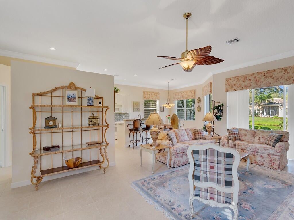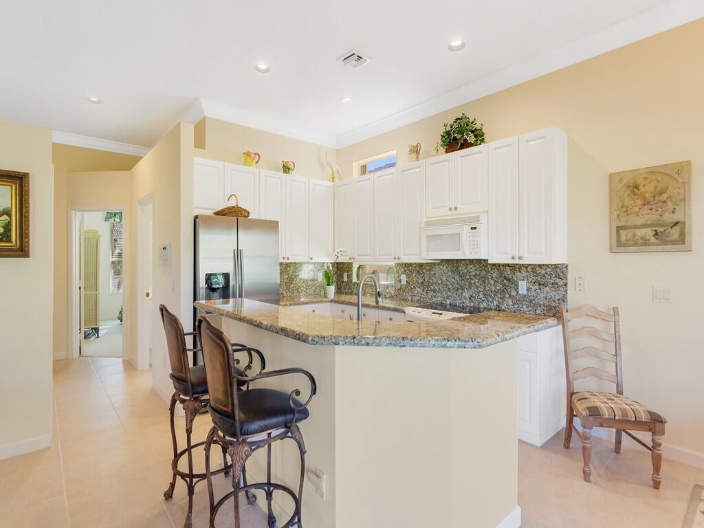 WOW! $25,000 REDUCTION SO NOW ITS THE LOWEST PRICE ON THE ISLAND! Welcome to this lakefront 2 bedroom +den in desirable Old Orchid. 1,700+ Square feet of living. Kitchen with large granite island & open to great room. 2023 AC & accordion shutters. Security gate, tennis court, heated community pool & workout room complete the neighborhood nestled between the historic jungle trail, the Indian river & the Atlantic Ocean!