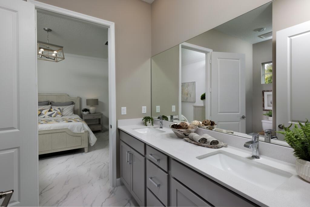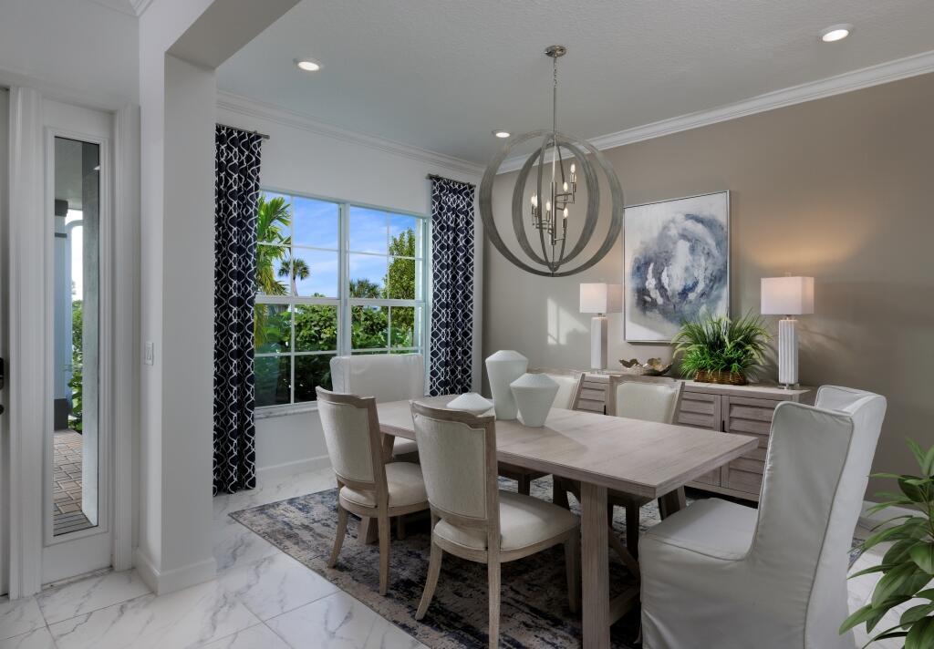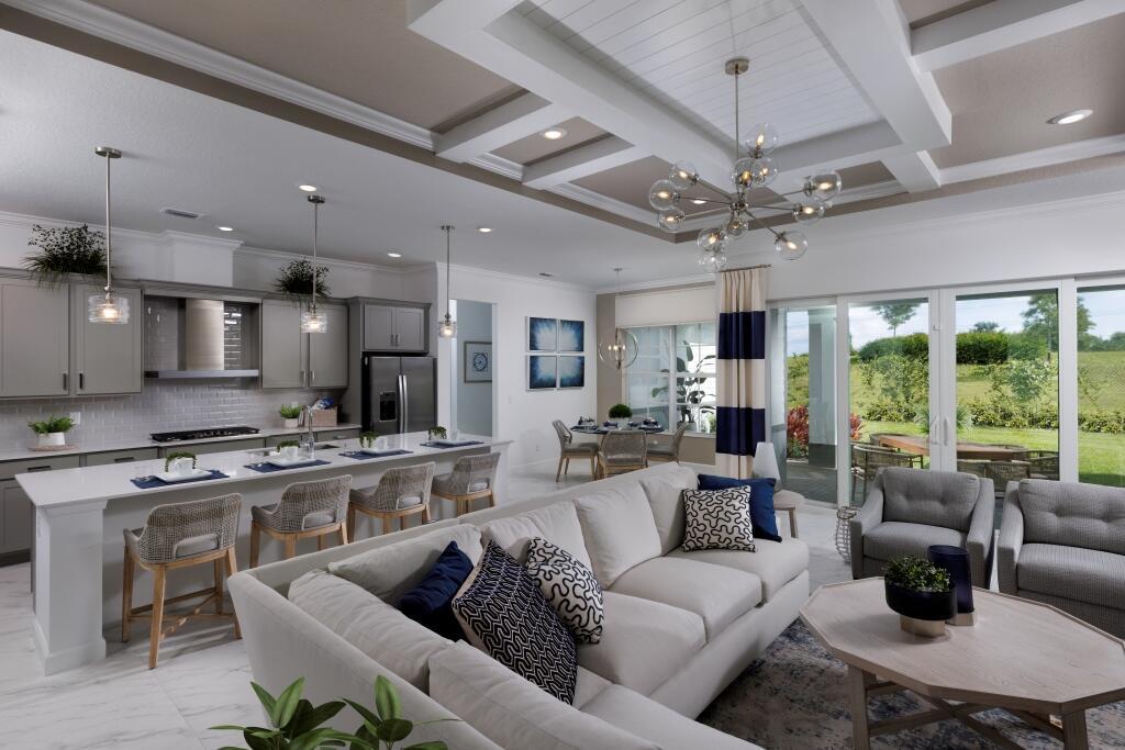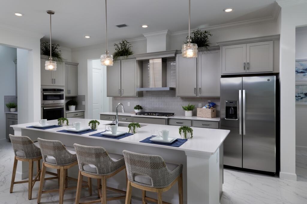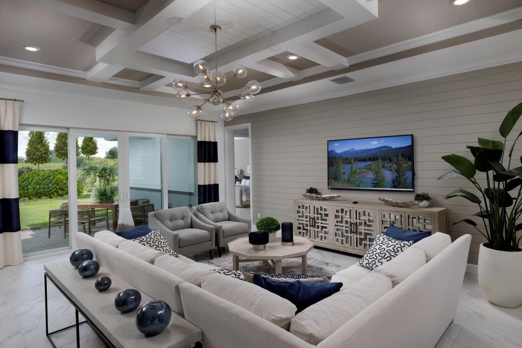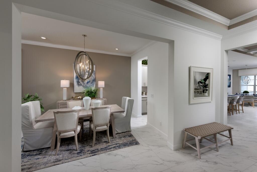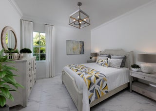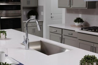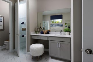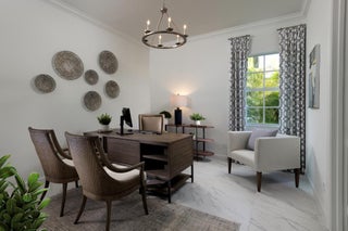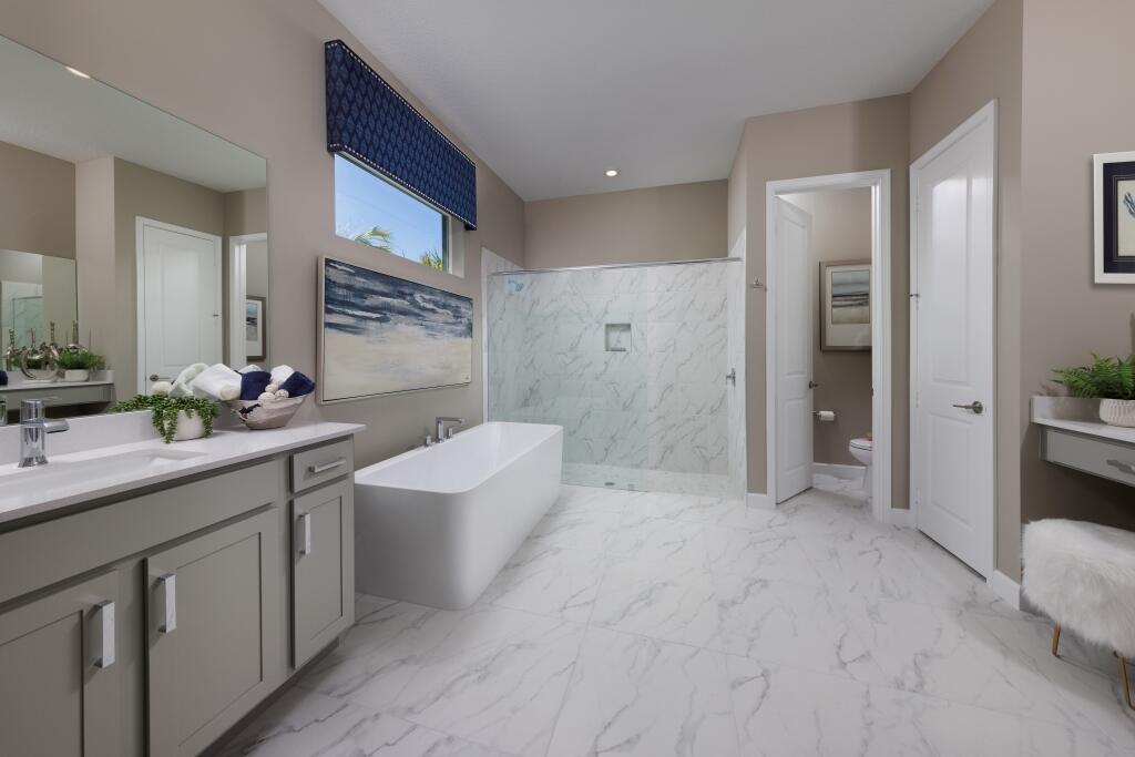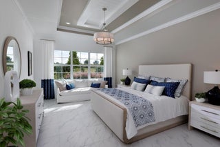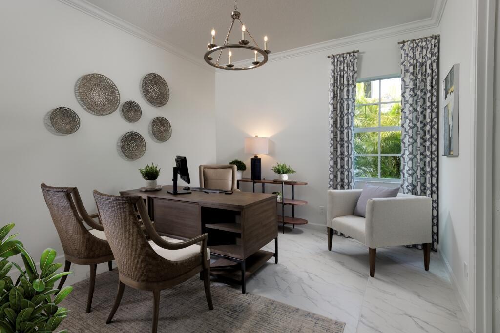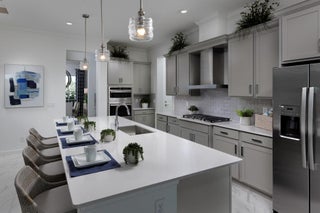 This single-story, 4-bedroom, 3.5-bath model home is designed for comfort and spacious living. I is designed for comfort and spacious living. It includes a convenient study, a formal dining room, and an open-concept great room that opens to a large covered patio, ideal for gatherings. The kitchen features a gas stovetop, quartz countertops, and stainless steel appliances. The luxurious owner's suite boasts a Roman tub and separate shower. There are three additional spacious bedrooms, three full baths, and a convenient half bath, perfect for accommodating family and guests. The home is equipped with a Ring doorbell system for added security and includes a two-bay garage and an additional one-bay garage at the front.Furniture not included.