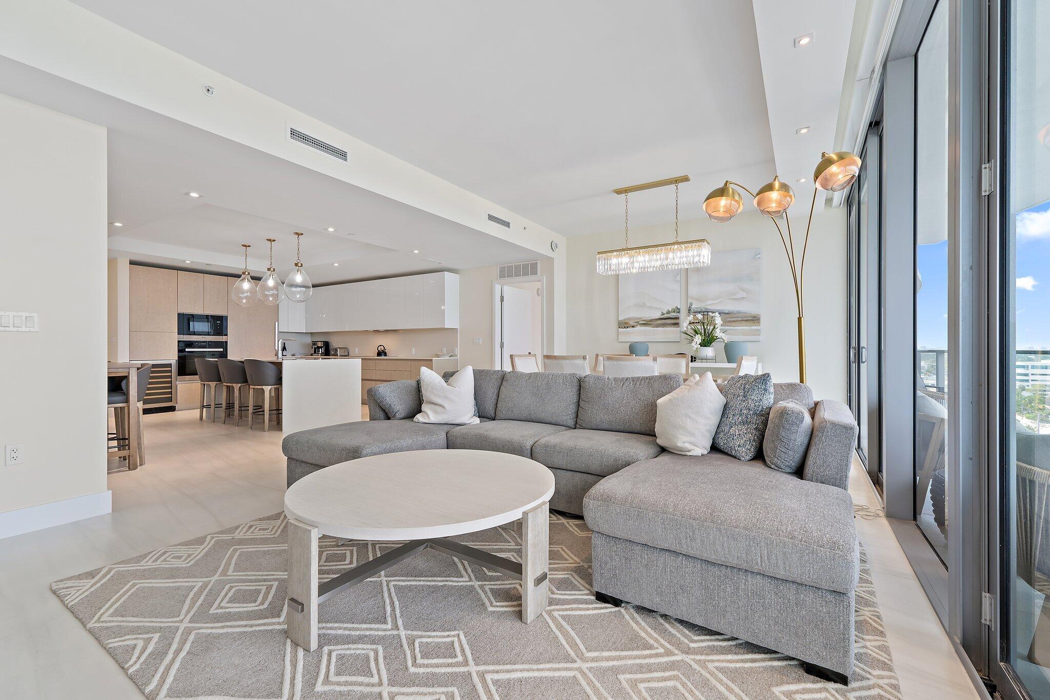 Ultimate luxury awaits on the 9th floor at Amrit Ocean Resort & Residences, a brand-new, health and wellness-focused resort on Singer Island. Now available for annual or seasonal rentals, this fully furnished, turnkey 2-bedroom, 2-bathroom residence offers breathtaking Intracoastal and ocean views from every room. This luxury oceanfront condo features floor-to-ceiling glass doors, an expansive 350 sq. ft. terrace, and an open-concept layout designed for seamless indoor-outdoor living. Enjoy stunning sunsets from your private terrace, creating the perfect setting for relaxation and entertaining.The gourmet European kitchen is equipped with custom cabinetry, quartz countertops, and premium Miele appliances, including a wine refrigerator.The spacious primary suite serves as a private retreat with a spa-inspired en-suite bathroom, featuring a soaking tub, double vanity, and separate shower. The guest bedroom includes a Murphy bed and workspace, providing flexibility for guests or remote work, while the living area offers a stylish fireplace with an oceanfront backdrop. Residents enjoy unparalleled resort-style amenities, including two oceanfront pools, a hot tub, a state-of-the-art fitness center, a yoga terrace, and a full-service spa with a salt room. Additional amenities include a resident lounge, billiards, direct beach access with chair and towel service, valet parking, and on-site dining at Tula restaurant and Lala lounge. Conveniently located near PGA, Carmines Gourmet Market, Publix, and MacArthur State Park, PBIA Airport this property offers easy access to premier shopping, dining, and outdoor activities. Available for seasonal, or annual rentals, with a 1-month minimum stay. Resort fee and valet parking apply for short-term stays. Experience the ultimate luxury wellness lifestyle in the Palm Beaches at Amrit Ocean Resort.
