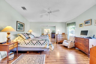 Waterfront! This former model home has 2 bedrooms, den, a custom kitchen with crown molding, island, granite counters and an interior laundry room. The sunroom, overlooking the water view, has been updated with new flooring. You will enjoy the blend of comfort & leisure. And, in this 55+vibrant community, residents enjoy a wealth of amenities, including cafe, theatre, golf, tennis, pickle ball, swimming and clubs that cater to diverse interests. There's truly something for everyone in Savanna Club with its 3 clubhouses, pools, fitness centers and so many activities. Located on a cul-de-sac, wider driveway, hurricane panels, new roof 2018, HVAC 2024. Land Lease. Seller offers $3000 credit to Buyer at closing.