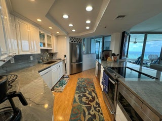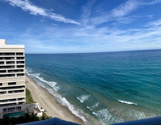 Sensational 15th flr 2BR-condo overlooking the crystal blue waters of the Atlantic Ocean & pristine beaches of Singer Island. Open floor plan modernized w/quartzite counters, new SS appliances, wine cooler, ice machine, private washer & dryer, plank flooring & private balcony w/panoramic views of the morning sunrise. Split floor plan offers versatility & privacy. The Corniche has been meticulously maintained & updated. The Corniche amenities include relaxing garden area, oceanfront pool area & summer kitchen with gas grills. Further enjoy the full-size tennis court, card rooms, billiards room, fitness center (his & her saunas), spacious owner's lounge with bar, kitchen & big screen TV. Covered parking. 24-hour front desk attendant. Recently renovated, open flr plan, fabulous ocean view.3-month minimum rental required.