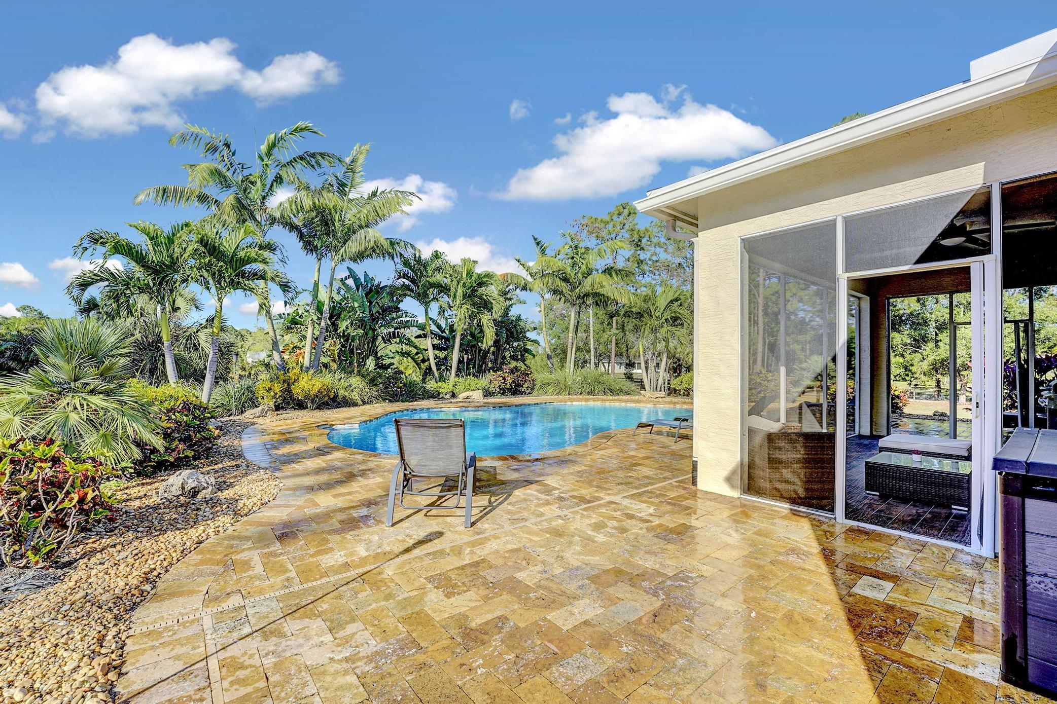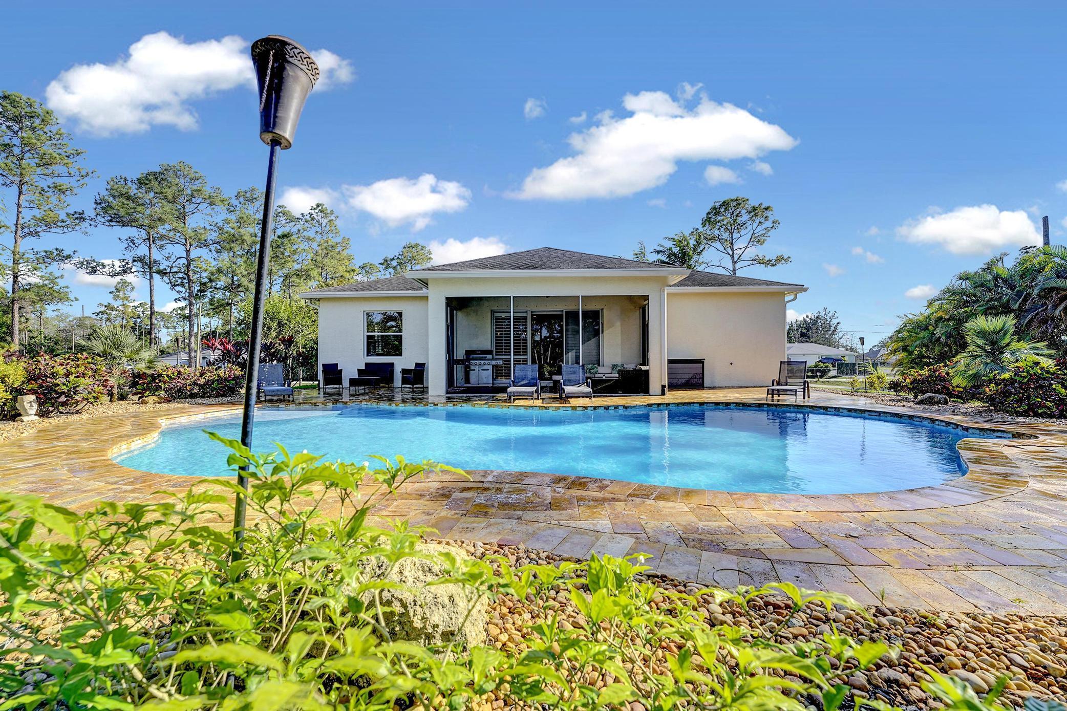 YOU DEFINITELY WANT TO BE SETTLED IN YOUR NEW HOUSE (THIS HOUSE ) BEFORE THE HOLIDAYS APPROACH **Welcome to 17111 40th Run N, a beautifully crafted home built in 2016 by renowned Chris Allen Homes. Nestled on an OVERSIZED lot, this property offers the perfect blend of luxury, comfort, and convenience, making it an ideal retreat for families and entertainers alike.This spacious 4-bedroom, 2-bathroom home boasts nearly 2,100 square feet of living space under air, featuring an open-concept design with a split floor plan that maximizes both privacy and functionality.With 10-foot ceilings, the home feels airy and inviting, while elegant upgrades such as granite countertops, white shaker cabinets, and under-cabinet LED lighting create a modern and sophisticated atmosphere. Step outside to discover your personal paradise! The 2020 Saltwater freeform pool, measuring 20 feet wide by 38 feet long, is perfect for relaxation and recreation. Enjoy sun-soaked days on the 6-foot sun shelf with LED lighting, or entertain guests on the travertine pool deck. The screened-in patio offers a comfortable space to unwind while enjoying views of the lush landscaping Additional features include plantation shutters in the living room, hurricane shutters for peace of mind, a reverse osmosis water treatment system, and a water softener system, which also includes a 700-gallon holding tank. The epoxy garage floor adds a touch of elegance to the spacious 2-car garage. With no HOA, you have the freedom to enjoy your property as you wish. Bring the horses, boats, RVs, Trailers, golf carts, and/or the commercial vehicles/trucks. The OVERSIZED lot is big enough to add a mother-in-law suite, workshop, or horse stables. Located right next to the vibrant new WestLake Community, you'll have easy access to an array of restaurants, shops, and recreational activities. Don't miss your chance to own this exceptional 2016 home in Loxahatchee, which will give you very cheap homeowners insurance! Schedule a showing today and experience the perfect blend of luxury and lifestyle.