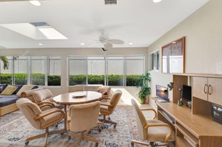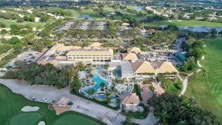 Welcome to this expansive single-family home in the prestigious Bristol community of Hunters Run Country Club. Ideally situated on the golf course, this residence offers breathtaking panoramic views & an abundance of natural light. Enter through elegant double doors into a bright & airy space featuring soaring ceilings & white tile flooring throughout the living areas. The spacious eat-in kitchen, complete w/ a charming breakfast area, is perfect for casual dining. Designed for comfort, the home boasts two-zone air conditioning , Step out from the primary bedroom to your own private oasis, where an elegant in-ground spa awaits. Perfectly positioned to offer stunning golf course views, this serene retreat is ideal for unwinding after a long day.