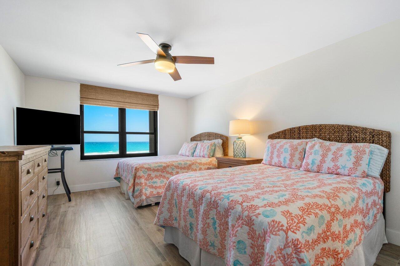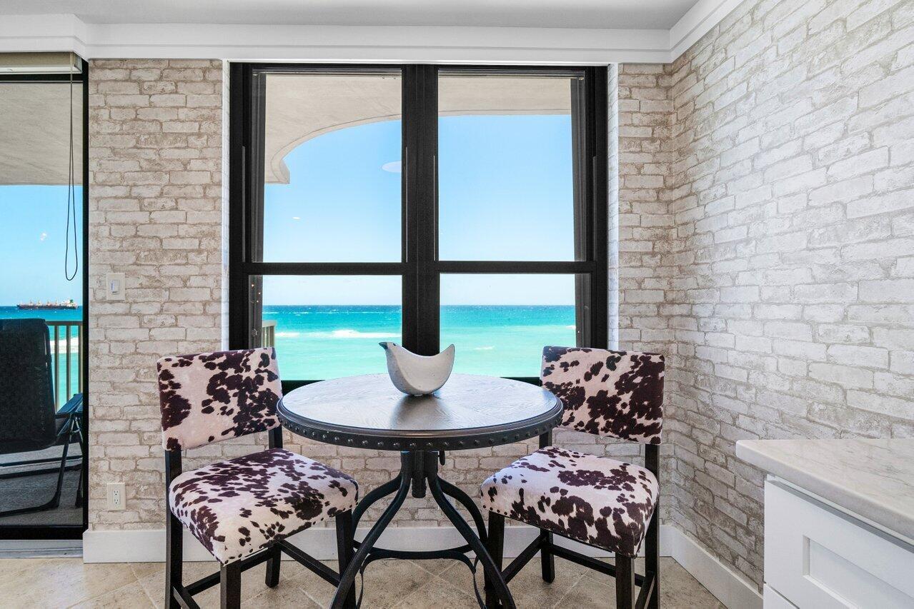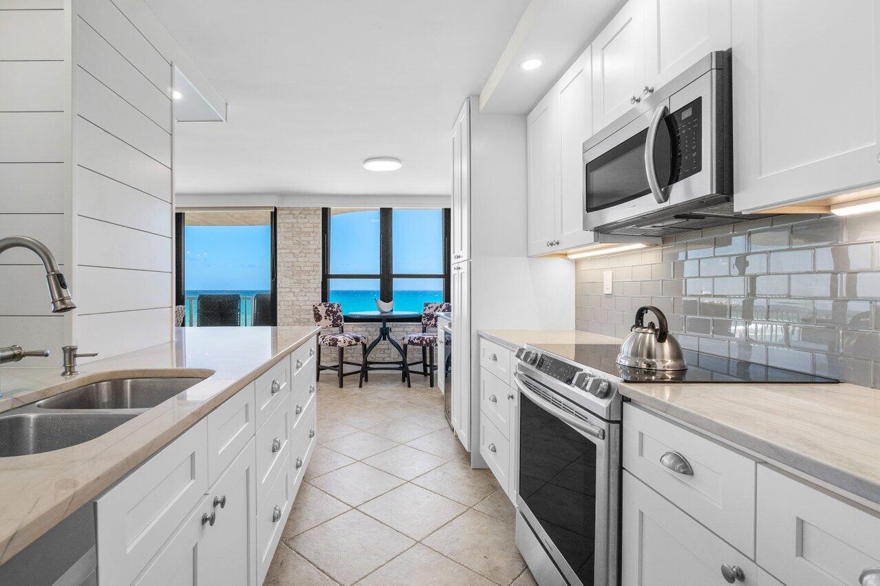Beautiful & completely remodeled oceanfront corner unit w 2 BR / 2BA, crown molding, diagonal tile floors in living areas, new impact glass, renovated just 4 years ago. Bright & open, fantastic ocean views from all living areas. Close to John D MacArthur Beach State Park & many restaurants on PGA Blvd. Rate includes basic cable, wifi, & electric up to $150.
