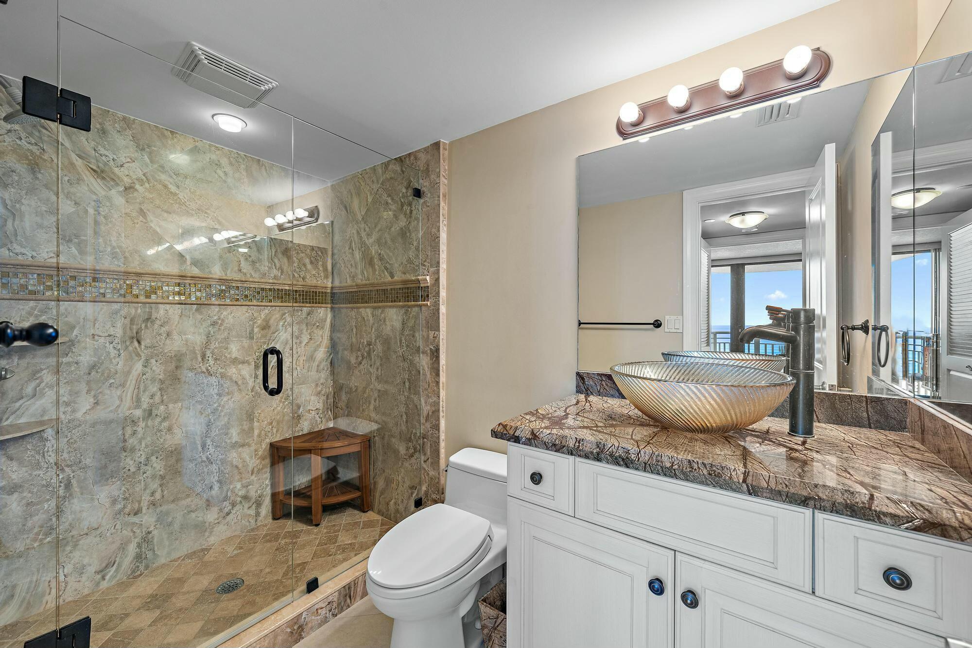 Oceanfront views with wide balcony featuring impact glass sliders, tile throughout, granite counter-tops in the kitchen and baths, washer & dryer inside the unit. Having guests? Tiara has you covered with a bedroom guest suite available for residents' guests. A stunning 43 stories high, The Tiara is the tallest development on Singer Island, featuring breathtaking ocean and Intracoastal views. Although originally built in 1977, it has been completely renovated to offer its residents top-of-the-line amenities, including a resort-style pool, sauna, tennis and pickle ball courts, as well as ladies' and gentlemen's fitness centers and spas, 400 feet of beautiful white sand beach, 24-hour concierge and optional valet parking and covered parking. Residents can enjoy a casual oceanfront breakfastor lunch and drink at the poolside Gazebo restaurant or visit The Marquis Room on the 43rd floor for dinner, drinks, and incomparable views! Singer Island is conveniently located and offers an abundance of local amenities including nearby shopping at the luxurious Gardens Mall and world-renowned Worth Avenue, golfing at the North Palm Beach Country Club, PGA National, Abacoa Golf Club, in addition to a plethora of water sports such as world-class snorkeling, scuba diving, sailing, jet-skiing, kayaking, paddle-boarding, and some of the best fishing in South Florida, all with easy access to Palm Beach International Airport!