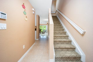Beautifully updated home overlooking a nature preserve in the sought-after community of Lexington Lakes. Conveniently located close to dining, shopping, beaches, golf, I-95 and the turnpike. The owner's pride shows through with all the upgrades! The home features a new kitchen with upgraded white cabinets, high-end granite countertops and backsplash, new appliances, and sink. Step into the living area and take in the luxurious herringbone pattern tile and quality window treatment, which have been added throughout. Relax in the meticulously updated master bath with oversized walk-in shower. Additional upgrades include new AC, washer/dryer, accordion shutters, upgraded electrical, upstairs flooring, recessed lighting, knock-down and paint. The roof was replaced in 2025!