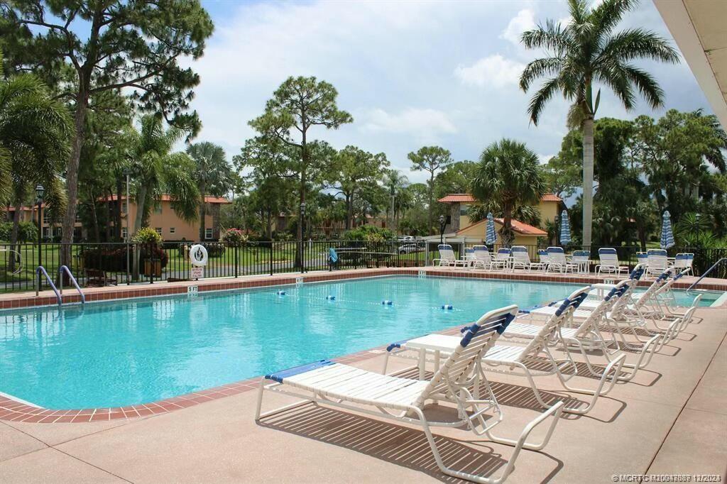 2 bedroom 1 bath 1st floor unit that overlooks the amenities and the golf course. Furnished and ready to move-into. Kitchen with lots of cabinets. Master with . Full bath has tub/shower combination. UNLIMITED GOLF. Close to the pool, putting green, picnic area, bocce, shuffleboard, library and one of the two clubhouses. 2nd clubhouse overlooks the St Lucie River with 2 fishing piers and storage area for canoe/kayak upon availability. Water, sewer, cable, wifi are included. No rentals for the first 3 years. Call for details.