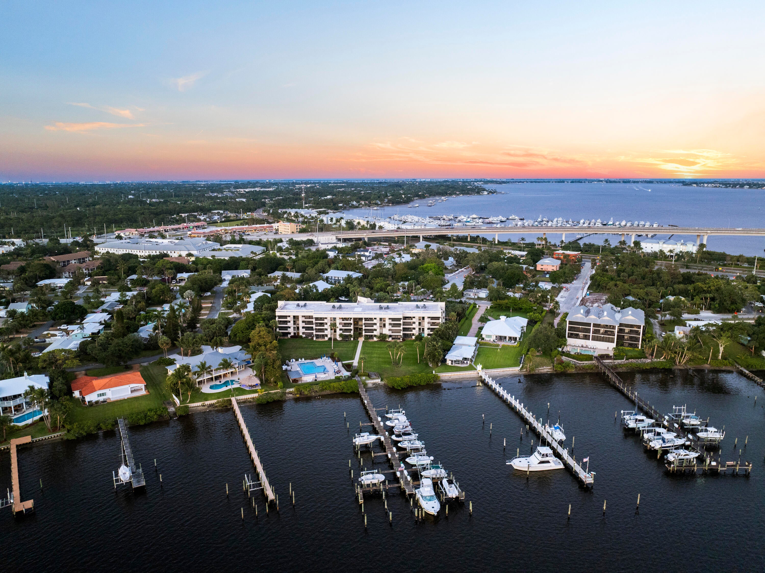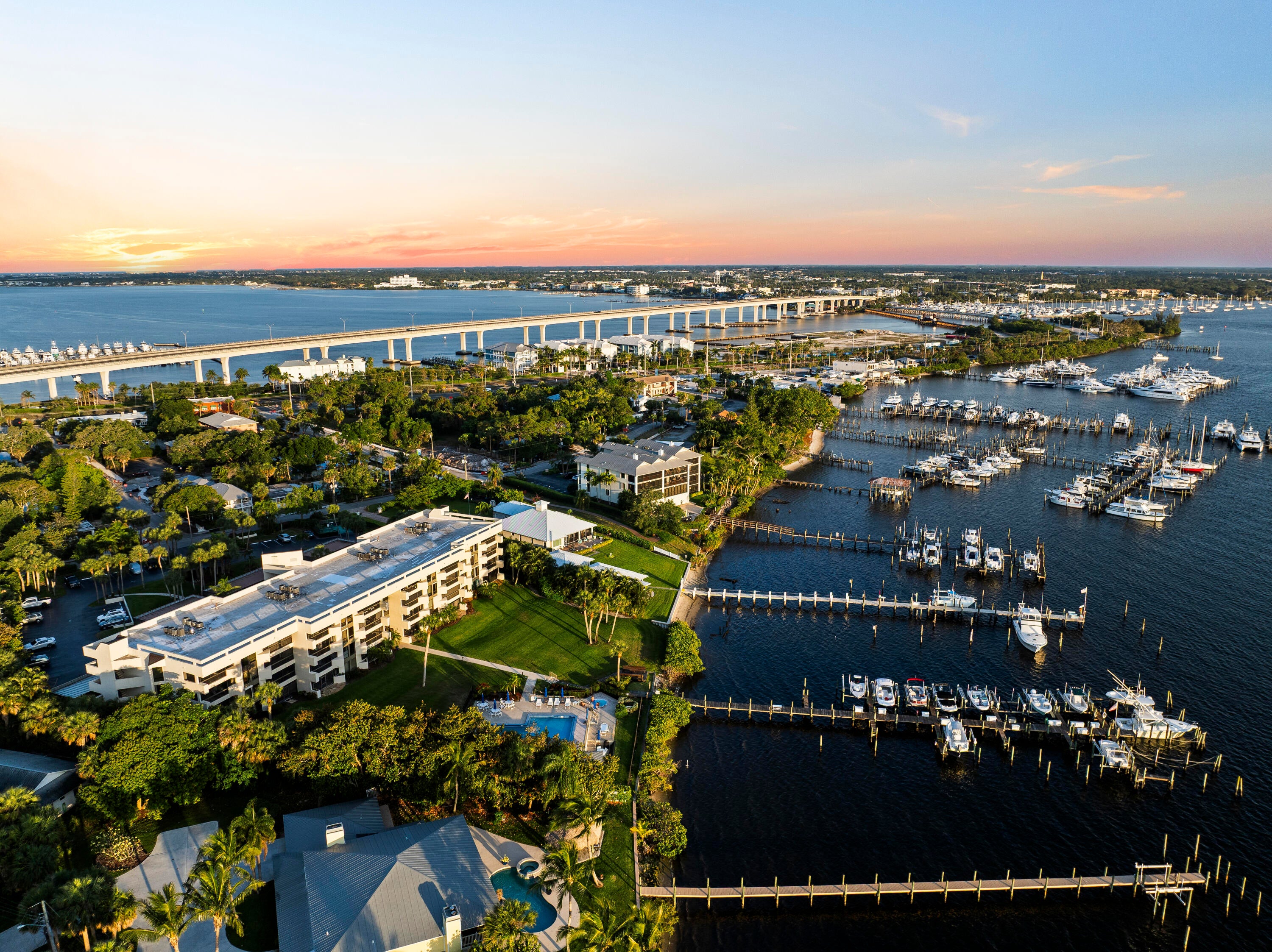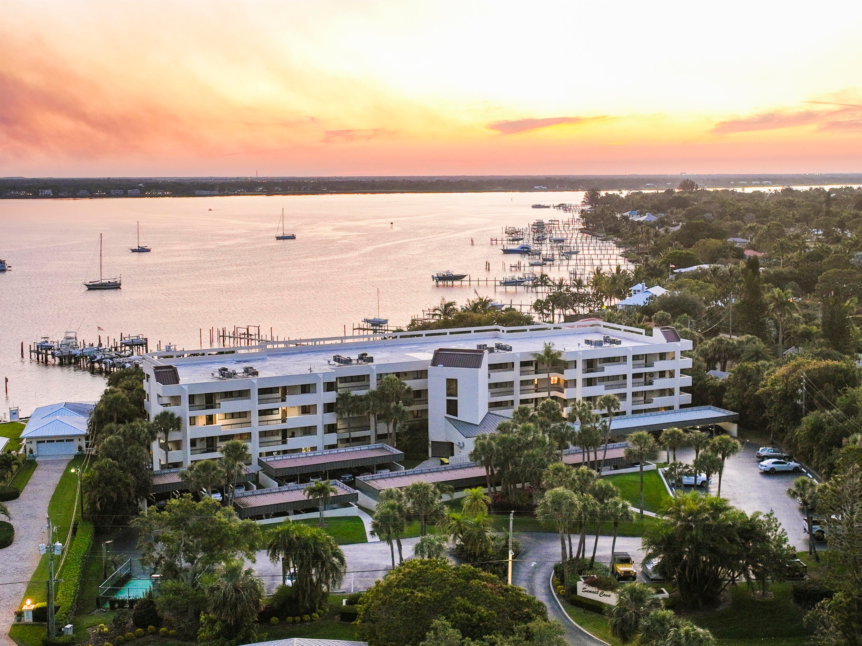 Calling all boaters and sunset lovers...Discover an exceptional opportunity to own a piece of paradise at Sunset Cove. This beautifully renovated third-floor corner unit offers ultra privacy, no neighbors beside you and breathtaking sunset views from your private screened balcony. This two-bedroom condo features a spa-like, fully updated master bath, a renovated kitchen with custom antique doors, newer AC & impact windows. Built with solid concrete construction, this pet-friendly condo ensures peace and tranquility. Perfect for boating enthusiasts, enjoy direct water & ocean access from the community marina with boat slips available for boats up to 38 feet. The community boasts a waterfront pool, covered parking, and guest spaces.All this, in an ideal location- just a short walk to Downtown Stuart where you'll find premier dining, shopping, and entertainment. Don't miss this rare opportunity at Sunset Coveschedule your private tour today!