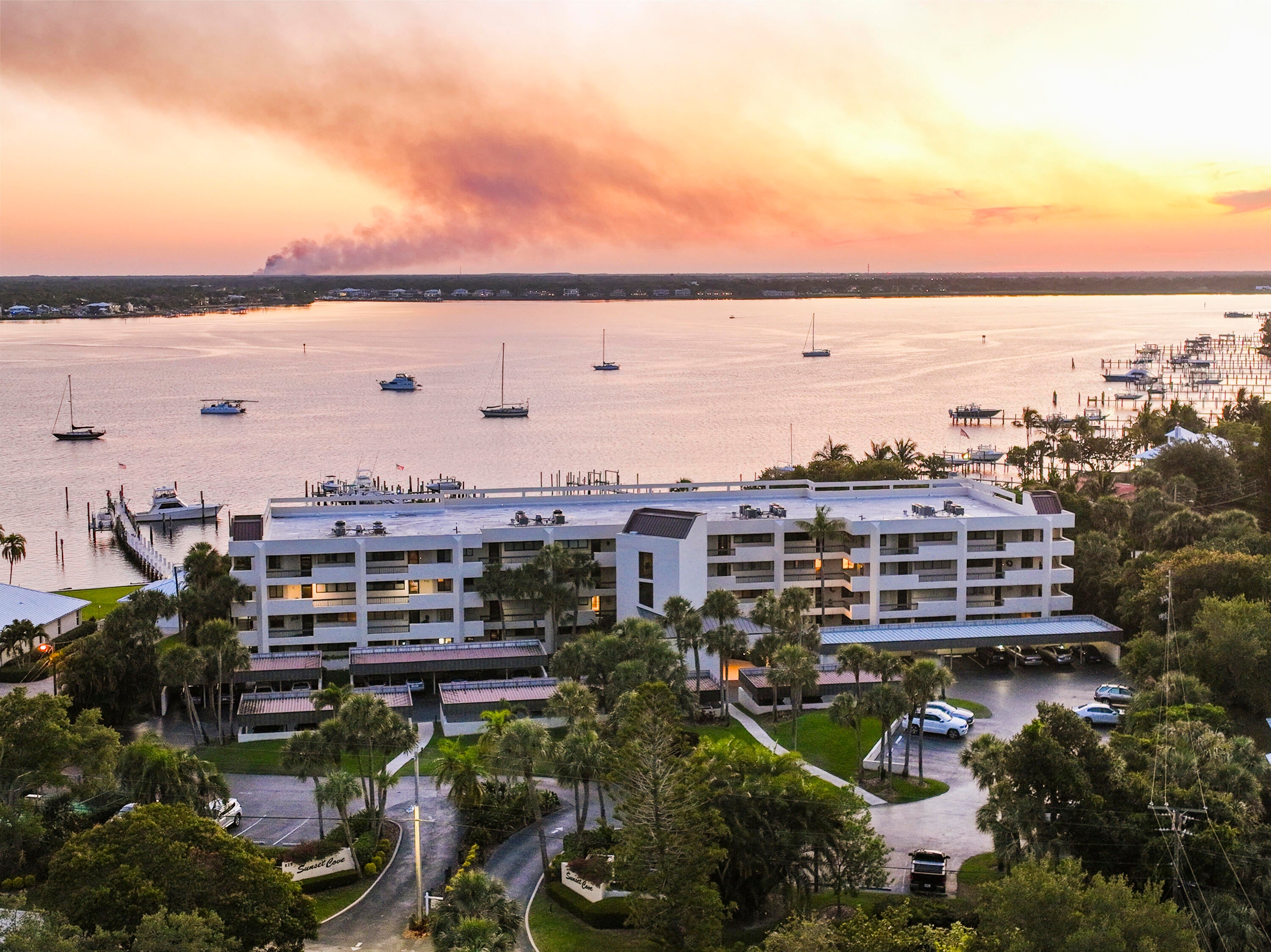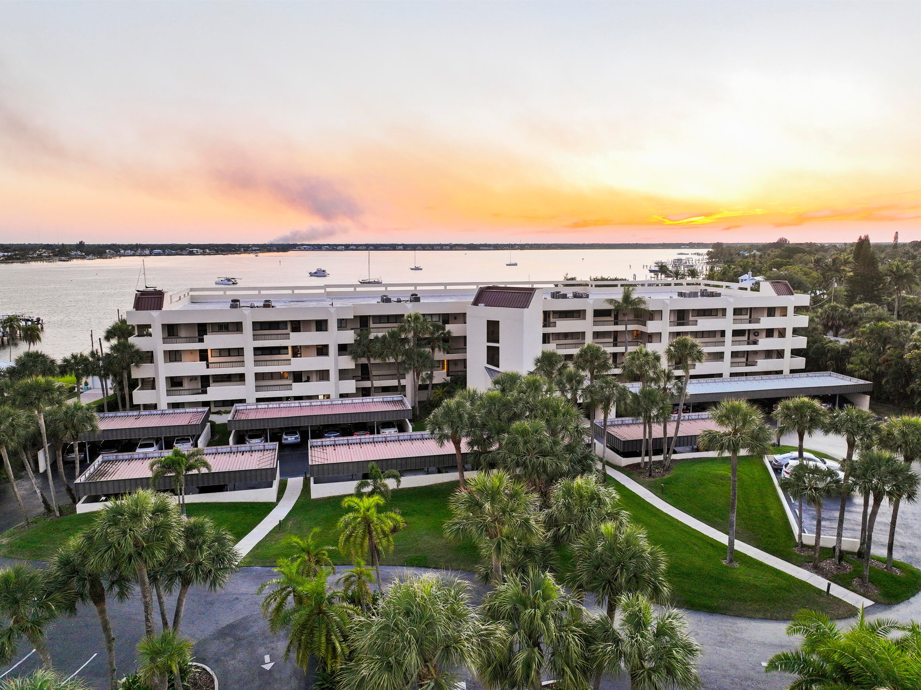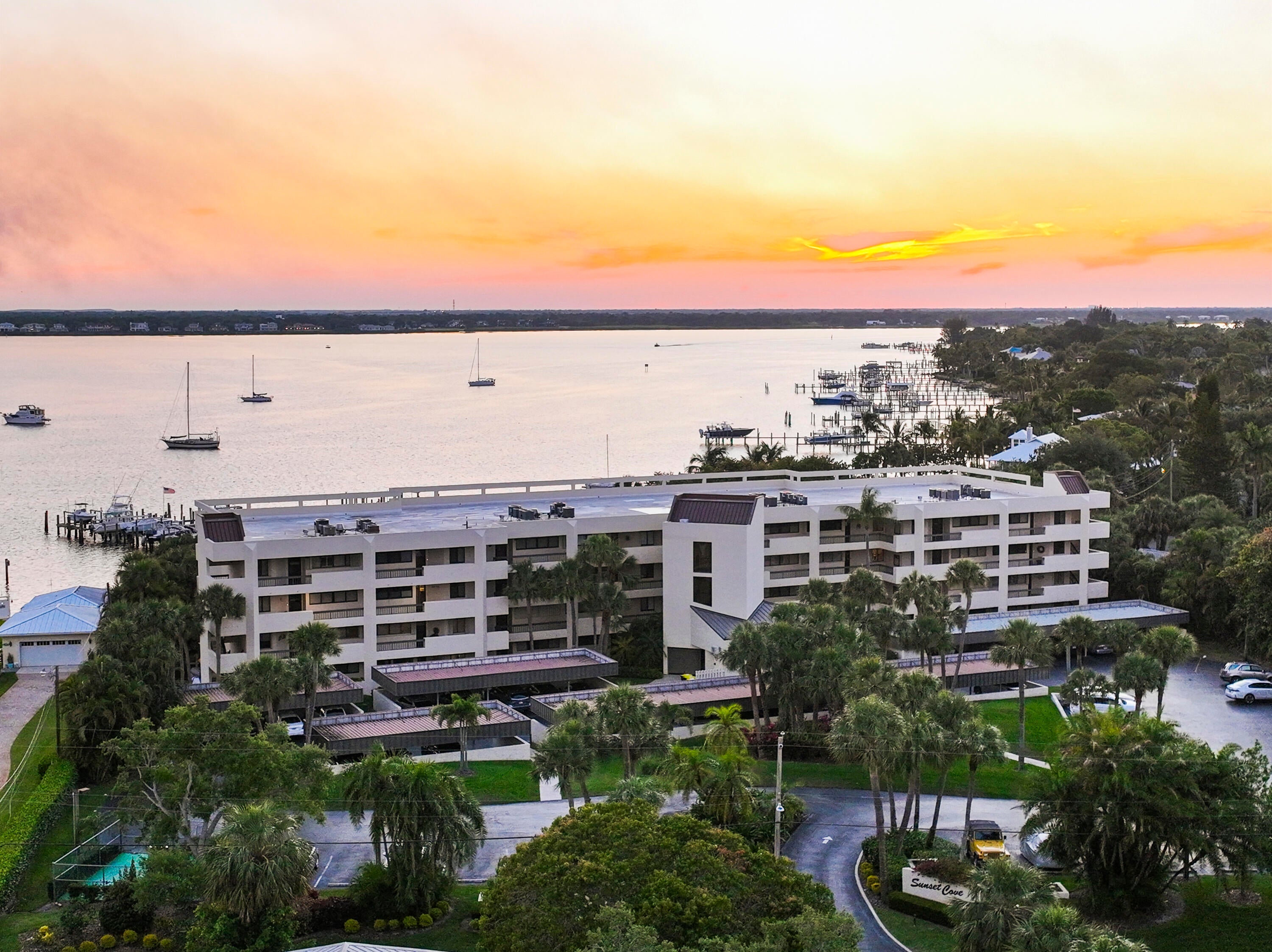 Calling all boaters and sunset lovers...Discover an exceptional opportunity to own a piece of paradise at Sunset Cove. This beautifully renovated third-floor corner unit offers ultra privacy, no neighbors beside you and breathtaking sunset views from your private screened balcony. This two-bedroom condo features a spa-like, fully updated master bath, a renovated kitchen with custom antique doors, newer AC & impact windows. Built with solid concrete construction, this pet-friendly condo ensures peace and tranquility. Perfect for boating enthusiasts, enjoy direct water & ocean access from the community marina with boat slips available for boats up to 38 feet. The community boasts a waterfront pool, covered parking, and guest spaces.All this, in an ideal location- just a short walk to Downtown Stuart where you'll find premier dining, shopping, and entertainment. Don't miss this rare opportunity at Sunset Coveschedule your private tour today!