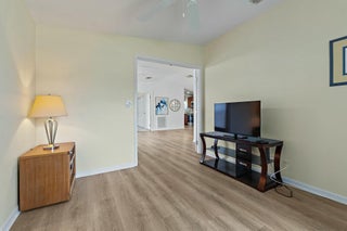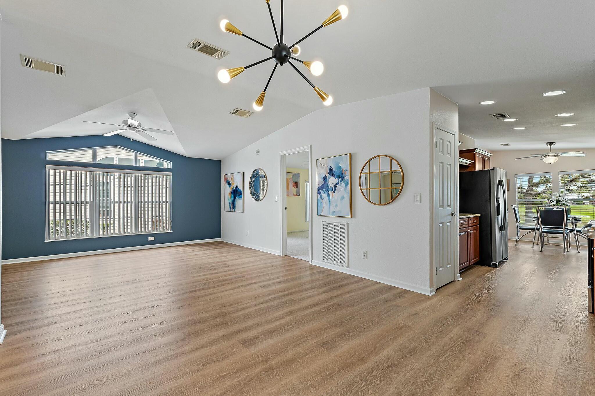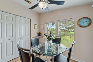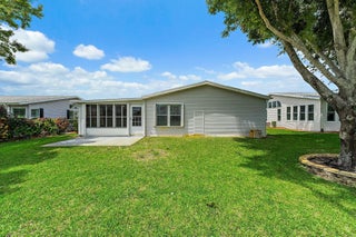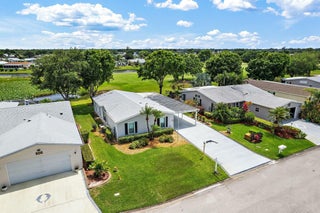 Savanna Club 55+ community~Soak up the sunrises, sunsets and privacy in quiet cul-de-sac lot that fronts the golf course and nature preserve. Home features 2 spacious BR's, 2 BA's, + an office/den or 3rd bedroom in a desirable split plan layout. Home is move in ready with updates that include newer wood cabinetry kitchen with soft close doors and drawers, granite counter tops, stone backsplash accents, 12/2024 Stainless Steel appliances, wood lam. flooring, 2020 roof, 12/2023 A/C, new lighting fixtures, modernized faucets, all new electrical outlet upgrades and an enclosed lanai for year round enjoyment. Home is fully equipped with accordion shutters, a decor drive for ease in maintenance and a cost saver irrigation well. All measurements are approximate, buyer to verify. Land Lease