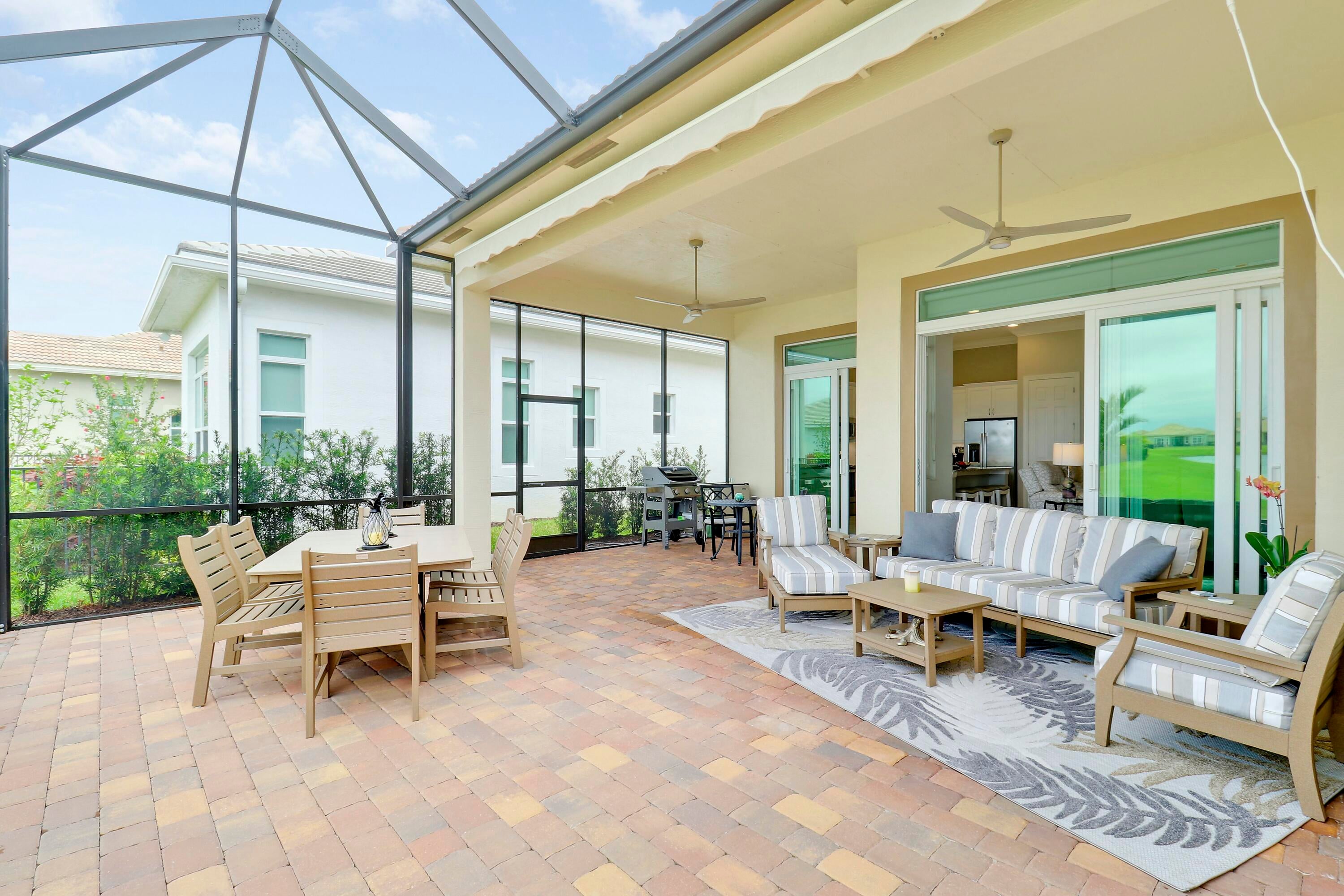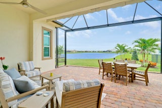 SELLER SAYS SELL! $25K DISCOUNT TO BUYER IF CLOSED BY 12/15/25. THIS 3BDRM/+DEN/3BA/2CG home in PGA Verano won't disappoint! Brimming with upgrades, this popular 'Siena' plan offers beautiful tile flooring t/o main living areas, high coffered ceilings, crown molding, refreshed neutral interior paint, designer lighting/fans, custom blinds in great room & primary suite and IMPACT GLASS windows & doors! Dream kitchen is truly inspiring w/ white cabinets, undermount lighting/dimmers, granite counters, breakfast bar & SS appliances. Primary Suite has tranquil views of the lake, a spa-like ensuite w/ dual sinks, walk-in frameless shower & large walk-in closet. Additional bedrooms for guests! Enjoy tropical breezes & LAKE views all while unwinding on your extended screened lanai with awning!Verano is an amenity rich community with a 27 court pickleball facility, walking paths, indoor and outdoor pools, multiple fitness centers, sauna, dog park, resistance pool, e-gym, tennis courts, social clubhouse and so much more! HOA dues include basic cable, internet, alarm monitoring, lawn care, common area maintenance and access to amenity centers. For avid golfers there is a cart path leading to the PGA Golf Club (membership is optional and availability varies). Don't miss out on this fantastic opportunity! Call today and start enjoying all that Florida living has to offer!