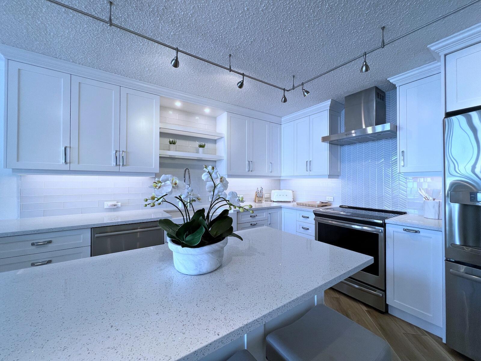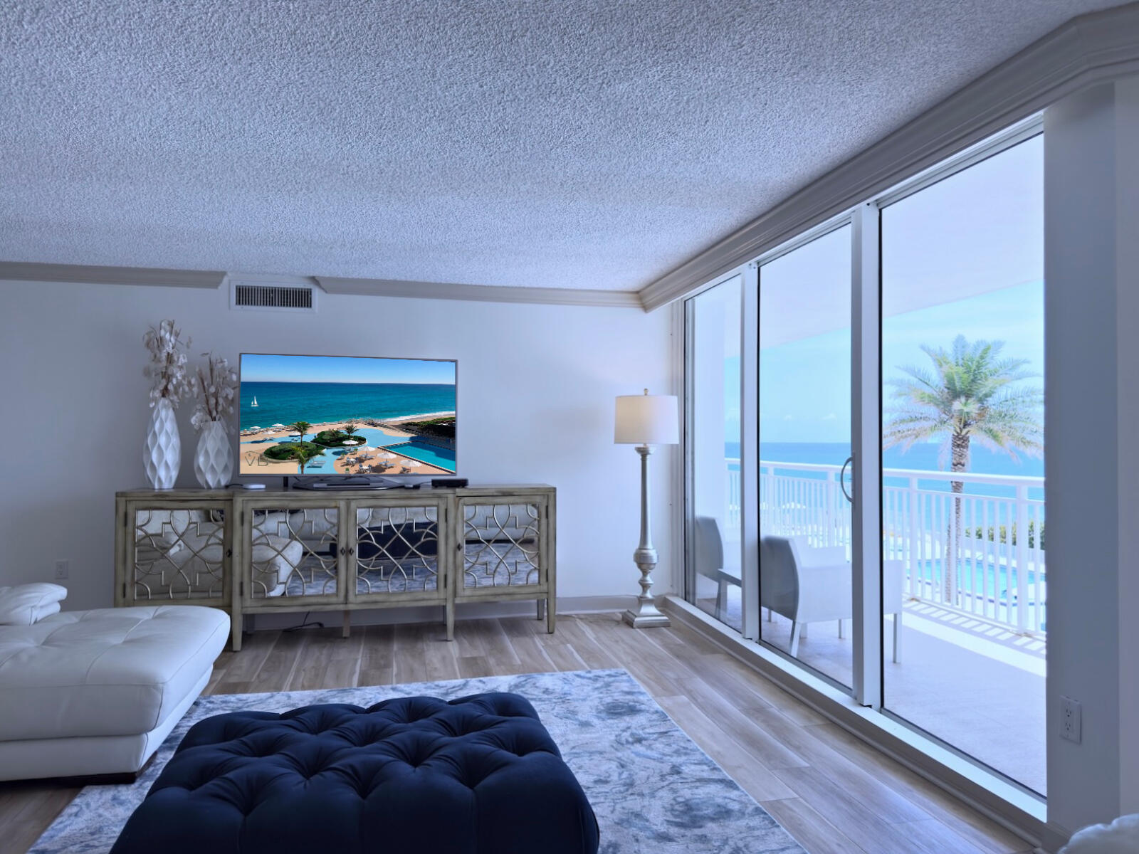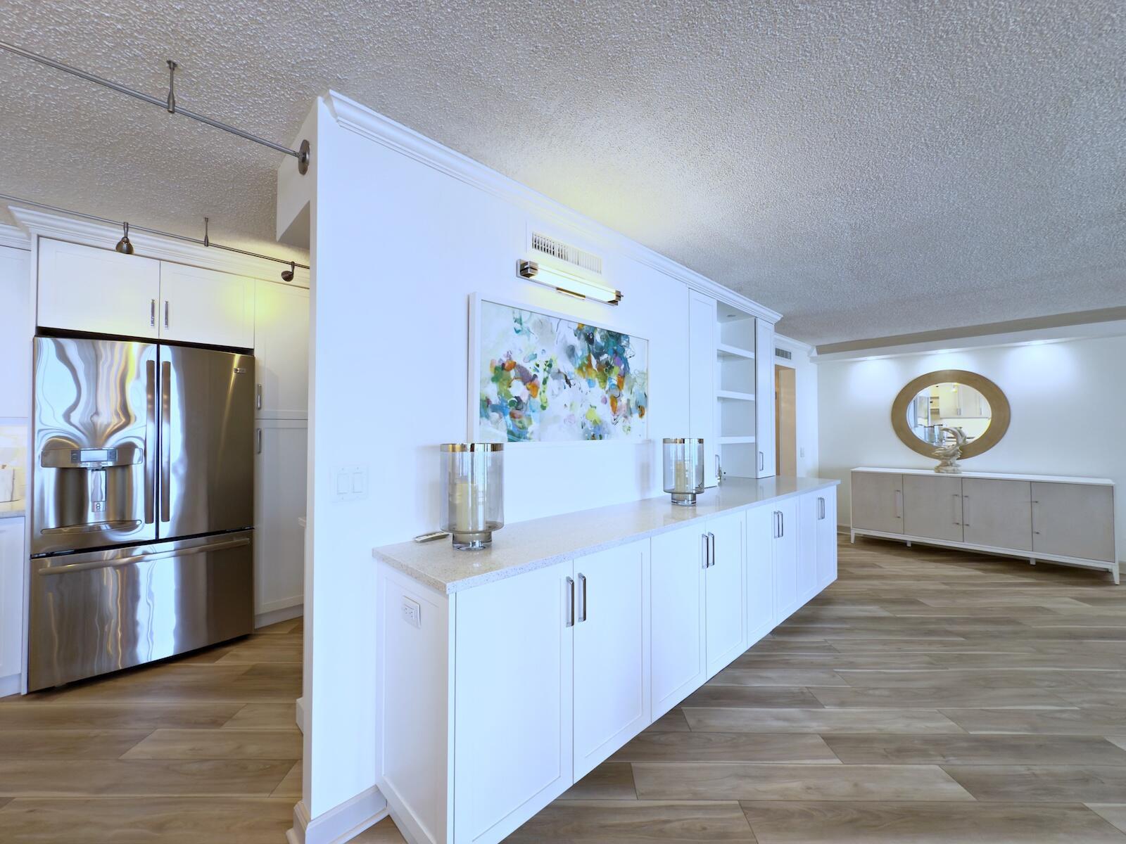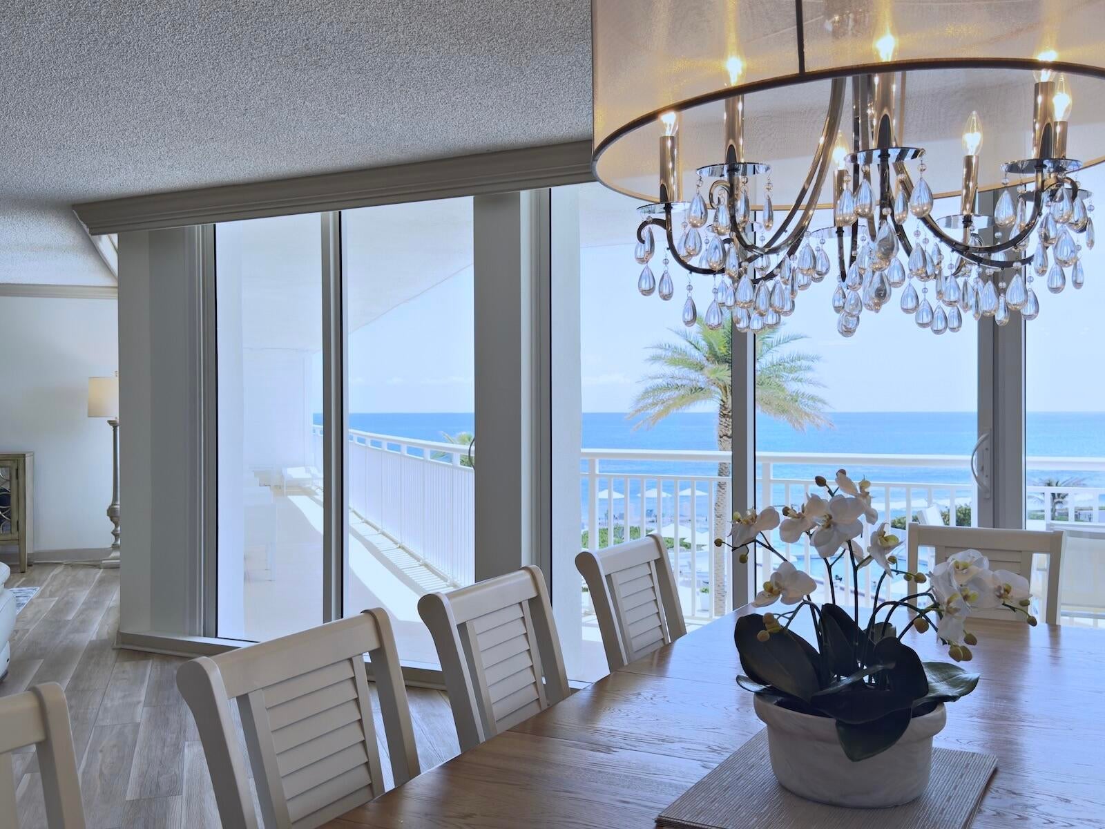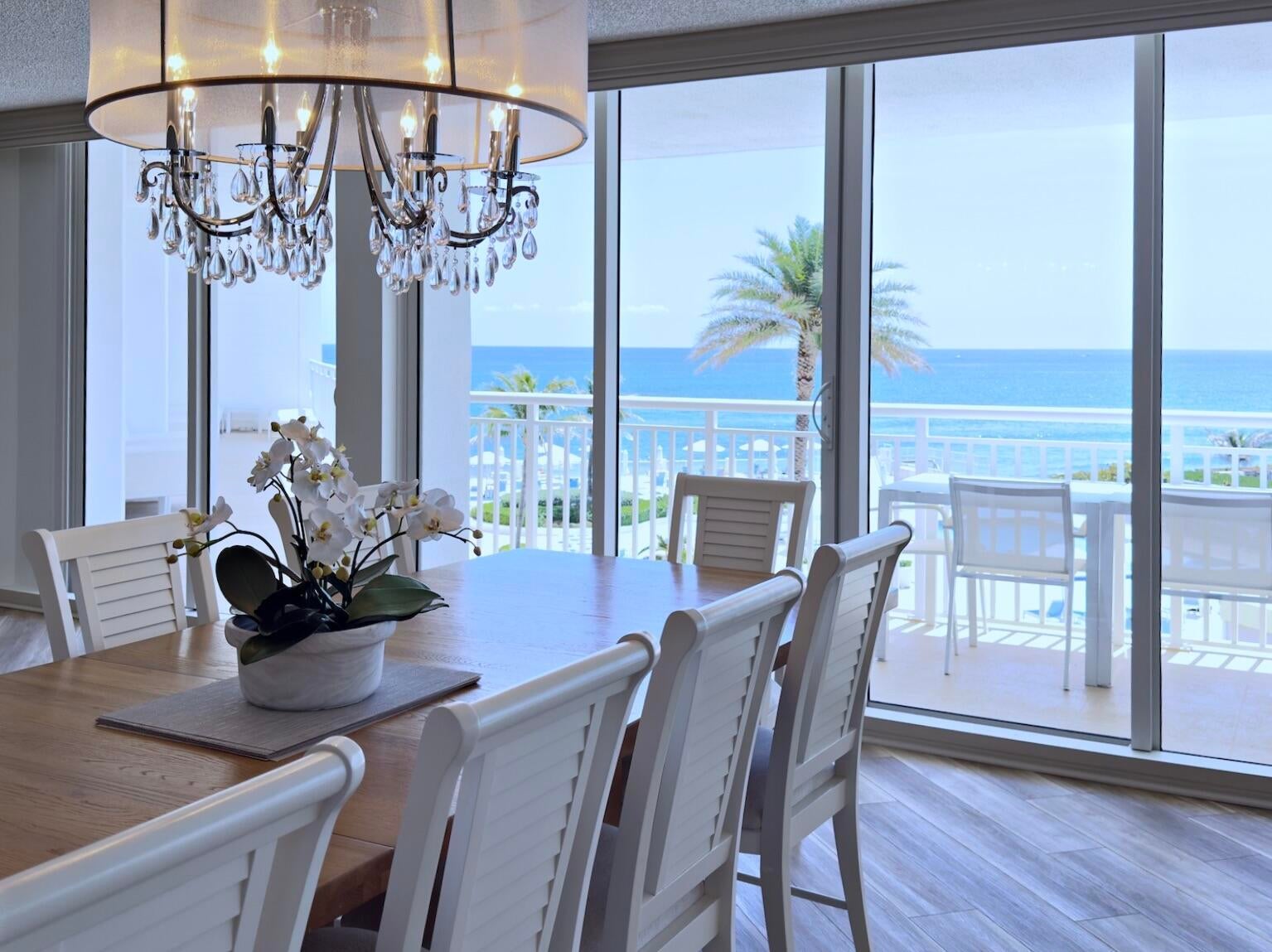 Enjoy breathtaking Ocean Views from the kitchen, dining, and living areas, all with direct access to an expansive 43-foot oversized balcony. This beautifully renovated 3-bedroom, 2.5-bath sunny residence offers over 2,400 sqft of luxurious living space, showcasing stunning southeast-facing views of both the Ocean and Pool. The chef-inspired open kitchen has been magnificently renovated and features a designer island, quartz countertops, high-end appliances, cabinet lighting, a sleek range hood, a built-in wine fridge, and custom built-in cabinetry. Modern vinyl flooring flows seamlessly throughout the home, enhancing its clean, contemporary design. The spacious primary suite offers a large walk-in closet and an oversized bathroom complete with a soaking tub and walk-in shower.Custom lighting and motorized, remote-controlled curtains in every room enhance the ambiance, while a dual-zone HVAC system provides year-round comfort. Floor-to-ceiling impact sliding doors and windows along the entire side of the residence has amazing Ocean Views and provide balcony access from every room. Enjoy the amazing sunrises and vibrant sunsets in this is luxurious oceanfront living at its finest! The Barclay offers a resort-like experience with array of amenities such as: direct beach access, BBQ area, outdoor kitchen, heated pool, tennis/pickaball courts, gym, saunas, business center, party room, game room, lounge, movie room, bike storage, and much more, ensures a lifestyle of indulgence. Covered parking, drive-through car wash, 24/7 concierge, water, pest control, internet, and cable are all conveniently included in the HOA. Just steps from the beach, it offers a one-of-a-kind lifestyle by the ocean, ready for you to enjoy!
