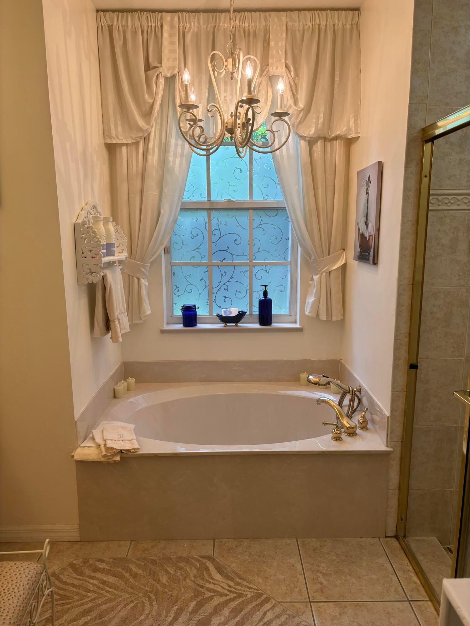 Bar, Built-in Shelves, Closet Cabinets, Entry Lvl Lvng Area, Laundry Tub, Pull Down Stairs, Roman Tub, Split Bedroom, Volume Ceiling, Walk-in Closet