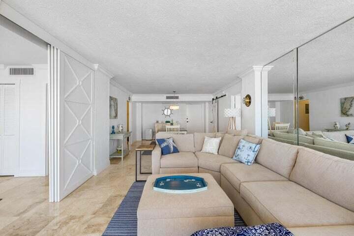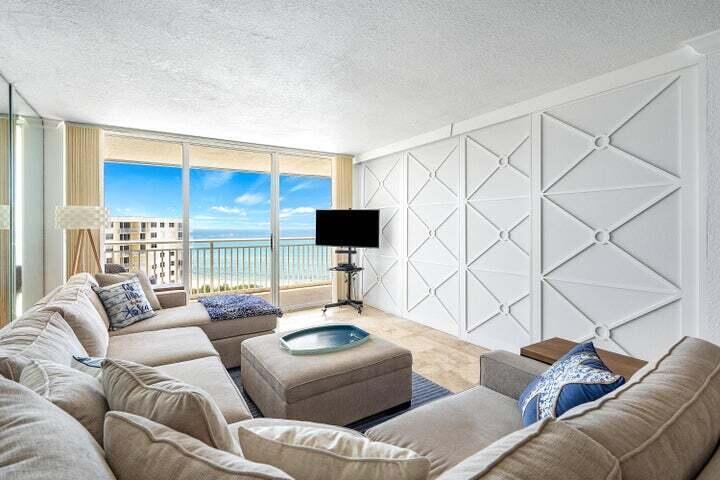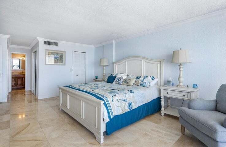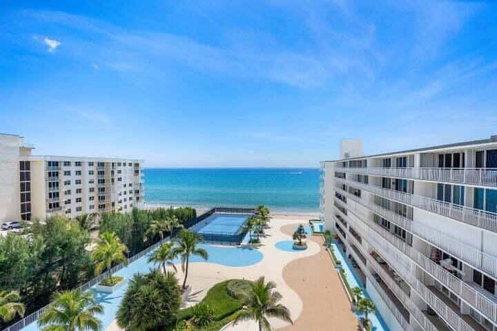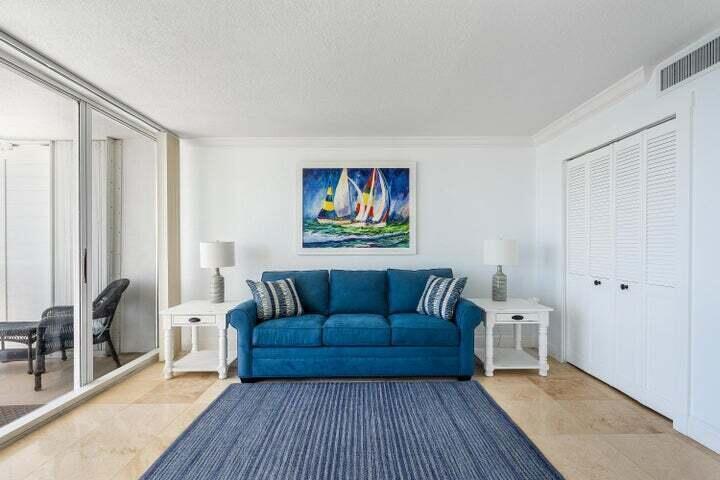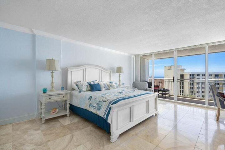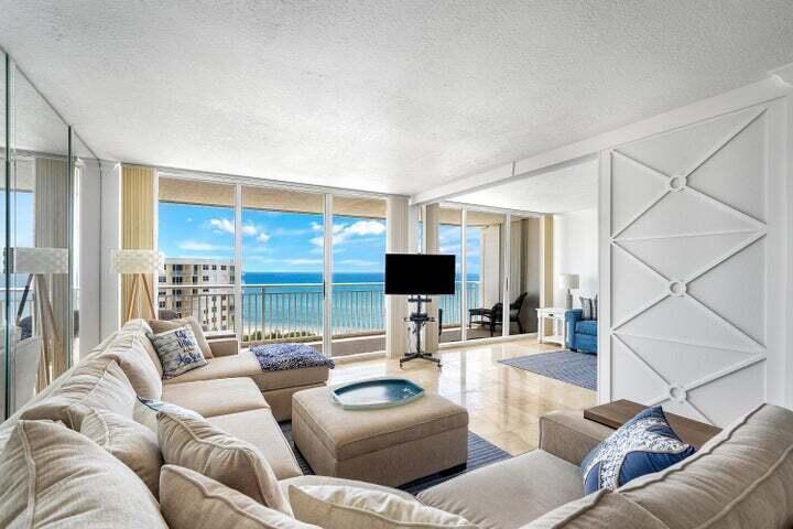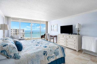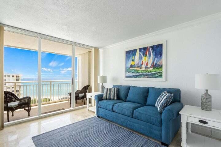 Spectacular Ocean Front Views on the top floor penthouse. Steps down to the Beach with this turnkey seasonal rental. The unit features travertine flooring, Master Bedroom spacious walk-in closet, Convertible 2nd Bedroom w/Queen size sleeper sofa with custom Shoji Screens enclosure. The amenities include, 24/7 front desk, fitness center, game room, business center, sauna, party room, onsite property manager, heated saltwater pool, tennis court, BBQ grills, gazebo, car wash area, covered garage parking. Minutes from Publix Supermarket, Ice Cream Shop, Dune Deck Restaurant, John G's, Benny's on the Beach, shopping, park and much more. Seasonal rental includes electric, water, Hotwire cable & internet. Tenants responsible for the short-term rental 13% tax. ALL AGES WELCOME.