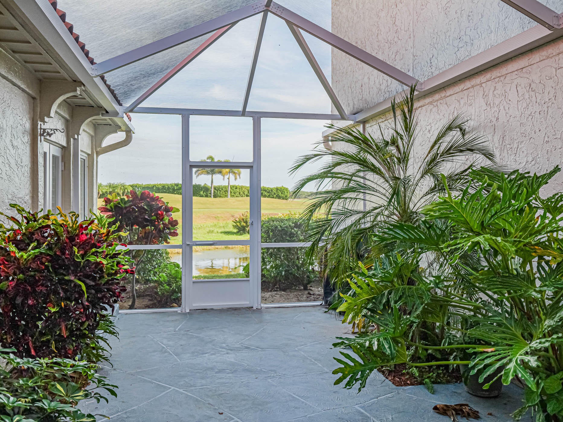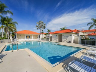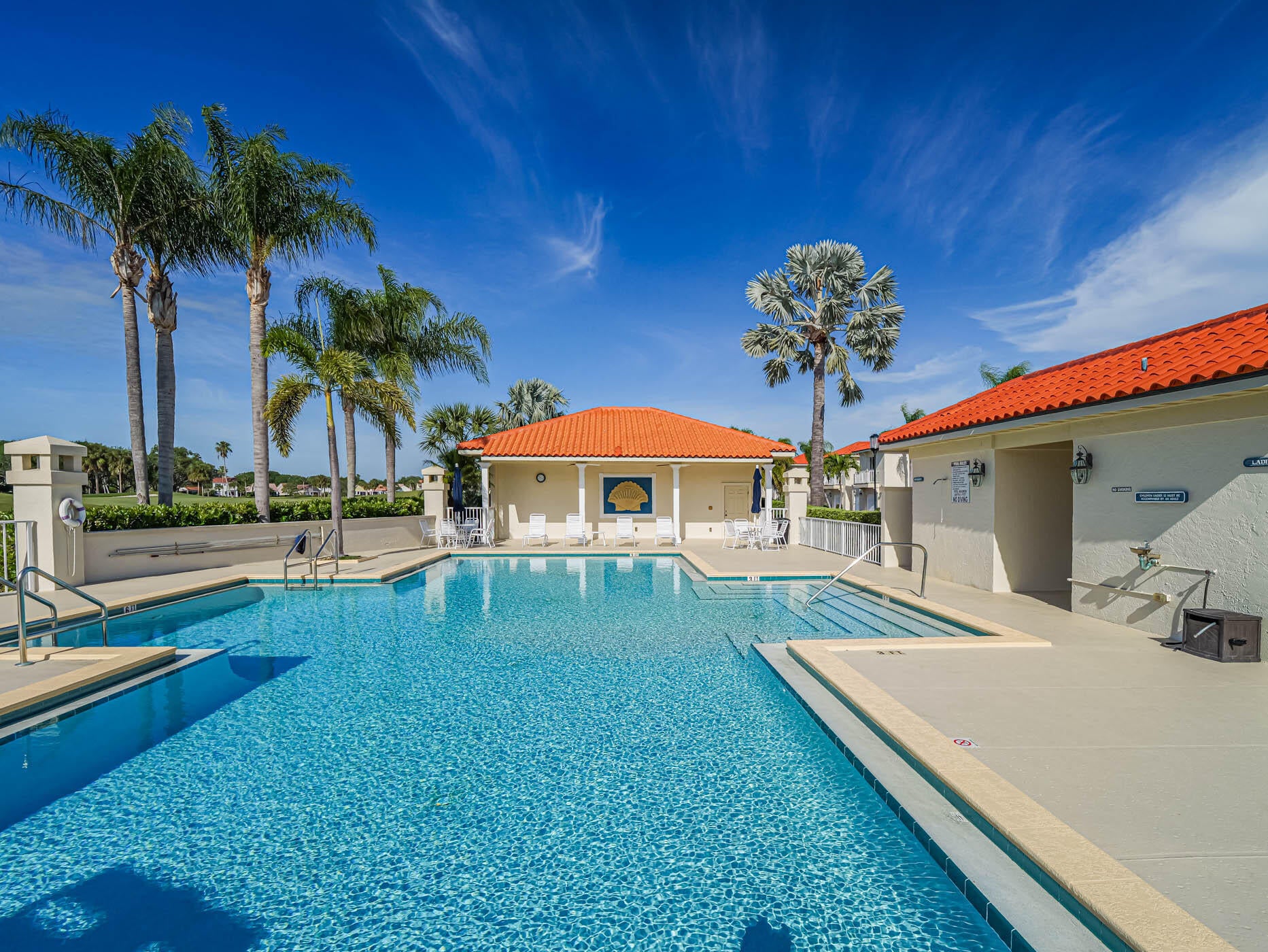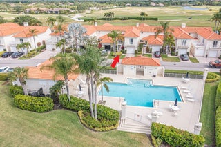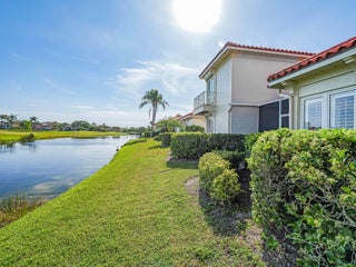 Amazing location across from pool! Stunning 2 level turnkey townhome with first floor master ensuite. 2 story ceiling in living room with fireplace and doors to enclosed garden room/lanai with view of golf course and pond. Fully equipped kitchen, large dining room, and separate laundry room on first floor. Upstairs, 2nd bedroom, full bath, den/office and loft area/sitting room open and overlooking the living room. Attached 1 car garage. Many upgrades throughout. Enjoy the Grand Harbor location within minutes of beaches and shops. Available December - May. No pets