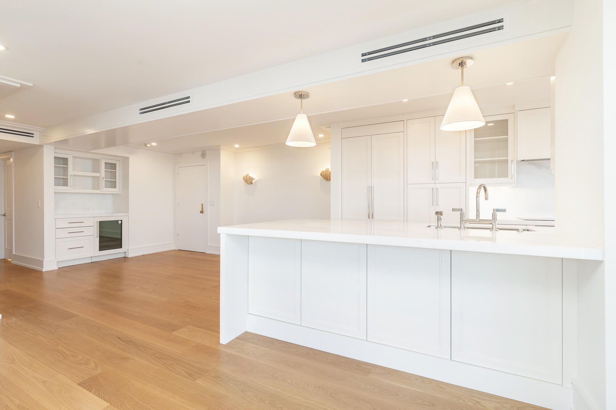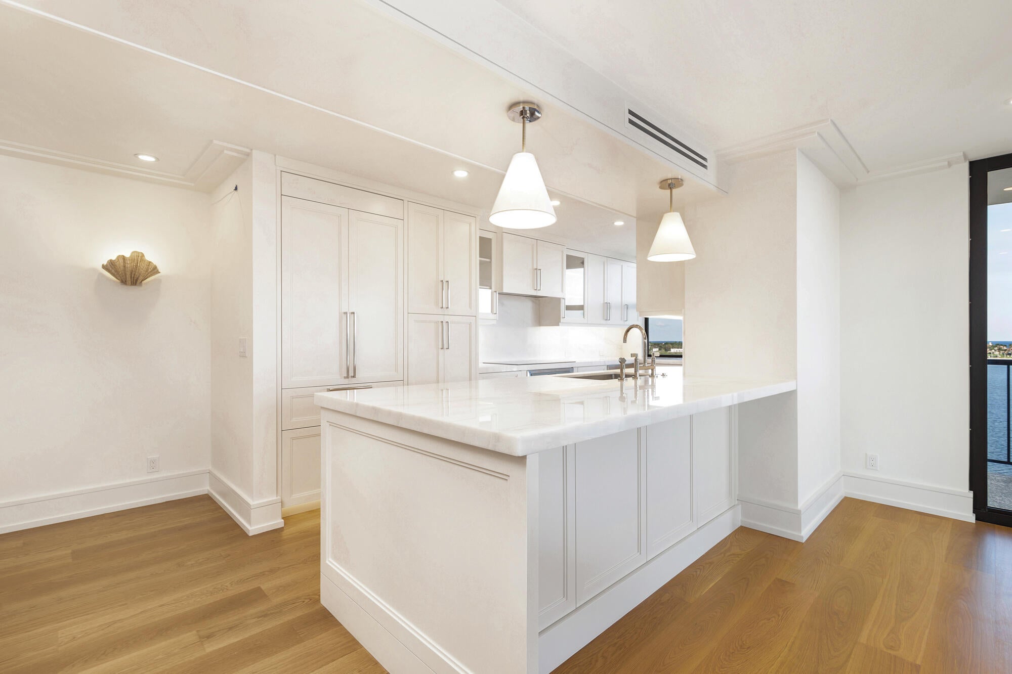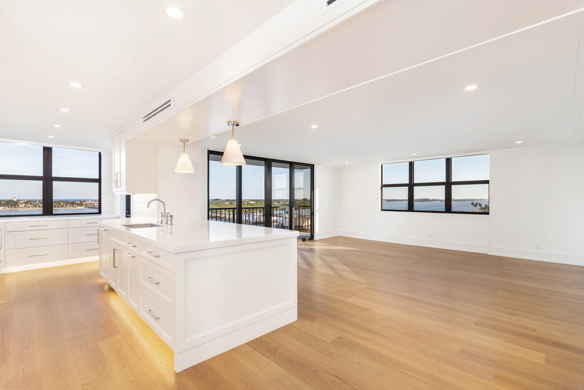 Completely renovated and ready to move in! 10th floor East and South facing three-bedroom two bath apartment. Specular wide open direct water views. Complete gut renovation. Open floorplan, all new hurricane impact windows, large balcony with direct views of the Intracoastal Waterway, Ocean and Palm Beach. Incredibly coveted and hard to find, these units rarely come up. Portofino South is a full-service building, 24-hour doorman, full-time manager and handyman on premises, large pool, assigned parking with plenty of guest parking. Truly spectacular!