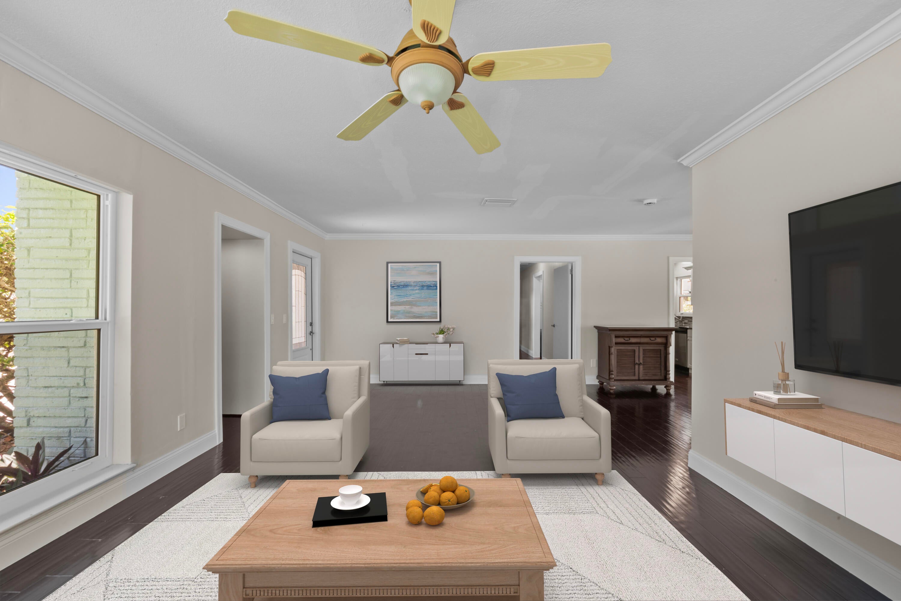 Discover Florida charm in this solid concrete block pool home, with detached garage, ideally situated on an oversized corner lot in the desirable neighborhood near Riverside Drive. This 3/2 residence offers numerous updates, including impact windows, metal roof, & a newly resurfaced pool with beautiful paver decking--perfect for relaxing & entertaining. The spacious master suite, an addition, features walk-in closets, & a large bath with sep. shower & tub. Enjoy the freedom of no HOA, with room to park a boat & two separate driveways--one circular in front & another leading to the detached garage, which doubles as a great workshop or convert to guest home. Surrounded by lush tropical landscaping, you'll love the quiet neighborhood feelwith the bonus of being just minutes from historic Downtown Stuart's shops, restaurants, and festivals. As part of the Hildebrand Park community, you also have access to scenic river views and a charming neighborhood park just a short stroll away.