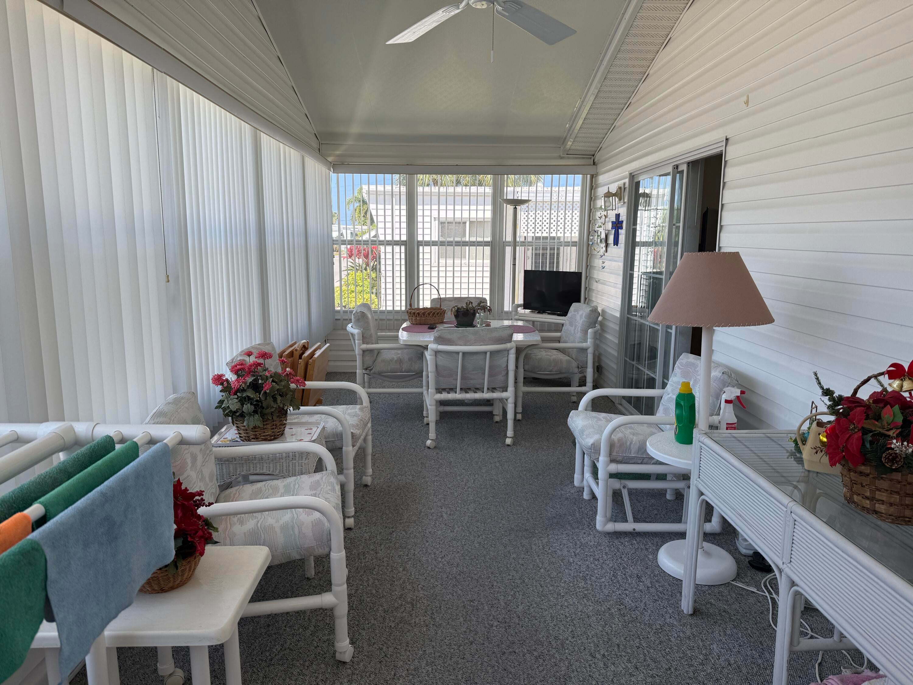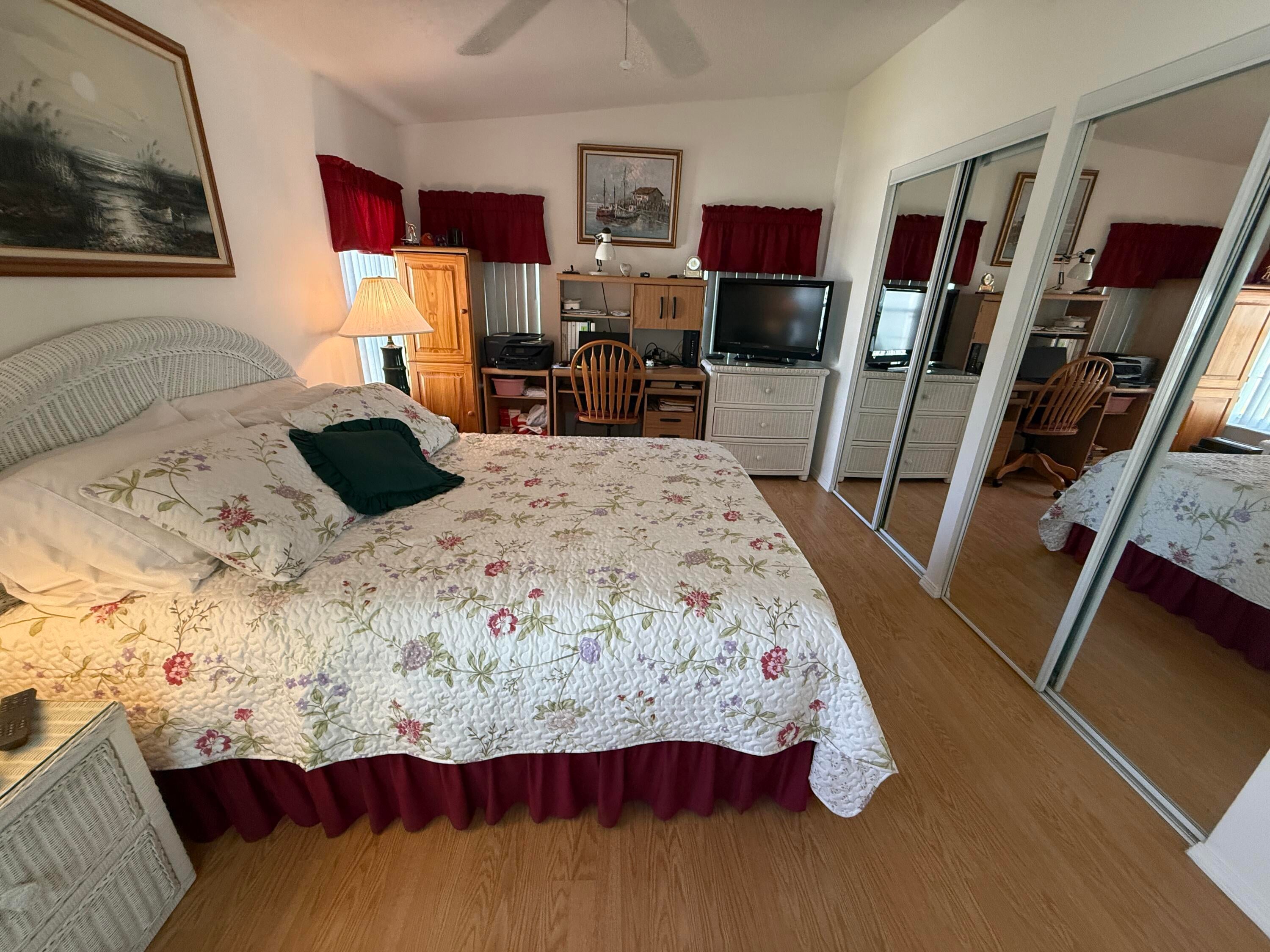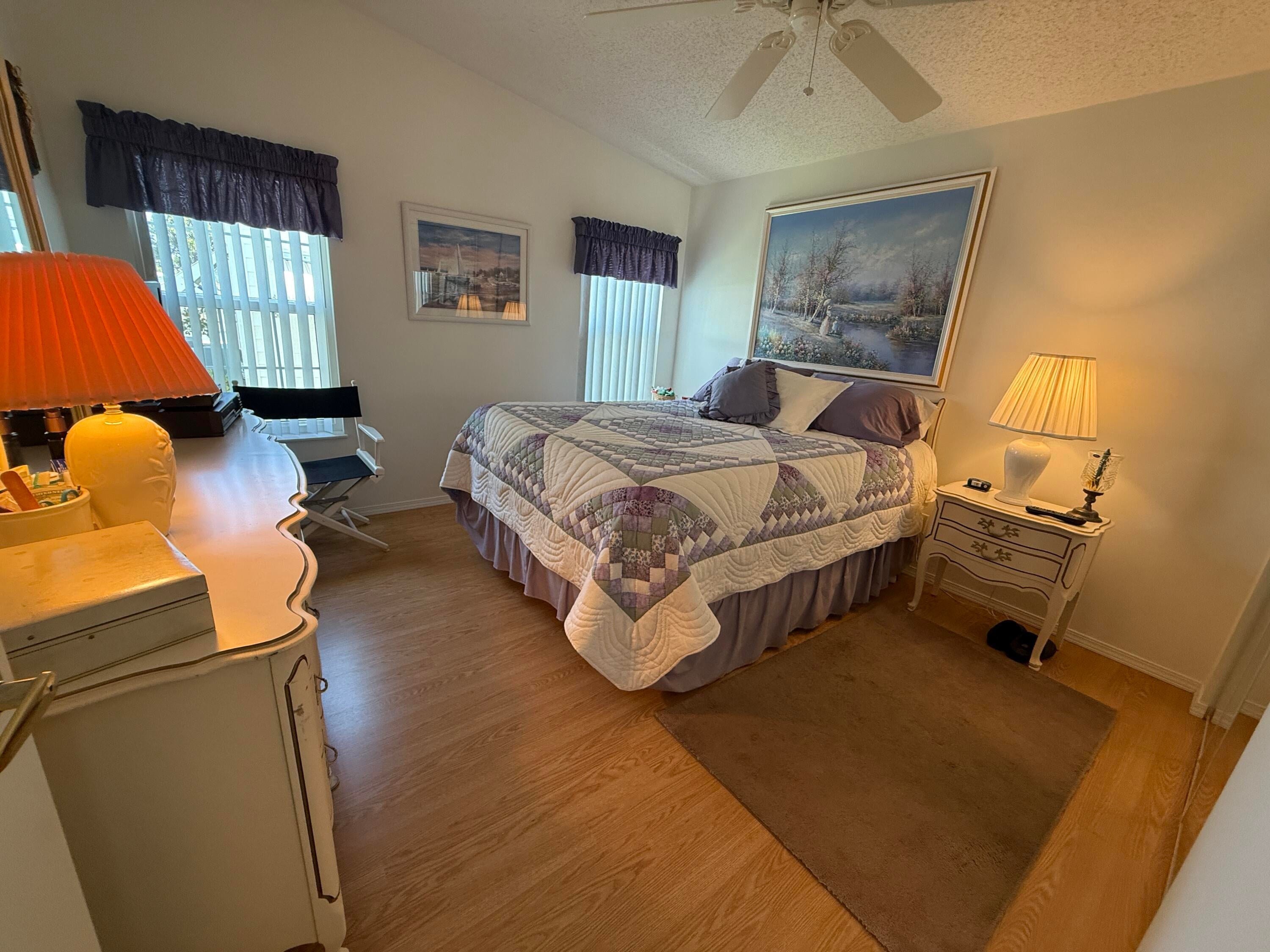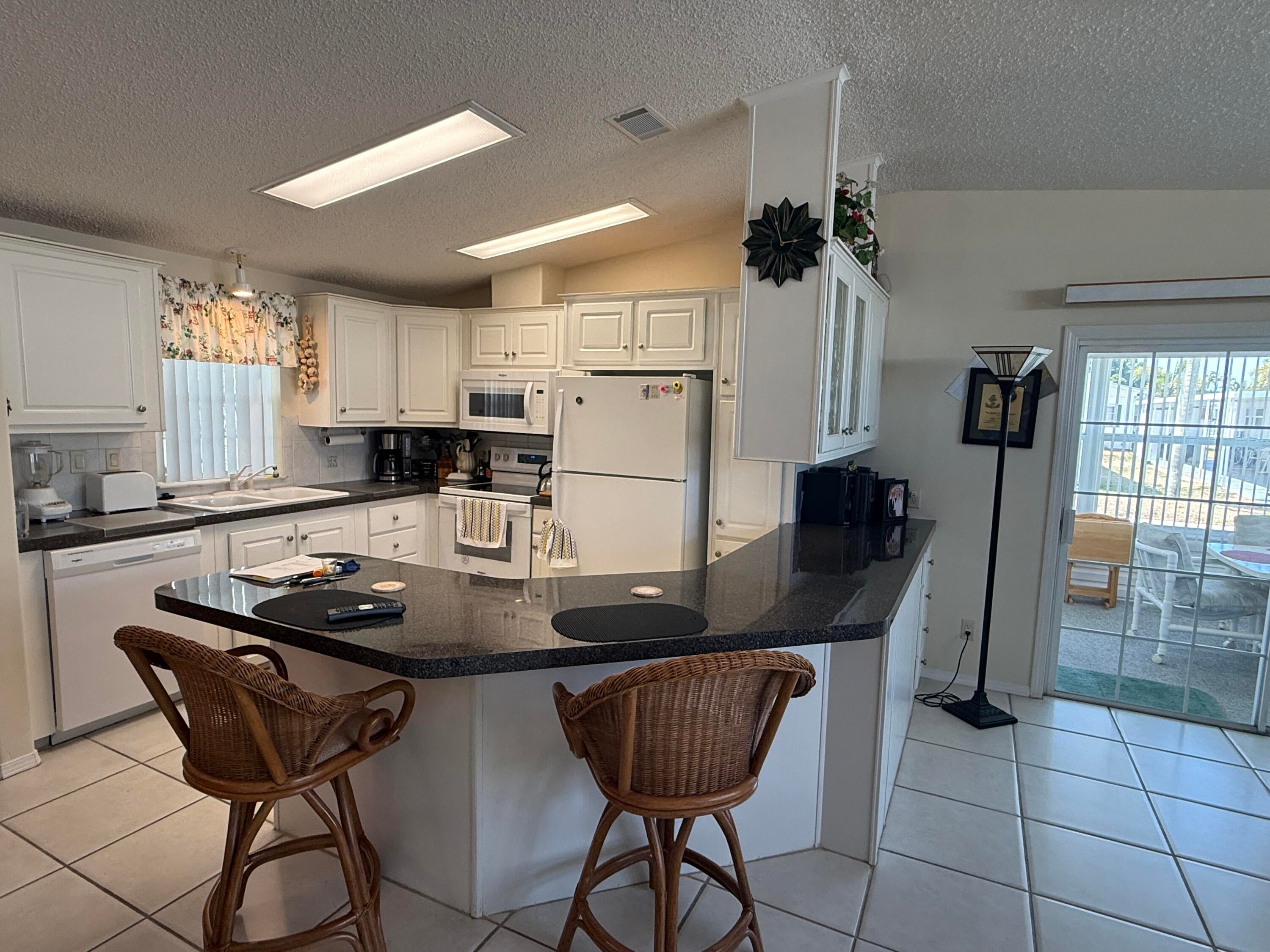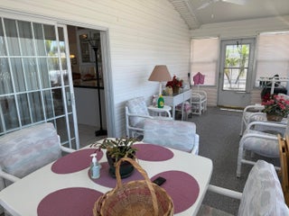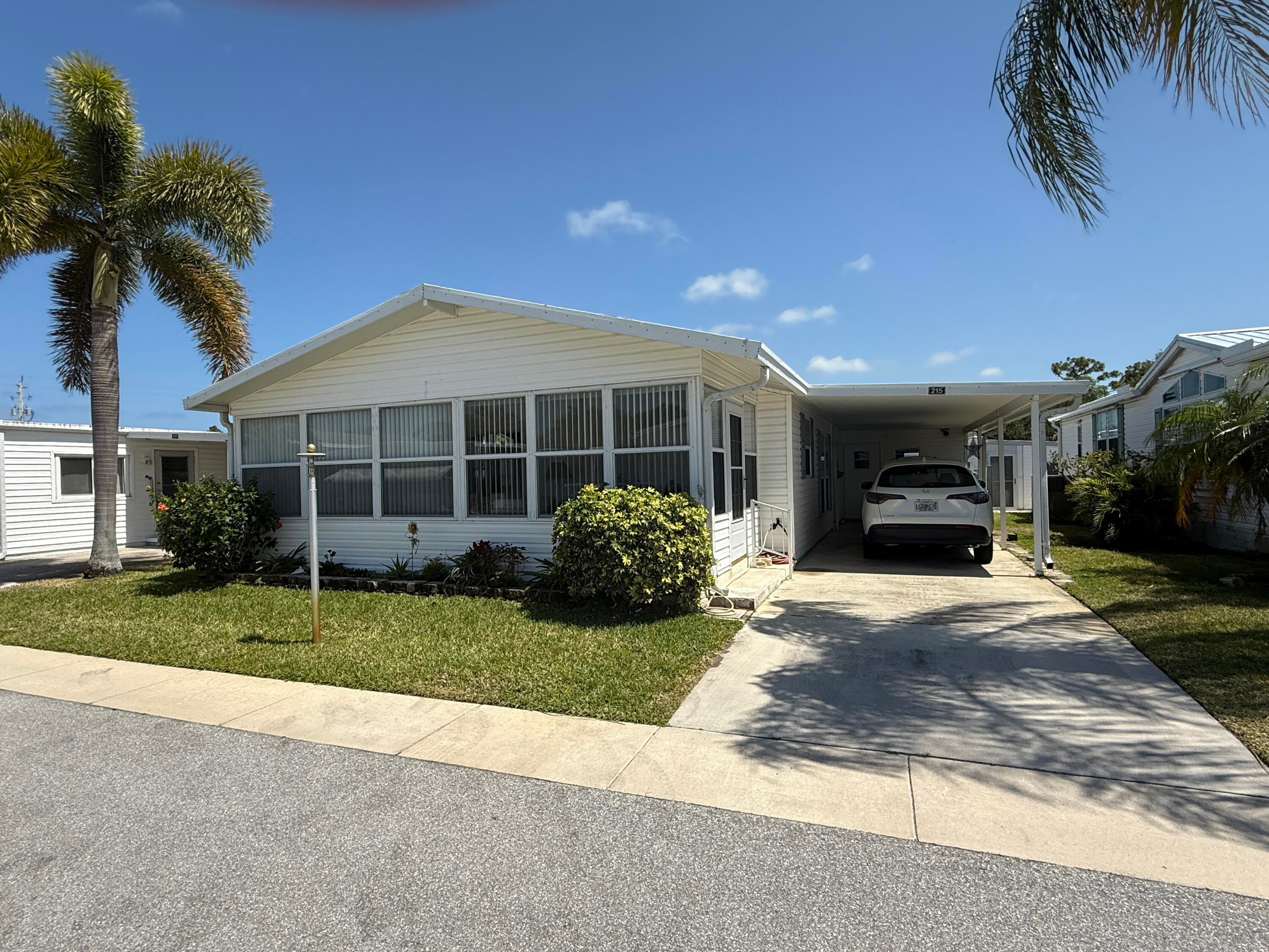 Come check out this meticulously maintained 2 Bed/2Bath home in Hidden Harbour Estates. This 55+ community is conveniently located on the Manatee Pocket offering intracoastal access thru the community boat slips (upon availability). The Community offers great adult amenities ie Clubhouse, heated pool & shuffleboard. The monthly maintenance fee of $350 incls basic cable, water/sewer, trash & lawn care. Step inside this 2001 built Jacobsen custom manf home, sporting an open floor plan w elegant tile floors & vaulted ceilings thruout the living area. Enjoy the comfort of 2 generously sized bedrms & bathrms, thoughtfully located at the rear of the home. The kitchen boasts a new Whirlpool range, microwave & dishwasher (2024). The enclosed front lanai is lovely. Metal roof 2021, A/C 2021.