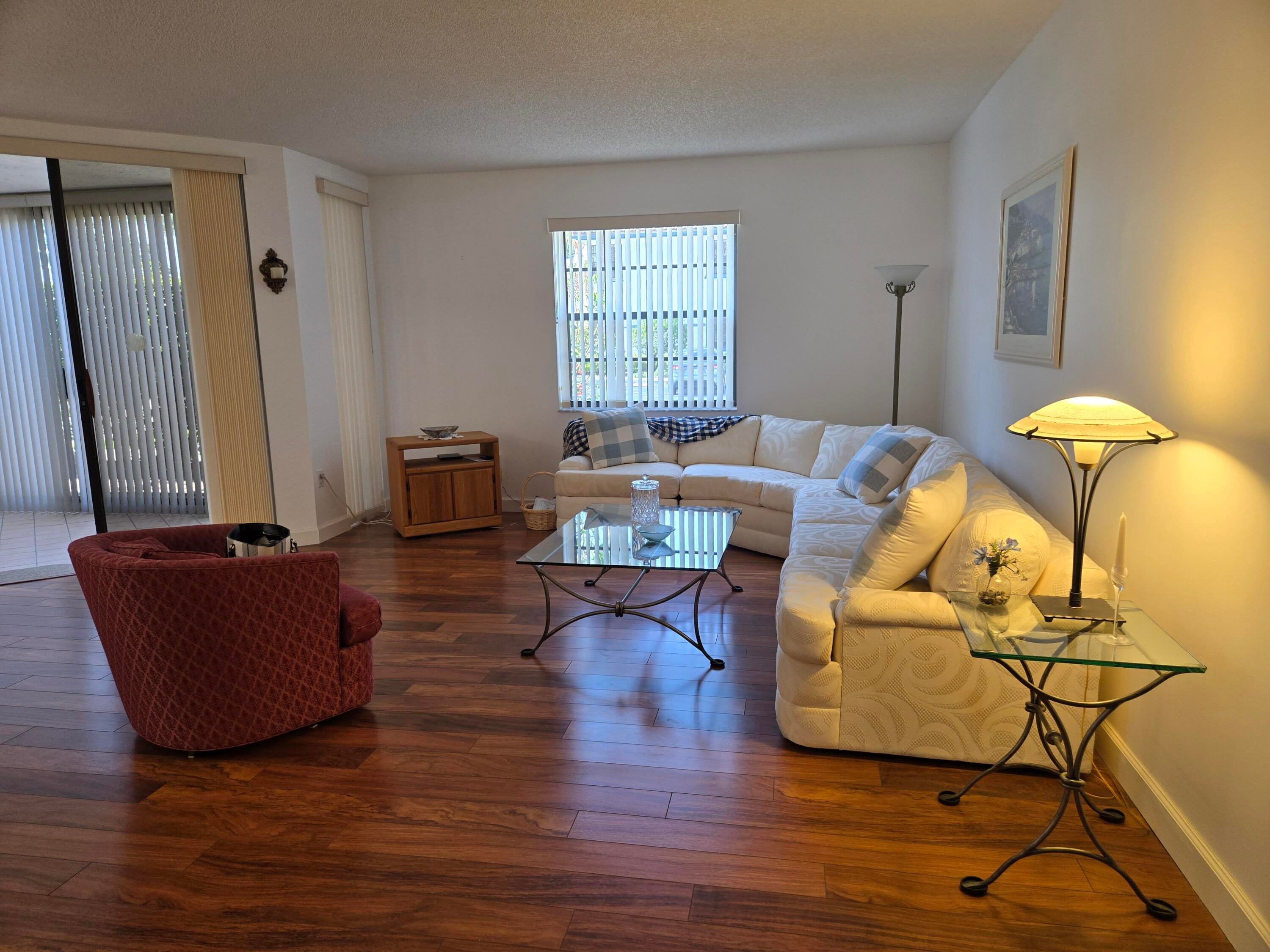Priced for immediate sale! Platina is a guard gated community with villages surrounding a beautiful clubhouse, pool and tennis area. Enjoy card rooms, a theatre with live shows, a cafe, an art room with a kiln, gym, pickleball, and an on site manager. Lovely first floor unit has an enclosed Florida room/extra storage. Immaculate, large open bright living and dining room plus eat in kitchen with pantry. Plenty of closets and storage. Den could become a 3rd bedroom. Full size washer dryer. Close to all the amenities Palm Beach County Florida has to offer. World class shopping, dining, beaches, parks, water sports, boating and fishing, plus Florida Atlantic university close by. Perfect place to call home. Live, work, play in beautiful Illustre Village Platina. Sold Partially FurnishedMrs Clean lives here. Immaculate move in ready! Furniture can stay or be taken out. All appliances stay. Are you ready to enjoy this beutiful home? Call today!