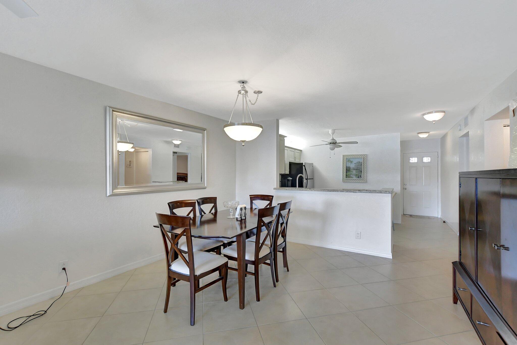 2/2 Villa, 1 car garage, front and back patio, updated open eat in kitchen,stainless appliances, tile in living area, bedrooms have wood look floor, both bathrooms are updated, accordion shutters, magnificent lake view where you can sit and enjoy the view, Short walk to active clubhouse with heated pool, tennis and bocce courts, game and exercise rooms,etc.. Close to shopping,restaurants,and entertainment. This magnificent home is a must see !!!
