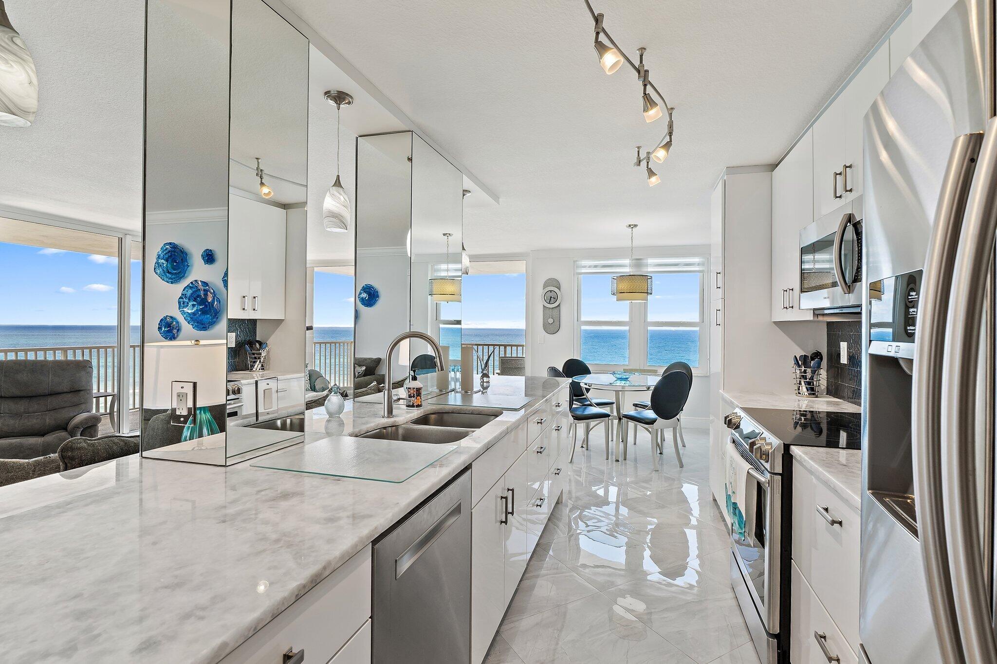 This totally renovated 1 bedroom with one full bath and one 1/2 bath, directly on the sand in Building ''A'' at Dunes Towers, is the perfect spot for a luxury getaway. Located on the 7th floor on the N.E. corner of the building, it's as close as you can get to the ocean. Relax with windows and doors open, and take in the sound of the ocean surf, and soft seaside breeze. Community amenities include a fitness center, storage areas, pool, and community lounge. Dunes Towers is the second complex from the North End of Singer Island with easy access to the finest shops, restaurants, and area clubs. The best of Palm Beach and PBIA are both only twenty minutes from the property.