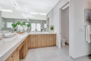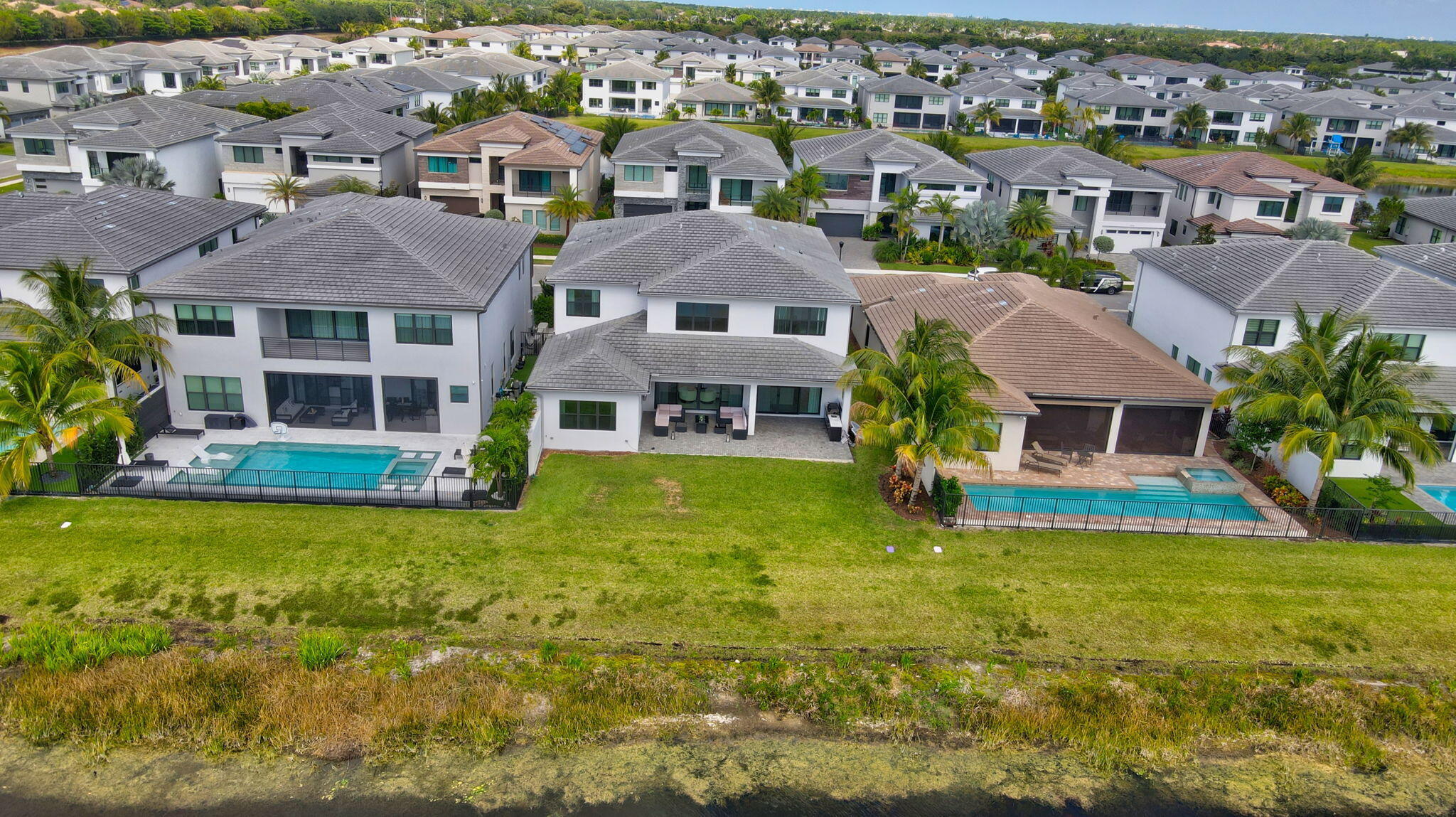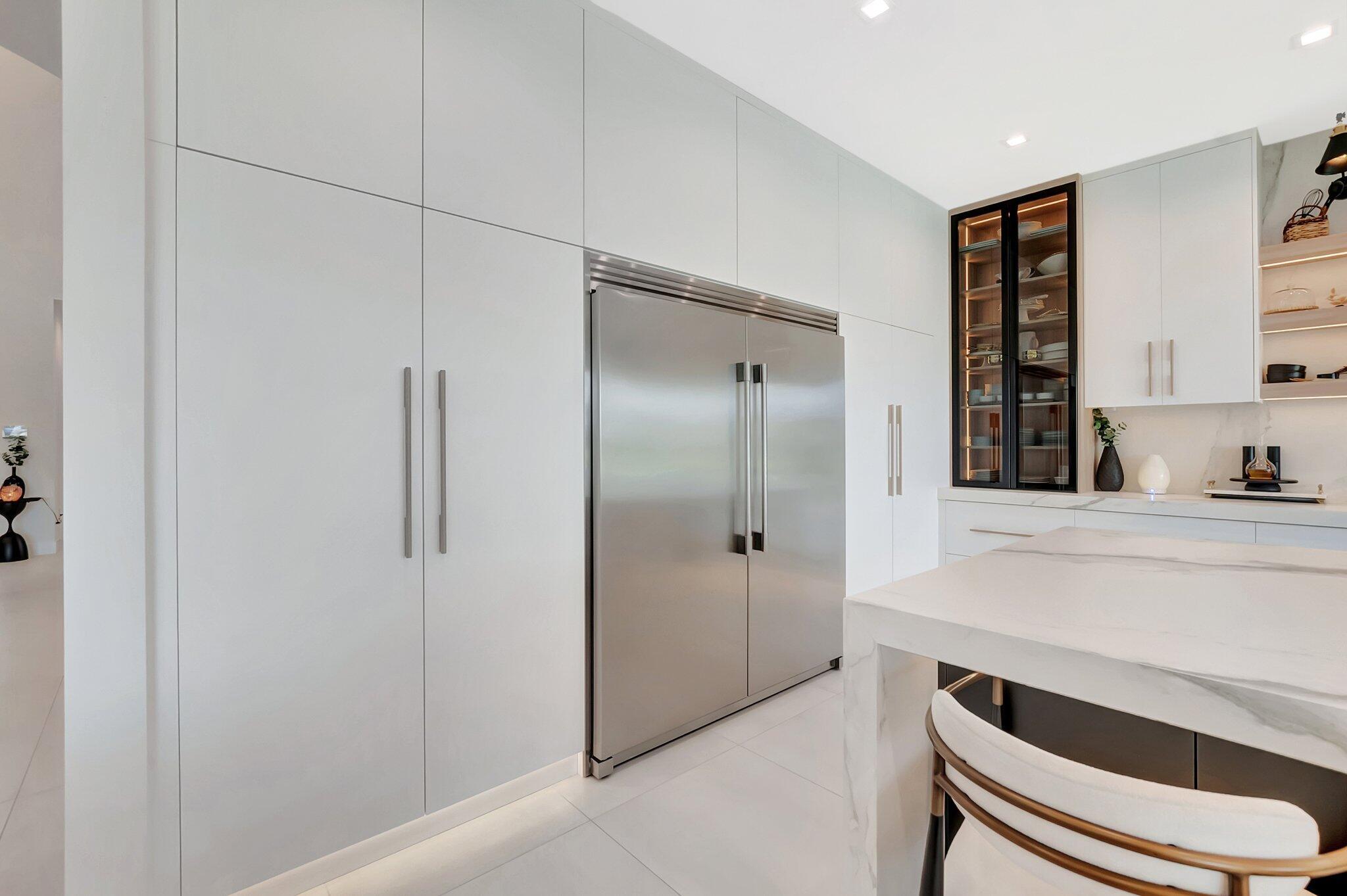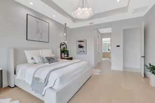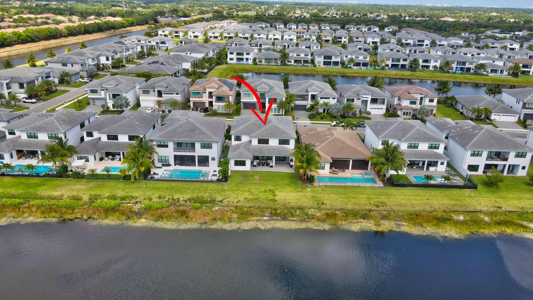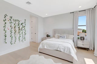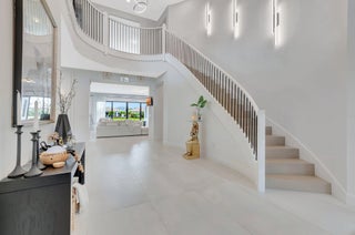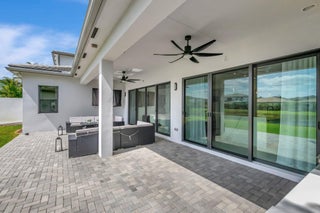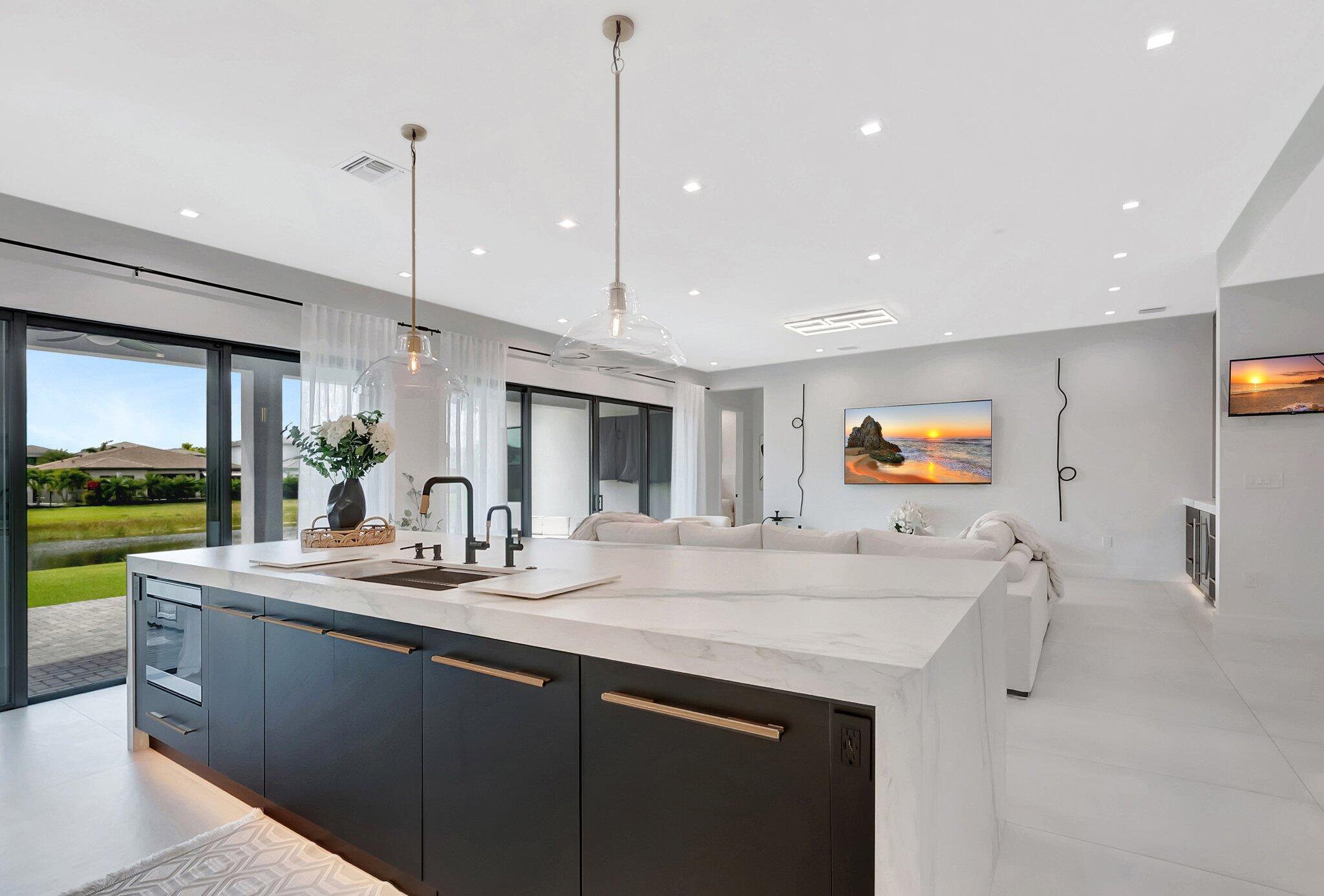 Discover unparalleled luxury in this fully upgraded, AS-IS, move-in-ready Sumatra model located in the exclusive LOTUS community of Boca Raton. Offering nearly 5,000 sq ft of elegant living space, this 5-bedroom, 5.5-bathroom residence is thoughtfully designed for modern comfort and upscale living. Enter through a grand two-story foyer featuring custom waterfalls and imported wood stairs, leading to a spacious layout with a first-floor master suite with two walk-in closets, a spa-style bathroom with bidet, dedicated office, formal dining room, media room loft, and sleek flat ceilings throughout.The heart of the home is a chef's dream kitchen, fully customized with top-of-the-line appliances including a 66" built-in fridge, 48" gas stove, microwave drawer with air fryer, paneled dishwasher, two oversized pantries with interior lighting, high-end matte porcelain countertops and matching waterfall island with lighting, gold-accented hardware, built-in outlets, and a powerful blower under a custom porcelain hood. Complementing the kitchen is a custom bar with marble backsplash, beverage fridge, and porcelain counters. Additional interior highlights include 60" matte tile flooring, custom wood floors, upgraded doors, designer lighting and fixtures, Daikin 3-zone AC with upgraded insulation, reverse osmosis water filter, GE washer/dryer with custom cabinetry in the laundry room, pre-wiring for speakers and security, and extra electrical panels. Step outside to your private oasis featuring an extended patio with upgraded pavers, outdoor kitchen with natural gas grill, fridge, fire feature, TV, and dual fan system, plus outdoor furniture included. The epoxy-coated garage floors, security cameras, 400 AMP panel, enhanced exterior lighting, and whole-house UV water filtration system add convenience and peace of mind. The home is pre-wired for a future pool and screen enclosure and features an outdoor speaker system and multiple electrical outlets. As part of the resort-style LOTUS community, enjoy access to a luxurious clubhouse, restaurant, fitness center, resort pool, tennis courts, pickleball, and more. This one-of-a-kind residence offers modern elegance, functional design, and top-tier upgrades, making it a rare opportunity in one of Boca Raton's most sought-after gated communities.