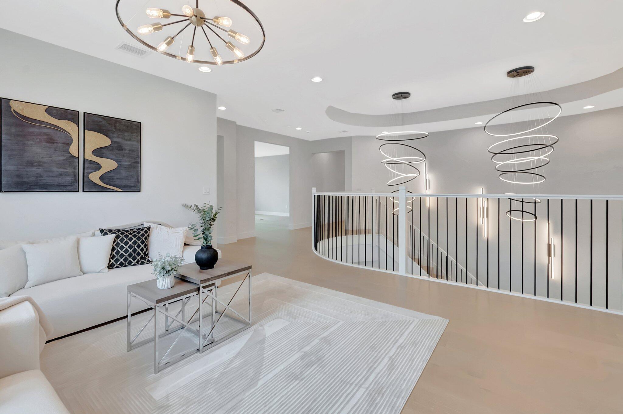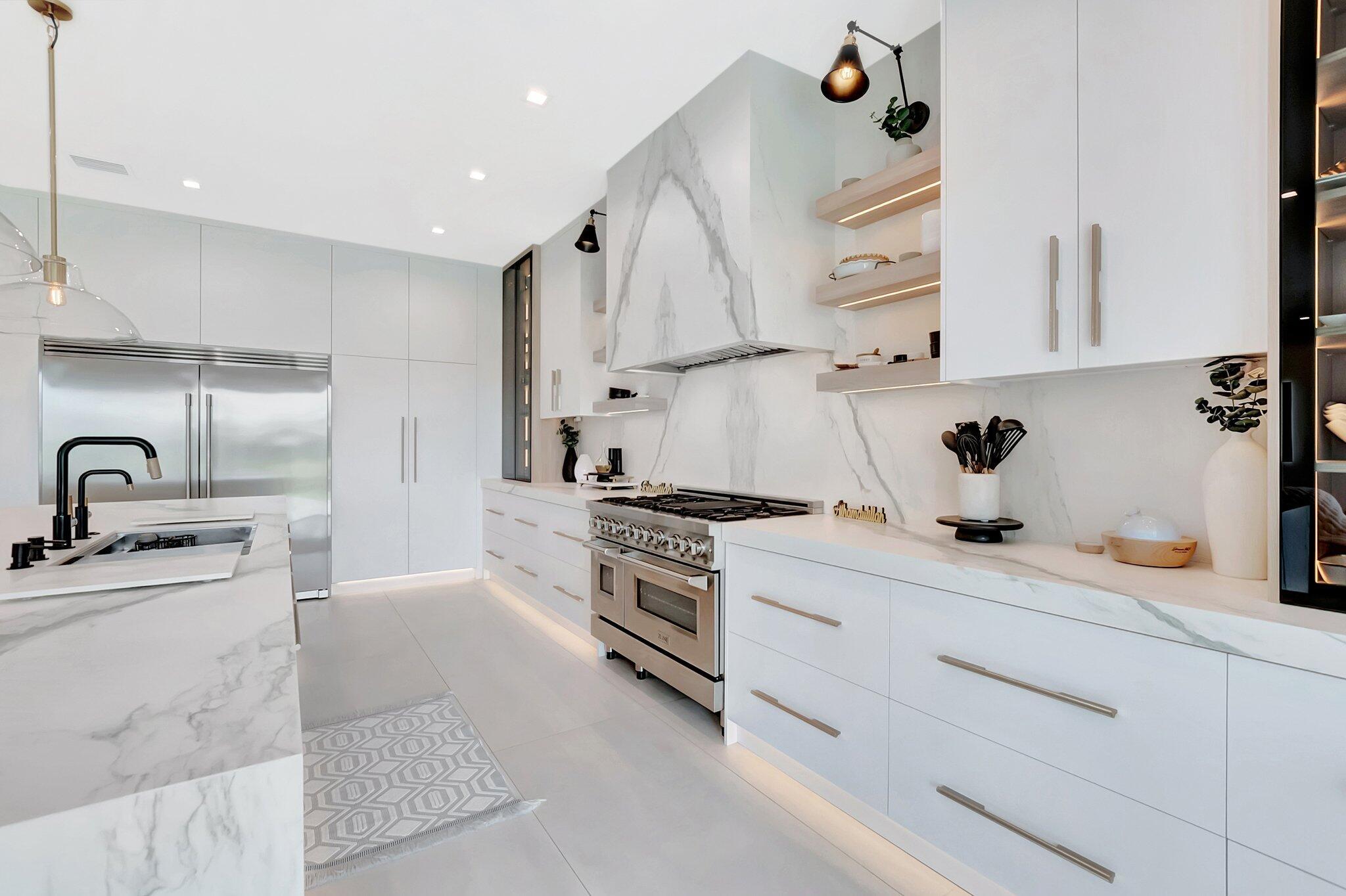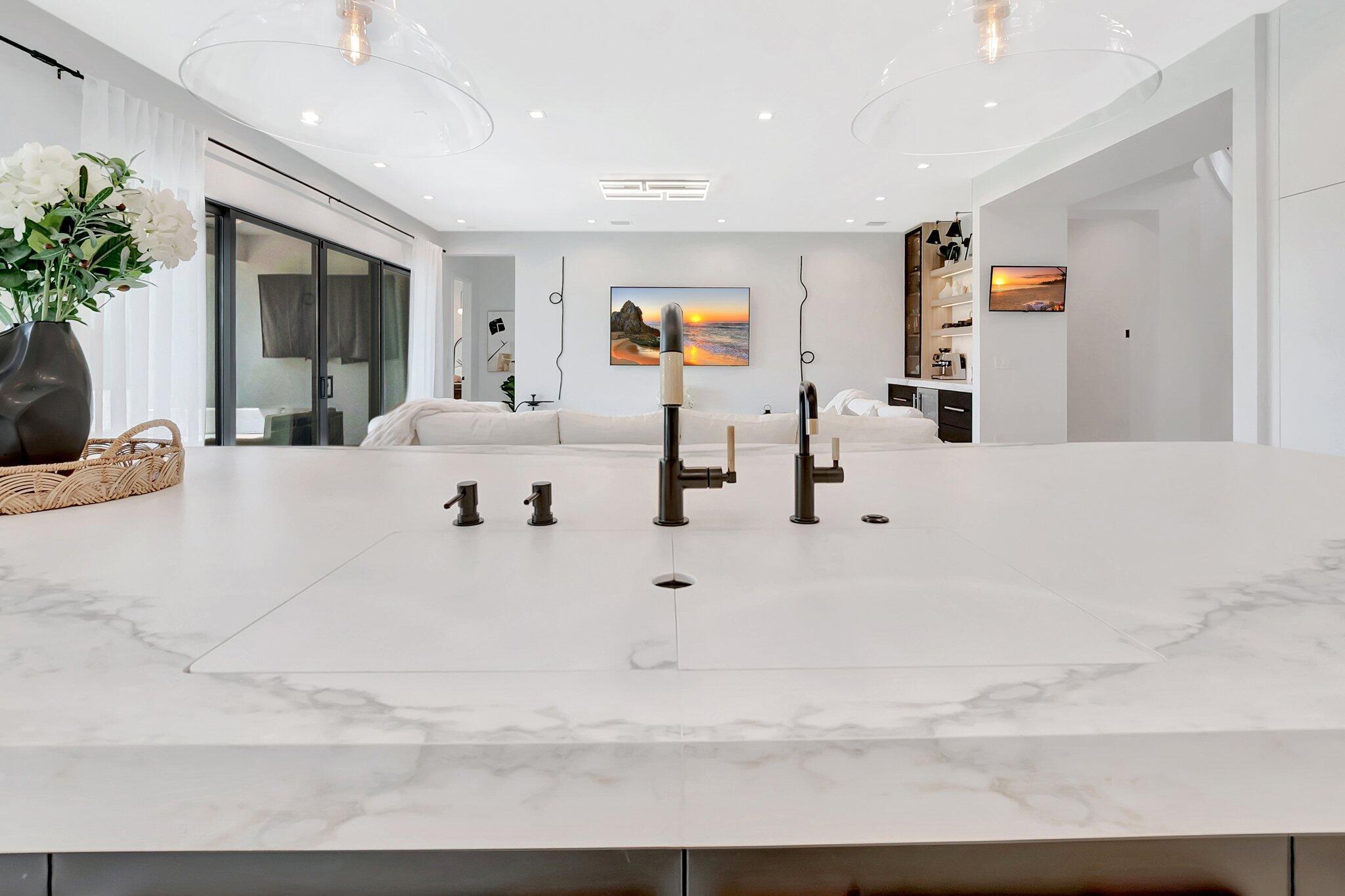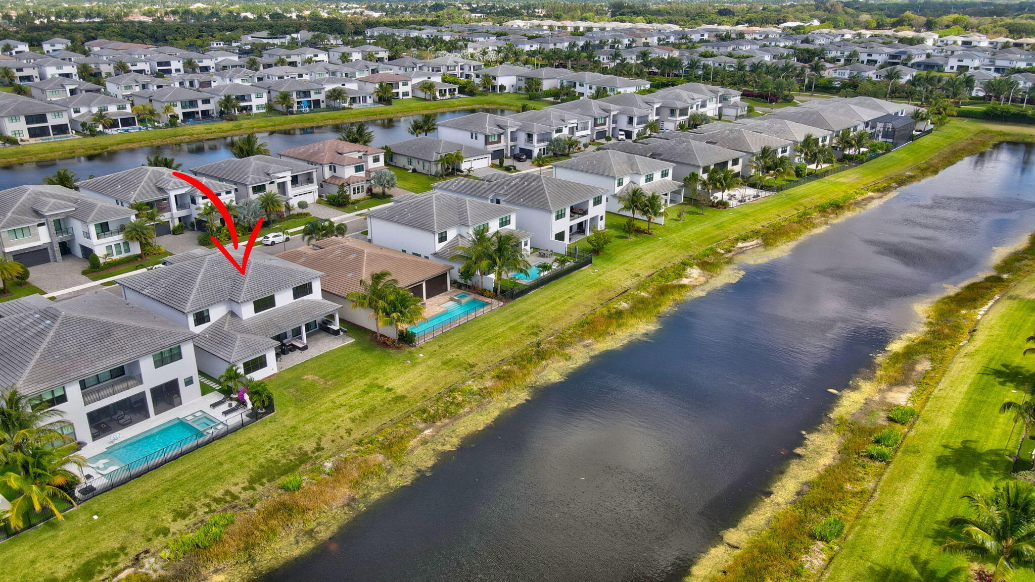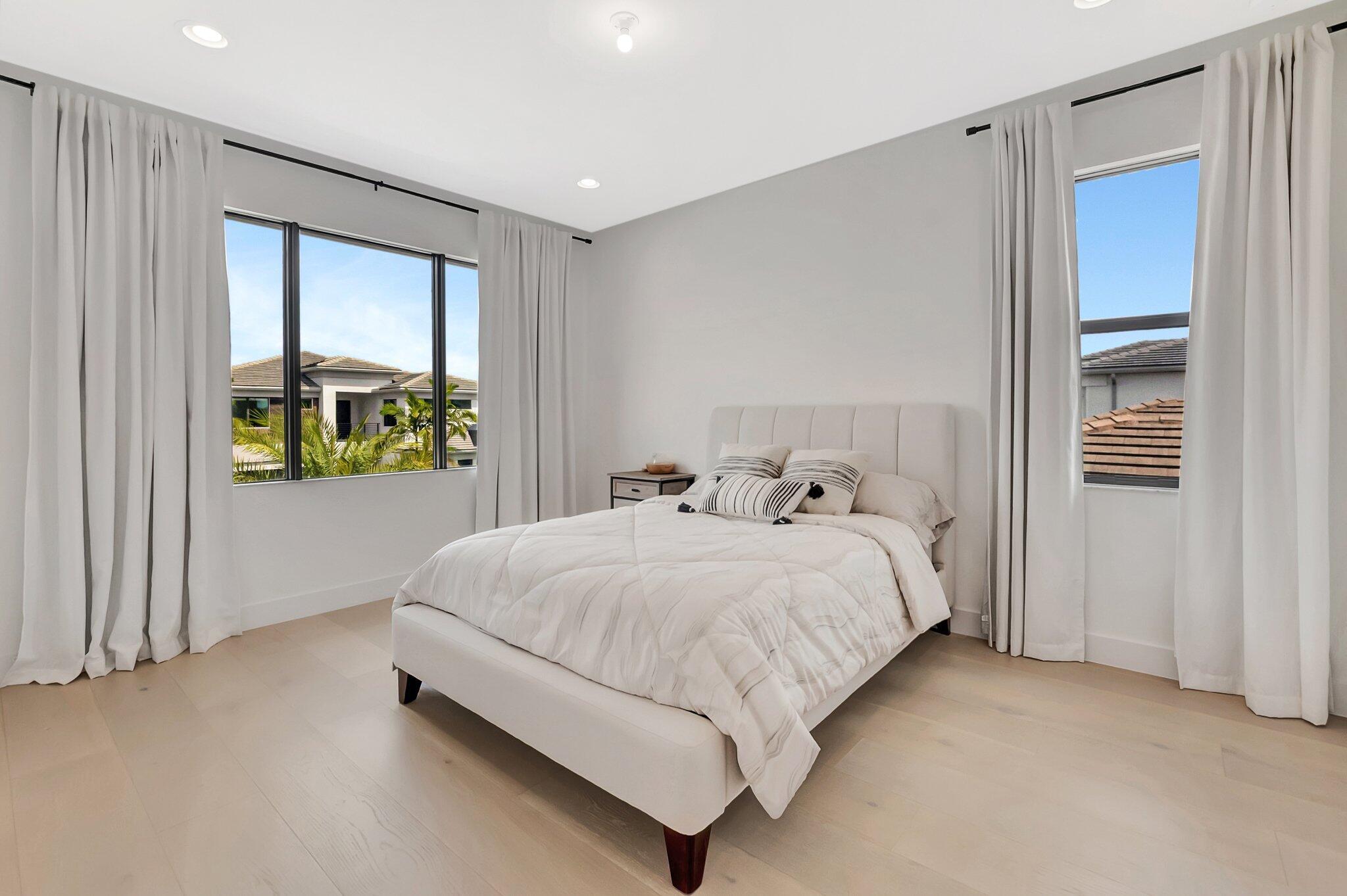 Discover unparalleled luxury in this fully upgraded, AS-IS, move-in-ready Sumatra model located in the exclusive LOTUS community of Boca Raton. Offering nearly 5,000 sq ft of elegant living space, this 5-bedroom, 5.5-bathroom residence is thoughtfully designed for modern comfort and upscale living. Enter through a grand two-story foyer featuring custom waterfalls and imported wood stairs, leading to a spacious layout with a first-floor master suite with two walk-in closets, a spa-style bathroom with bidet, dedicated office, formal dining room, media room loft, and sleek flat ceilings throughout.The heart of the home is a chef's dream kitchen, fully customized with top-of-the-line appliances including a 66" built-in fridge, 48" gas stove, microwave drawer with air fryer, paneled dishwasher, two oversized pantries with interior lighting, high-end matte porcelain countertops and matching waterfall island with lighting, gold-accented hardware, built-in outlets, and a powerful blower under a custom porcelain hood. Complementing the kitchen is a custom bar with marble backsplash, beverage fridge, and porcelain counters. Additional interior highlights include 60" matte tile flooring, custom wood floors, upgraded doors, designer lighting and fixtures, Daikin 3-zone AC with upgraded insulation, reverse osmosis water filter, GE washer/dryer with custom cabinetry in the laundry room, pre-wiring for speakers and security, and extra electrical panels. Step outside to your private oasis featuring an extended patio with upgraded pavers, outdoor kitchen with natural gas grill, fridge, fire feature, TV, and dual fan system, plus outdoor furniture included. The epoxy-coated garage floors, security cameras, 400 AMP panel, enhanced exterior lighting, and whole-house UV water filtration system add convenience and peace of mind. The home is pre-wired for a future pool and screen enclosure and features an outdoor speaker system and multiple electrical outlets. As part of the resort-style LOTUS community, enjoy access to a luxurious clubhouse, restaurant, fitness center, resort pool, tennis courts, pickleball, and more. This one-of-a-kind residence offers modern elegance, functional design, and top-tier upgrades, making it a rare opportunity in one of Boca Raton's most sought-after gated communities.