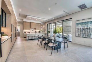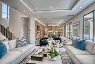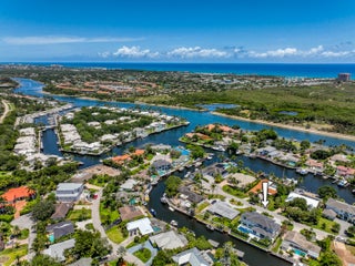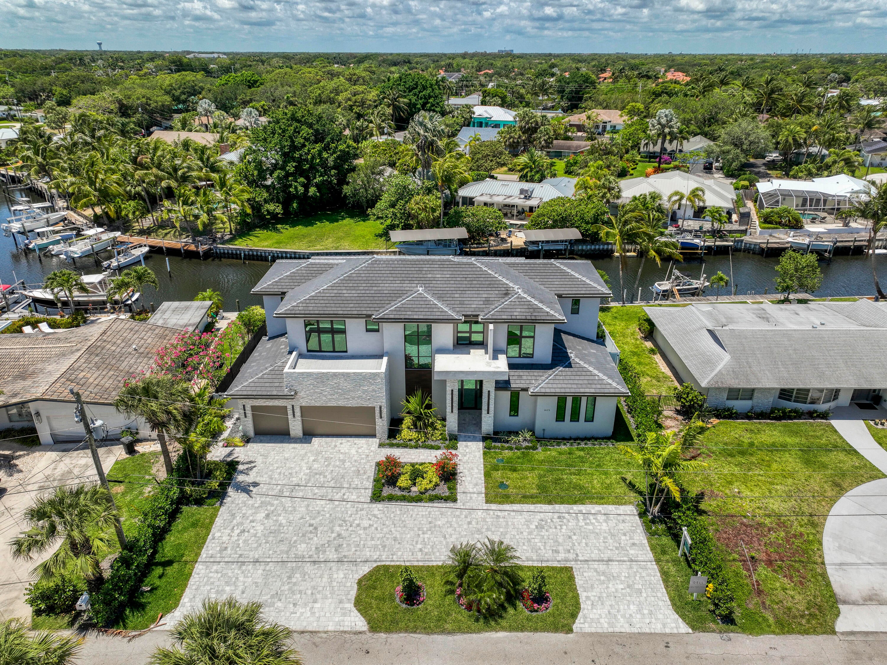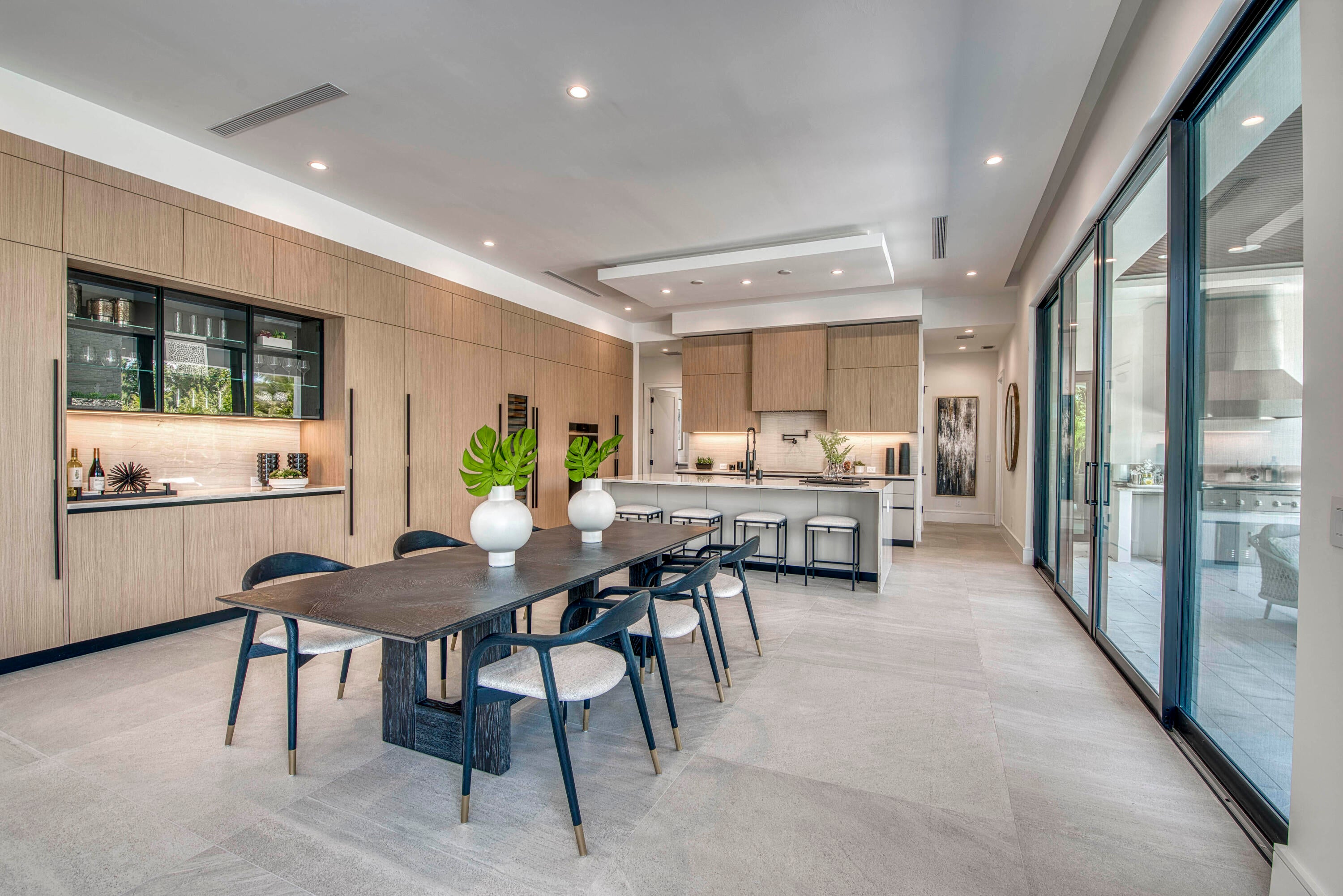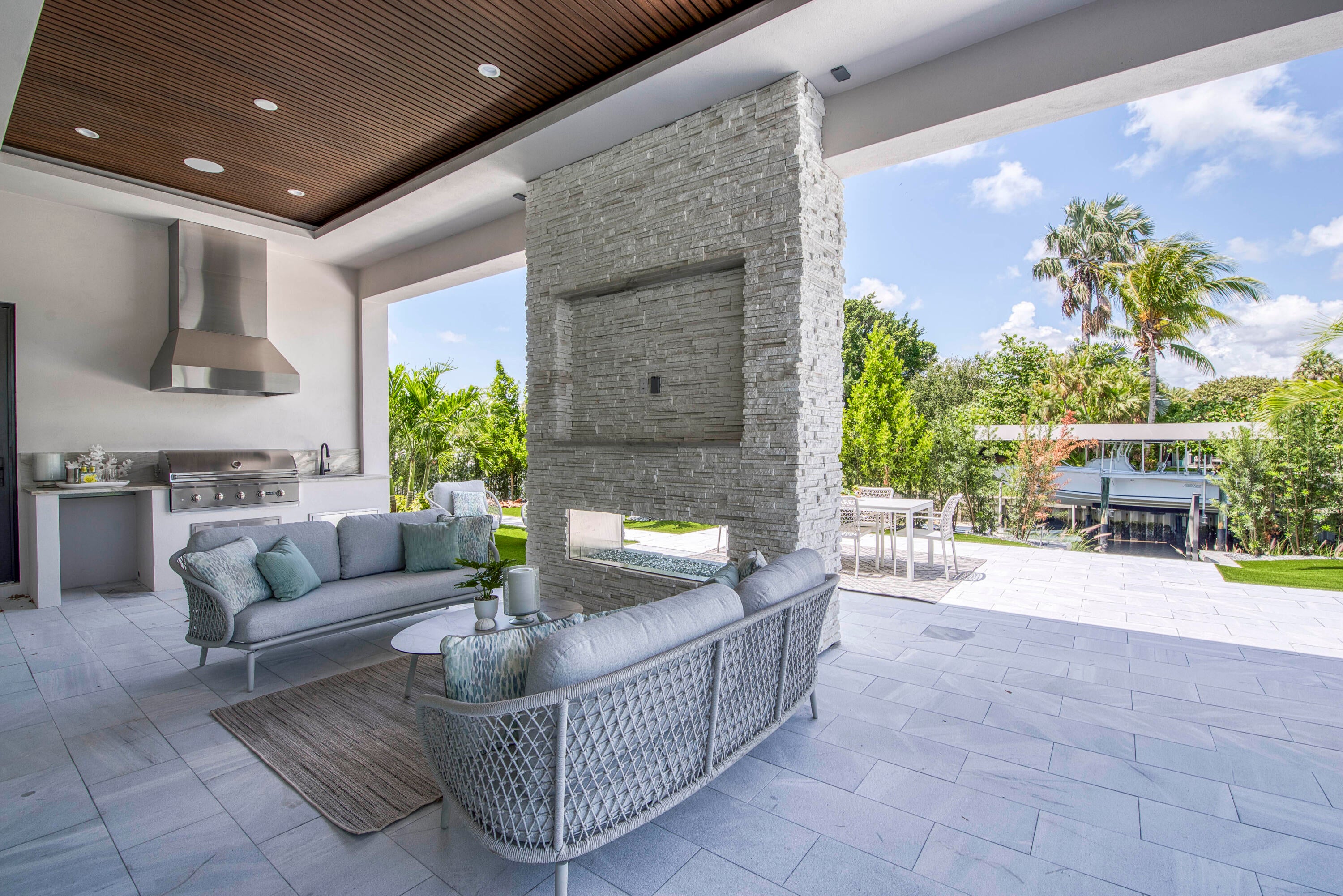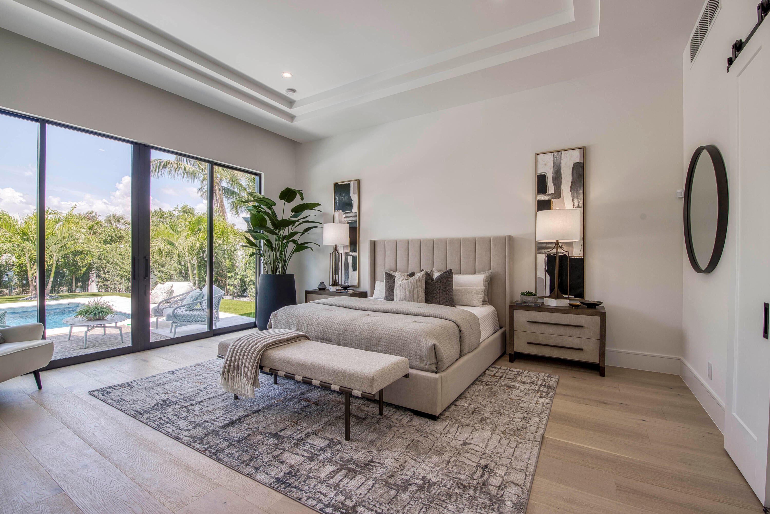 Balancing modern elegance with a true waterfront lifestyle, this brand-new construction by Dell Development is a standout offering in the prestigious boating community of Paradise Port, located in the heart of Palm Beach Gardens. This exceptional 4,920-square-foot estate boasts 95 feet of waterfrontage with a brand-new seawall and delivers refined luxury in a thoughtfully designed two-story layout. Featuring 5 bedrooms and 6 bathrooms, the home seamlessly blends sophisticated design with functional comfort. From the moment you enter, clean architectural lines and a light-filled open layout make a lasting impression. The main living area showcases neutral-toned large-format tile, a sleek stone-surround fireplace, and expansive 10-foot floor-to-ceiling sliders that blur the linebetween indoor and outdoor living. The open-concept kitchen and dining area is both elegant and highly functional, anchored by a wall of custom sleek cabinetry and outfitted with premium Sub-Zero and Wolf appliances. Alabaster-toned lower cabinets pair beautifully with coordinating quartz countertops, full-height backsplashes, and a striking waterfall island. The ground-floor primary suite serves as a serene private retreat, featuring warm European white oak flooring, dual walk-in closets, and a spa-style bathroom with a soaking tub, dual showers, and dramatic floor-to-ceiling large-format porcelain tile. Upstairs, a spacious loft and office provide flexible living options, while four additional guest suites each offer en-suite baths and walk-in closets, ensuring privacy and comfort for family and guests. Outdoor living is equally impressive, with a full summer kitchen, a sparkling pool and spa with elegant deck jets, and a see-through fireplace with a built-in media wall. The open-air patio is framed by lush tropical landscaping and includes multiple zones for entertaining, sunbathing deck, lounge seating, and al fresco dining area. Just off the patio, a private stairway leads to the dock on a tranquil interior canal with direct access to the Intracoastal. Completing this exceptional backyard paradise is an outdoor tackle room for convenient boat and gear storage.