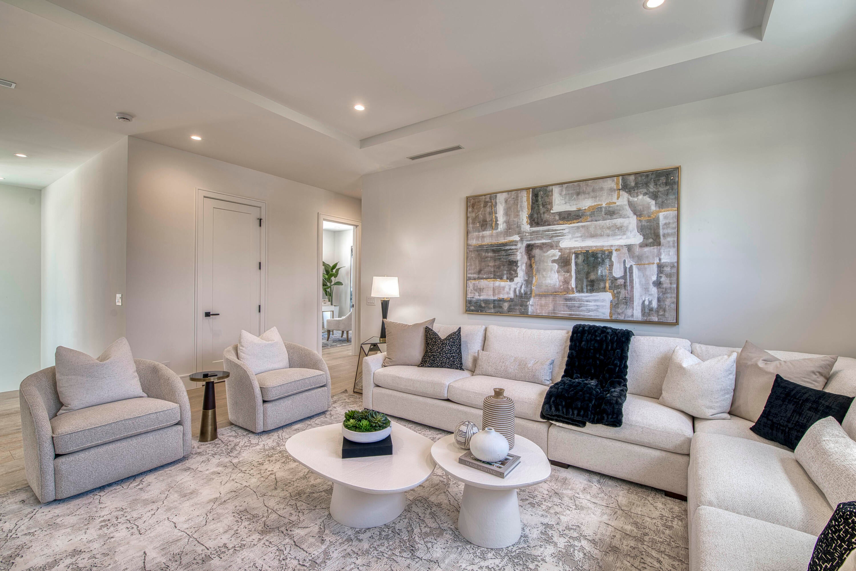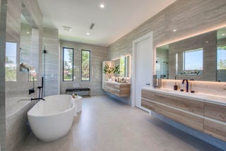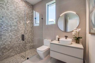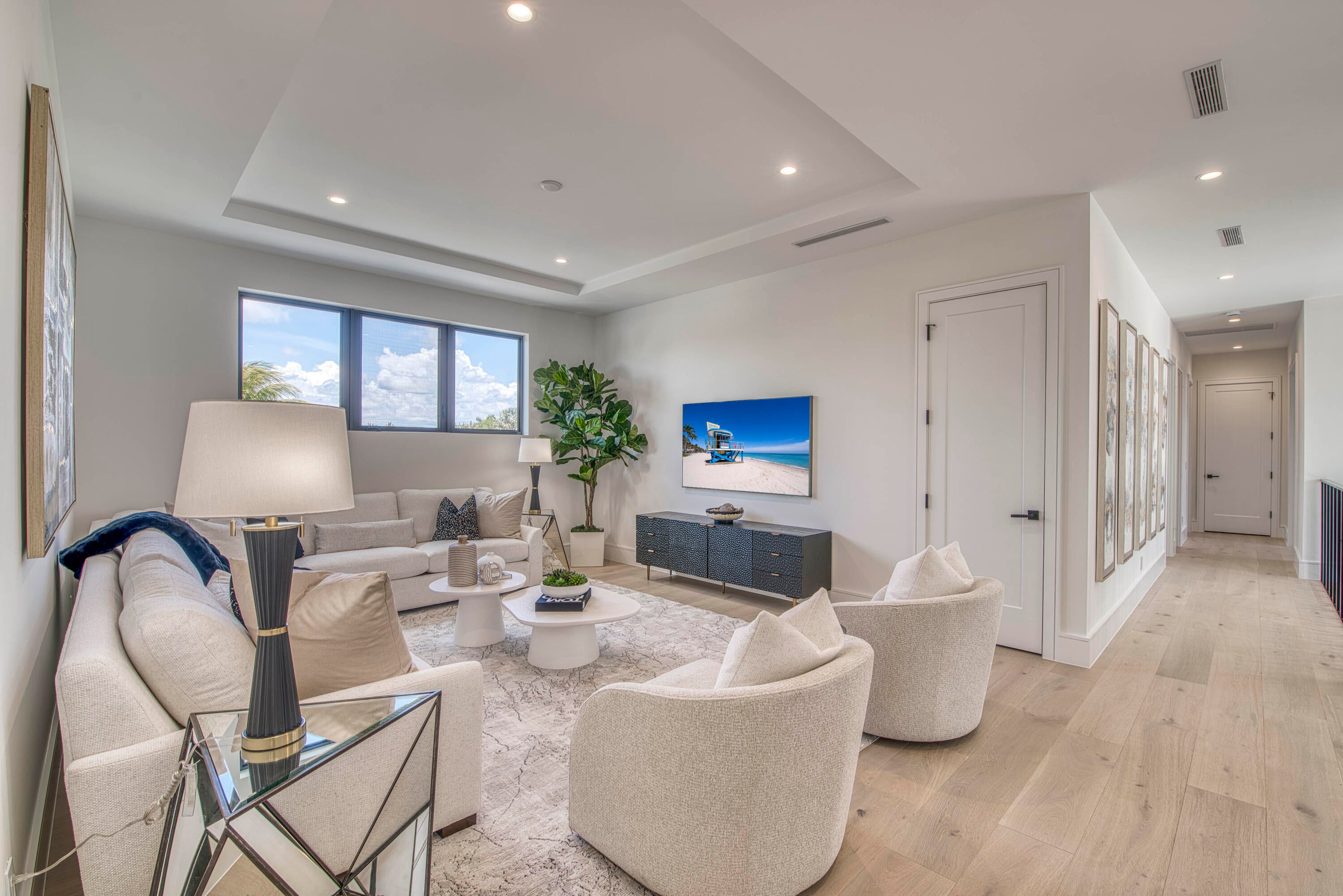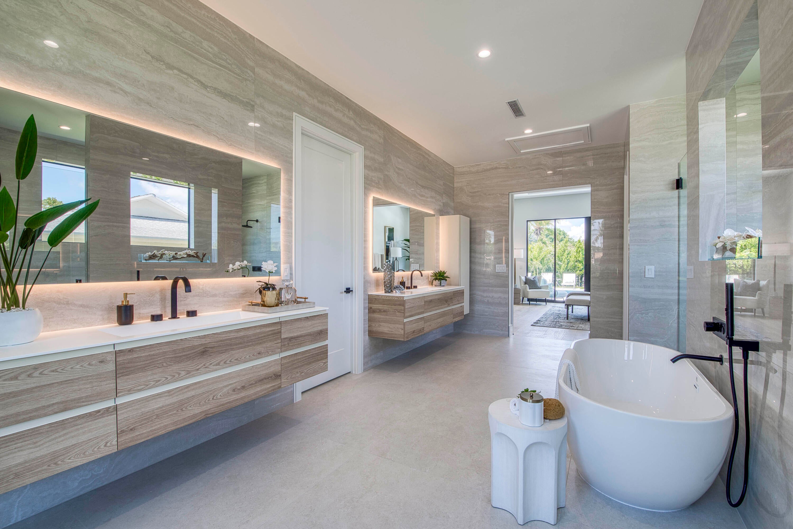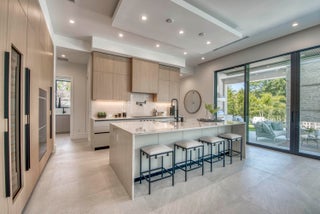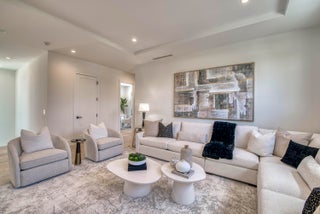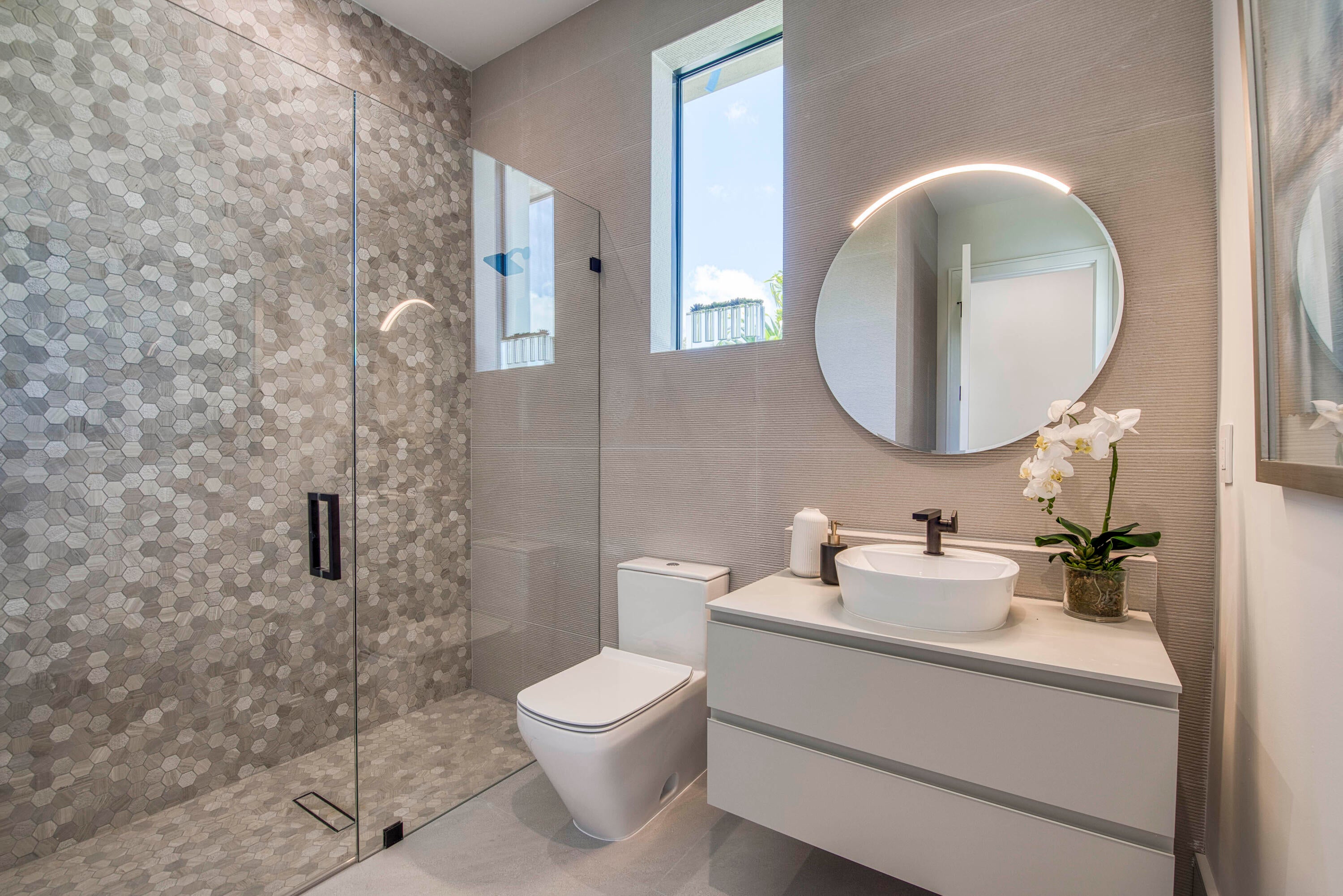 Balancing modern elegance with a true waterfront lifestyle, this brand-new construction by Dell Development is a standout offering in the prestigious boating community of Paradise Port, located in the heart of Palm Beach Gardens. This exceptional 4,920-square-foot estate boasts 95 feet of waterfrontage with a brand-new seawall and delivers refined luxury in a thoughtfully designed two-story layout. Featuring 5 bedrooms and 6 bathrooms, the home seamlessly blends sophisticated design with functional comfort. From the moment you enter, clean architectural lines and a light-filled open layout make a lasting impression. The main living area showcases neutral-toned large-format tile, a sleek stone-surround fireplace, and expansive 10-foot floor-to-ceiling sliders that blur the linebetween indoor and outdoor living. The open-concept kitchen and dining area is both elegant and highly functional, anchored by a wall of custom sleek cabinetry and outfitted with premium Sub-Zero and Wolf appliances. Alabaster-toned lower cabinets pair beautifully with coordinating quartz countertops, full-height backsplashes, and a striking waterfall island. The ground-floor primary suite serves as a serene private retreat, featuring warm European white oak flooring, dual walk-in closets, and a spa-style bathroom with a soaking tub, dual showers, and dramatic floor-to-ceiling large-format porcelain tile. Upstairs, a spacious loft and office provide flexible living options, while four additional guest suites each offer en-suite baths and walk-in closets, ensuring privacy and comfort for family and guests. Outdoor living is equally impressive, with a full summer kitchen, a sparkling pool and spa with elegant deck jets, and a see-through fireplace with a built-in media wall. The open-air patio is framed by lush tropical landscaping and includes multiple zones for entertaining, sunbathing deck, lounge seating, and al fresco dining area. Just off the patio, a private stairway leads to the dock on a tranquil interior canal with direct access to the Intracoastal. Completing this exceptional backyard paradise is an outdoor tackle room for convenient boat and gear storage.