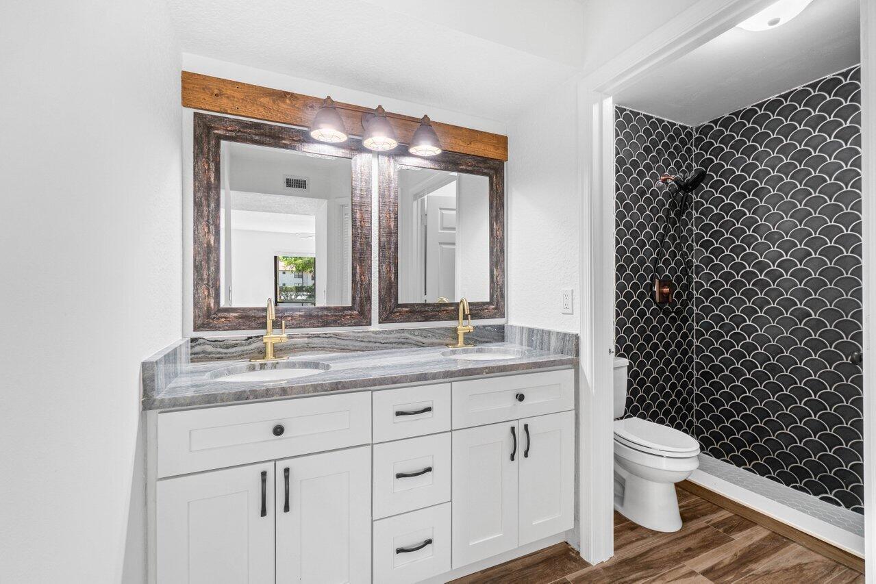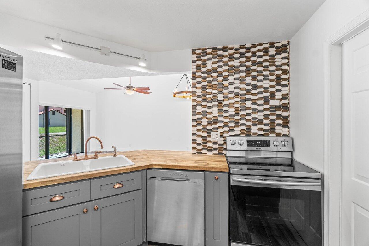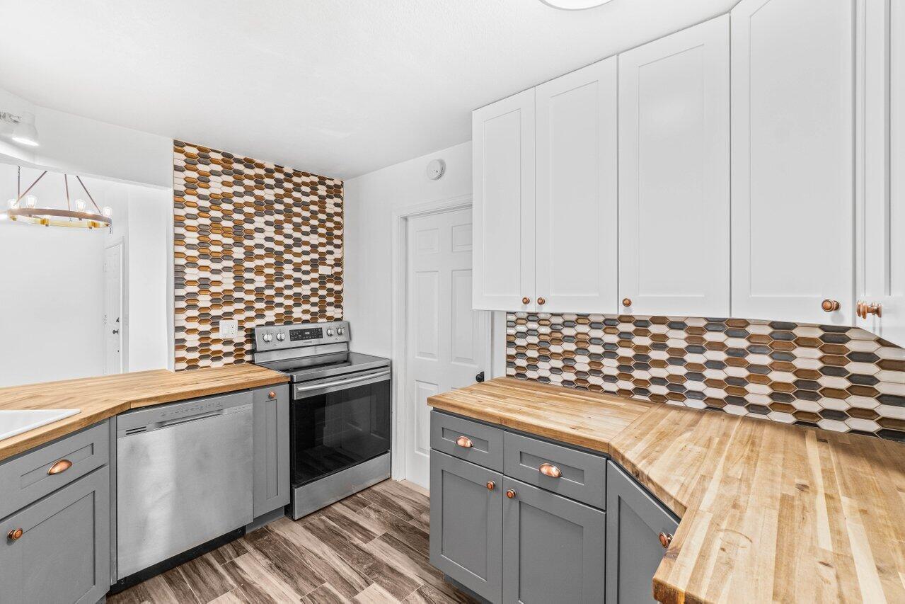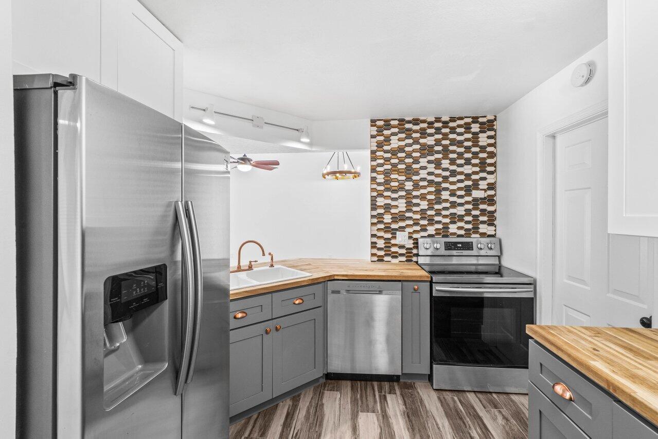 PRICE REDUCTION Beautifully updated 2 bed, 2 bath home with a 1-car garage. Features an upgraded kitchen with sleek gray cabinets, stainless steel appliances, and luxury flooring throughout. Both bathrooms offer new vanities, tile, and modern fixtures. Enjoy the screened patio for relaxing outdoors. AC replaced in 2022. Move-in ready with stylish finishes!