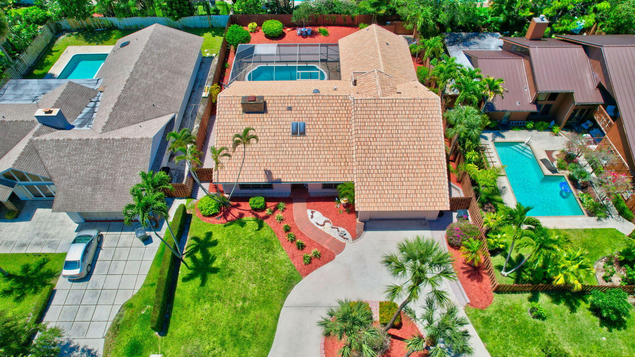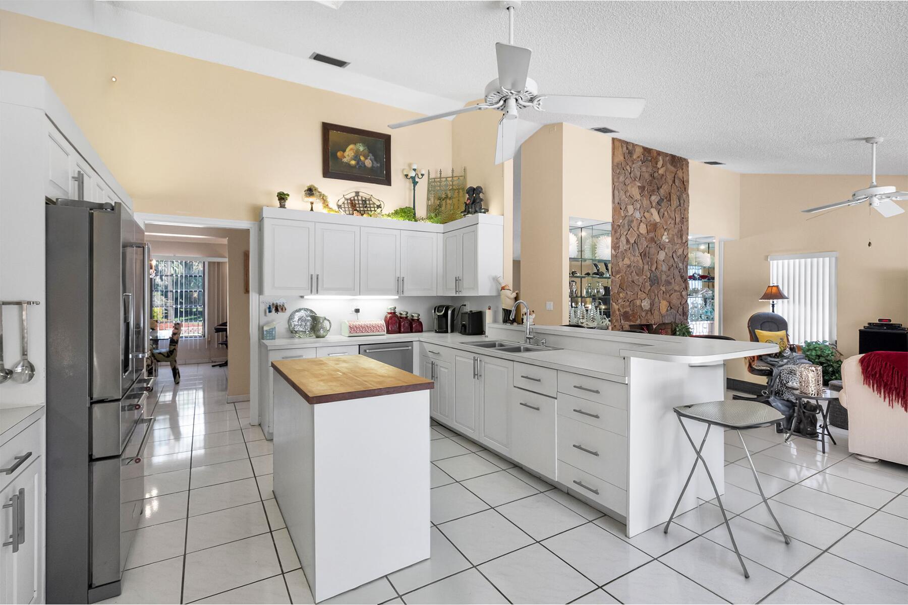 Well maintained 4/3 pool home on a quiet street in the desirable East Boca neighborhood of Palm Beach Farms. Lg patio/pool with SE exposure, spacious floor plan, vaulted ceilings, skylights, beautiful woodburning two sided stone fireplace, Kitchen updated 6 years ago has newer appliances & a breakfast bar, All large bedrooms *4th BR is Loft and has a 14.6 x 9.7 walk-in closet & private balcony, 21' x 6' laundry room! Lots of storage, Large 2 car garage, long circular drive, 2 AC's 2023 (10yr warranty), central vac, side & back yards have pavers, Wonderful location: Bike to the beach, close to great restaurants, Mizner Park, shopping, blocks to Pine Breeze & El Rio Parks, I95 entrance, All ''A'' Rated schools including the new Addison Mizner, Pride of Ownership Shows! Nice curb appeal !