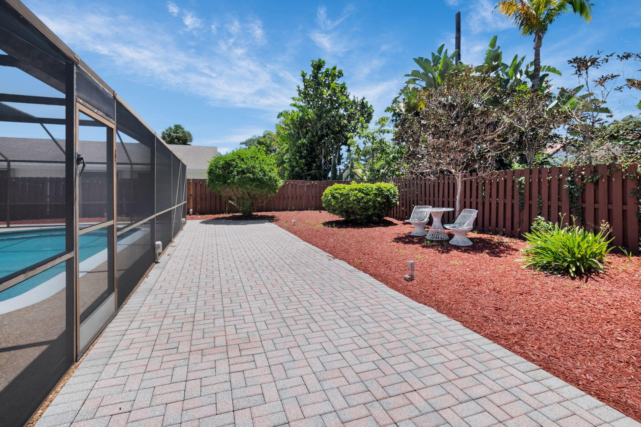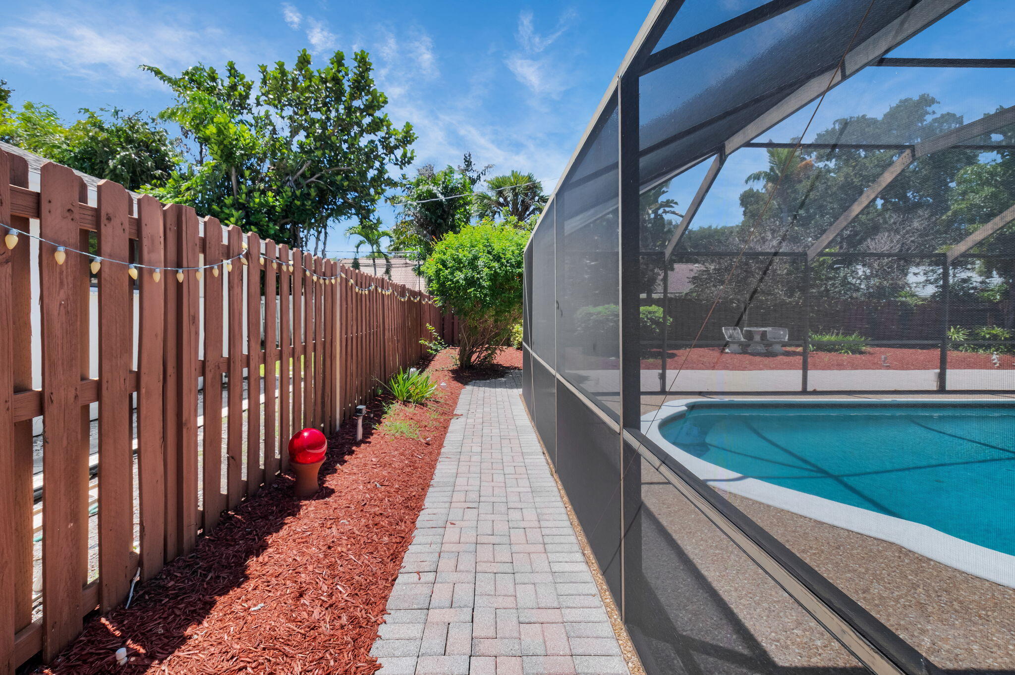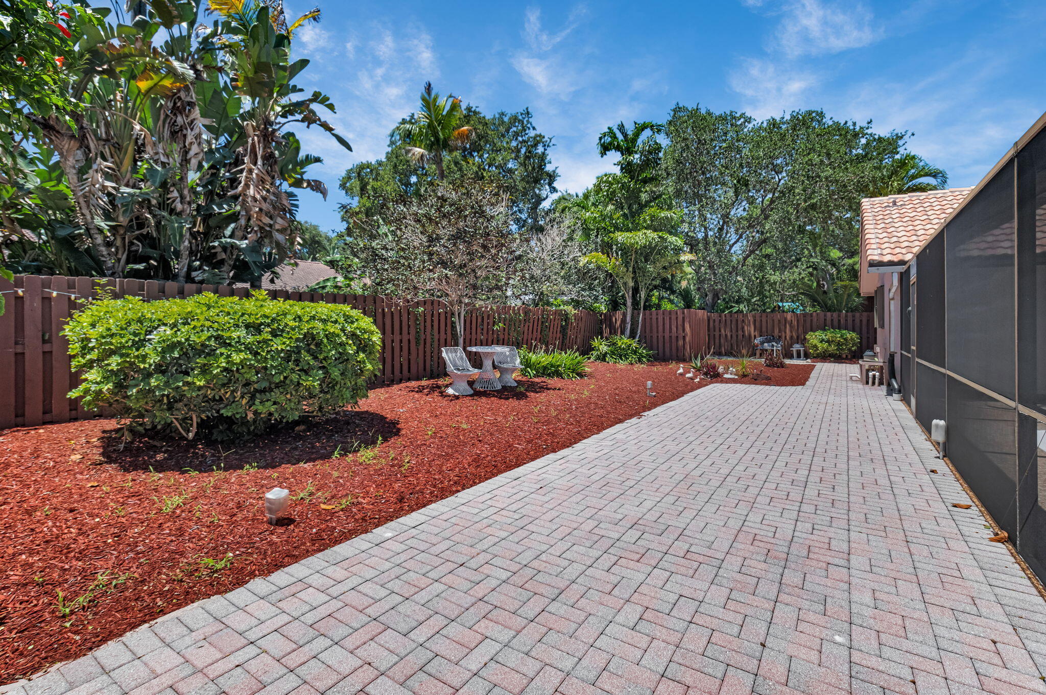 Covered Patio, Fence, Zoned Sprinkler, Screened Patio, Open Balcony, Auto Sprinkler, Shutters, Cabana